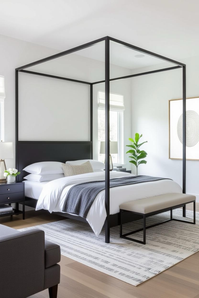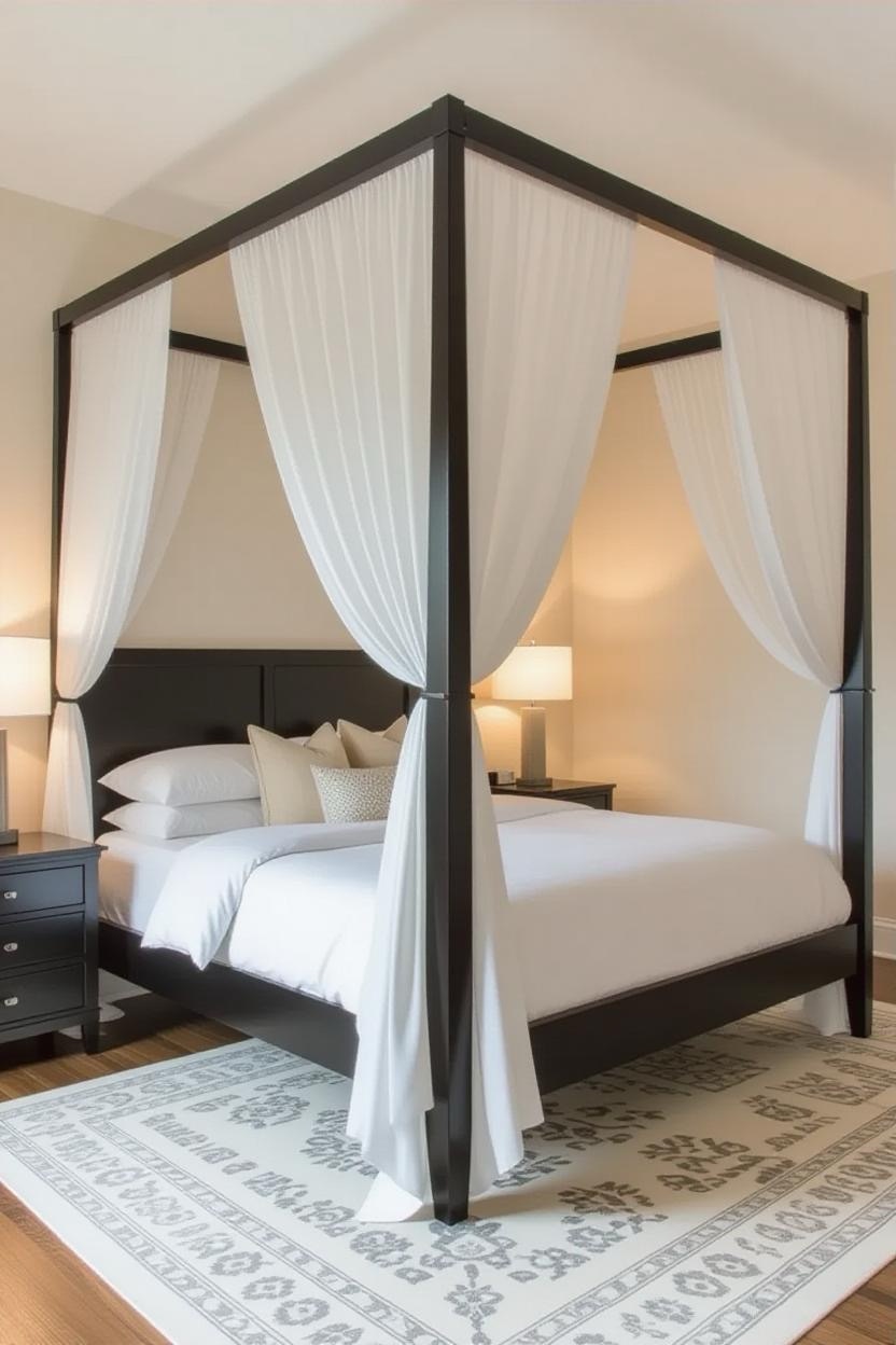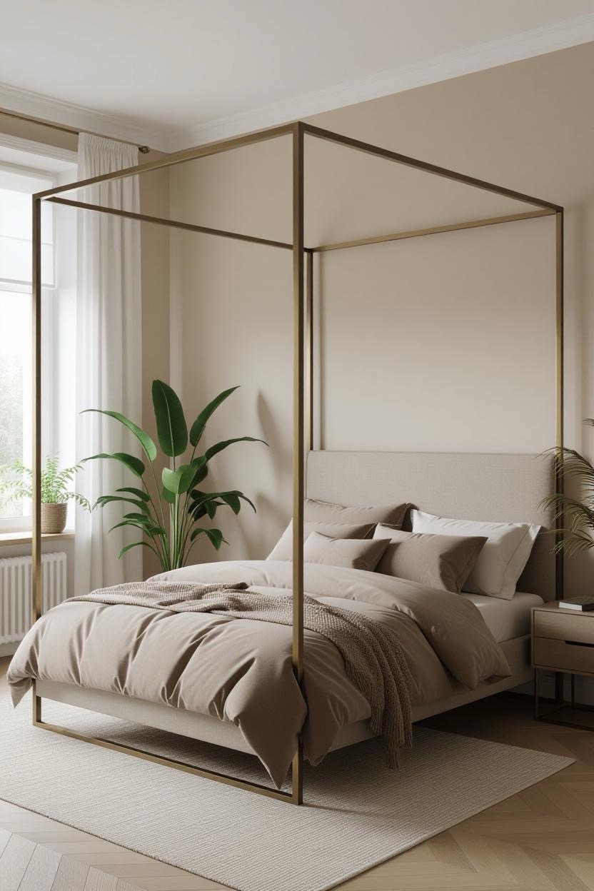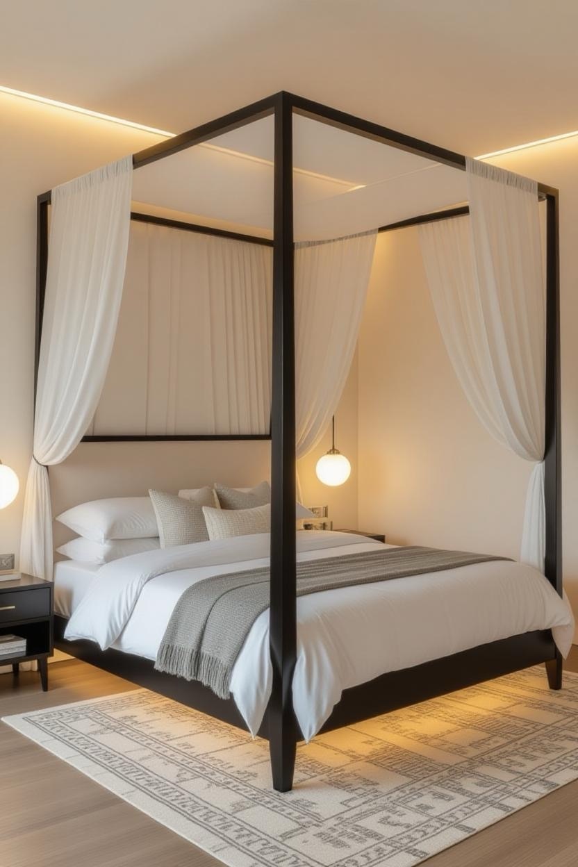 Reimagine the classic canopy bed with sleek, slim frames in black or metallic finishes. This creates a striking focal point while maintaining a modern aesthetic.