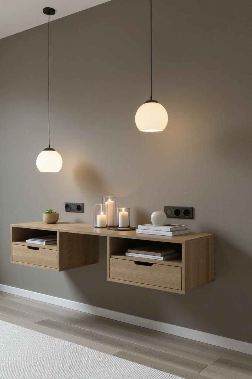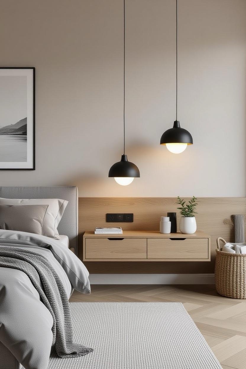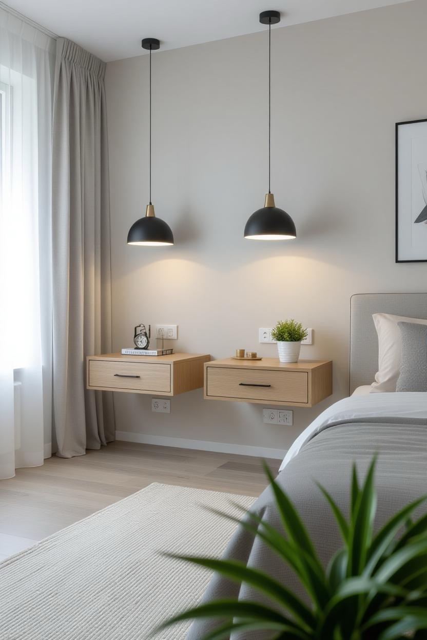 Maximize floor space and achieve a streamlined look with wall-mounted nightstands. Pair with pendant lights for a minimalist yet functional setup.