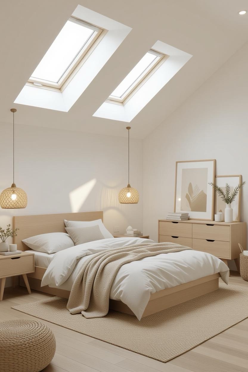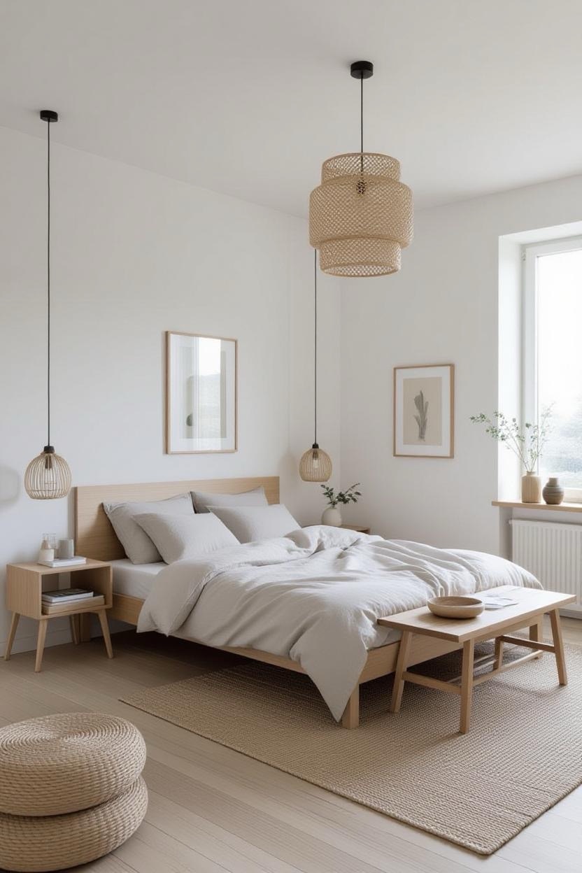 Opt for light woods, white walls, and natural fabrics. Scandinavian-inspired bedrooms feel airy, bright, and effortlessly modern.