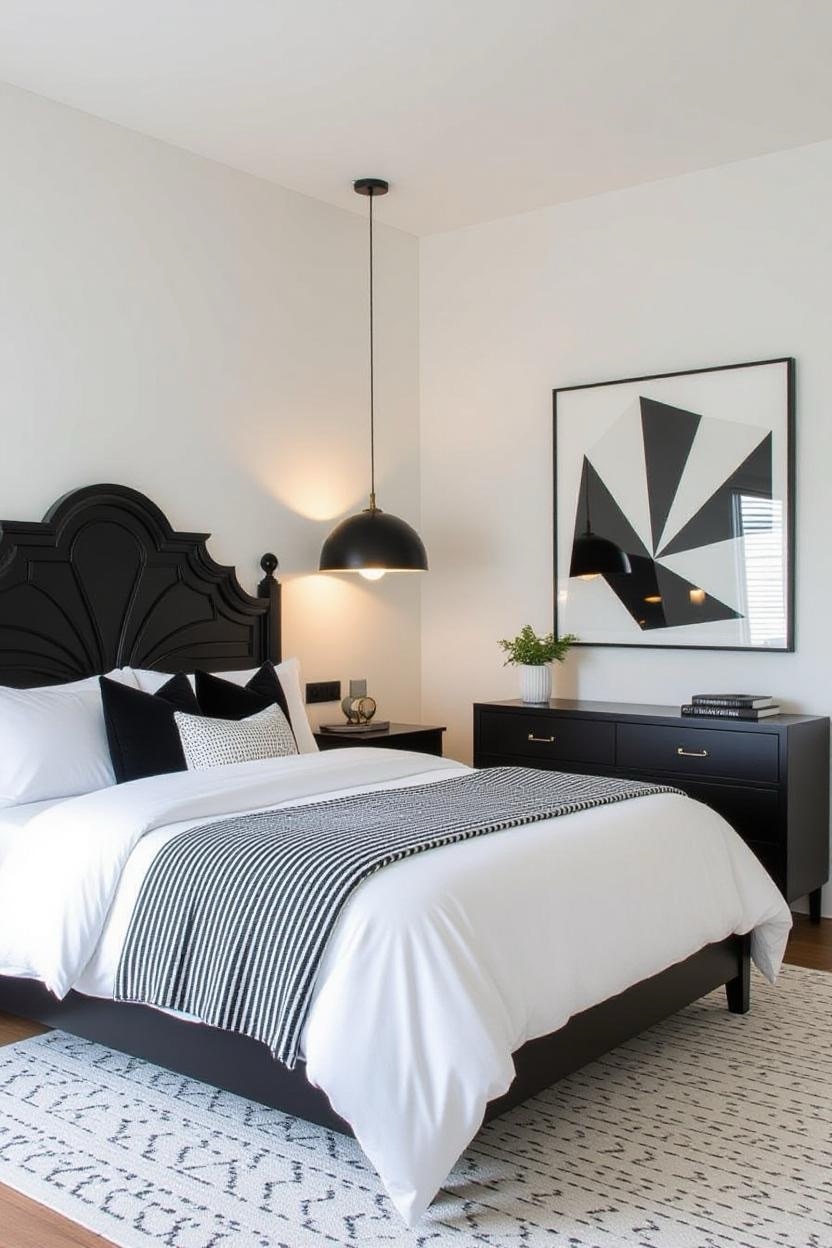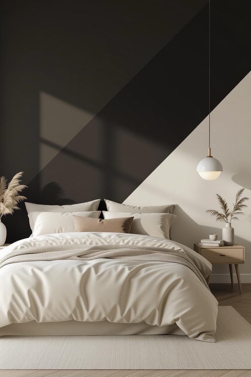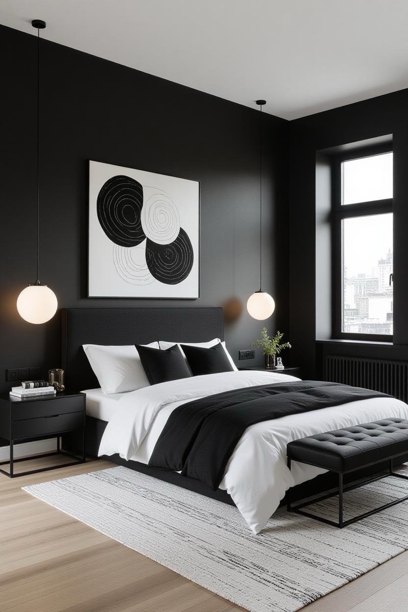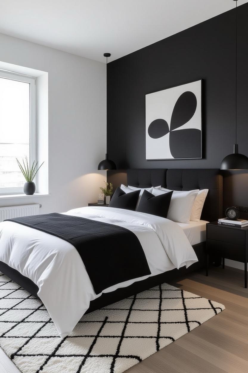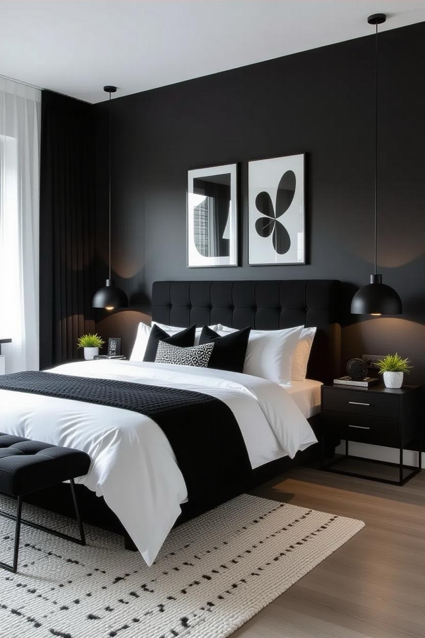 A black-and-white color scheme is timeless and sleek. Contrast white walls with black accents like headboards, lamps, or artwork for a bold and balanced look.