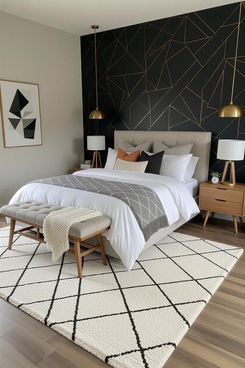 Use geometric shapes in rugs, bedding, or wallpaper for a contemporary vibe. Keep patterns subtle in neutral colors for a chic, understated effect.