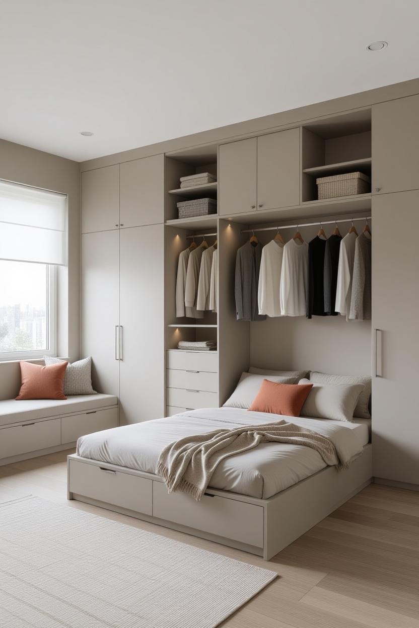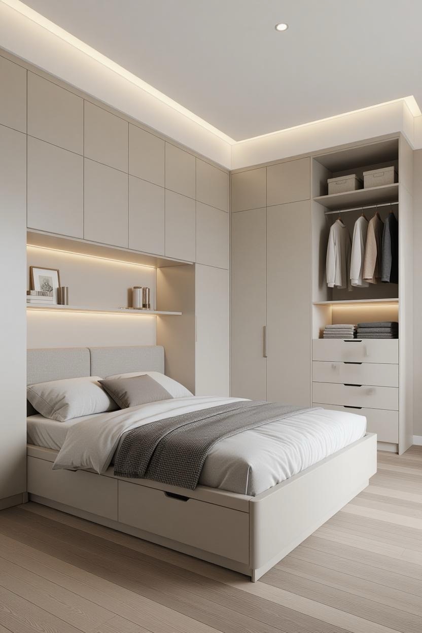 Built-in wardrobes, under-bed drawers, and hidden compartments keep your room clutter-free, maintaining the sleek aesthetic modern design demands.