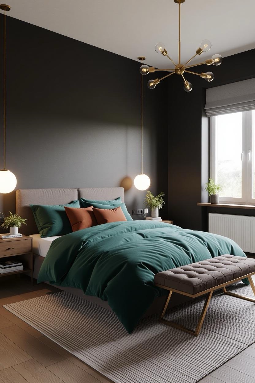 For a dramatic effect, opt for charcoal, deep green, or navy walls. Balance the darkness with warm lighting and plush textures to create a cozy retreat.