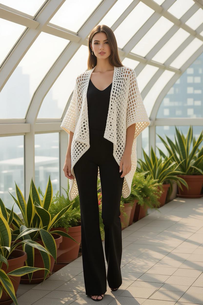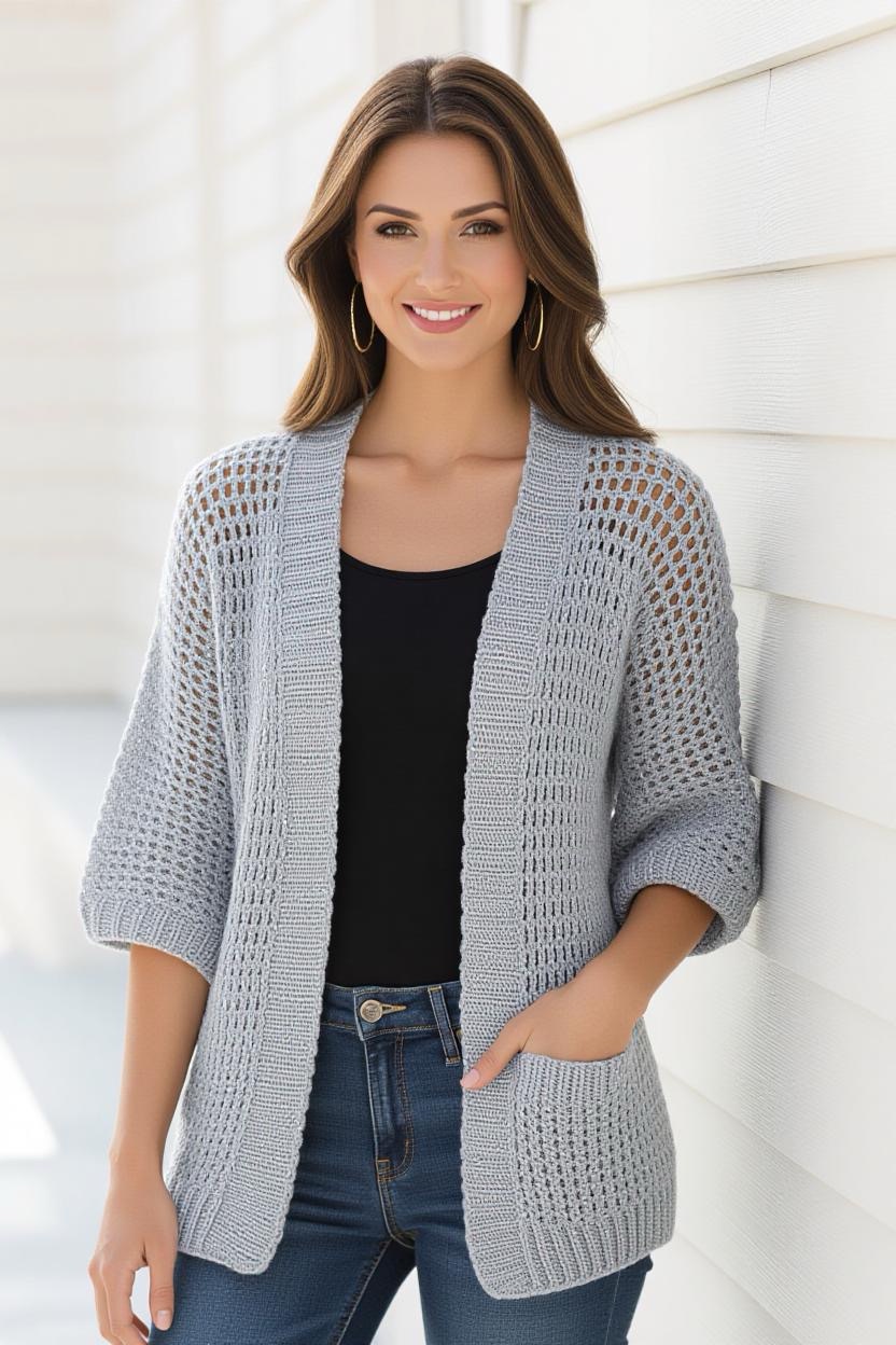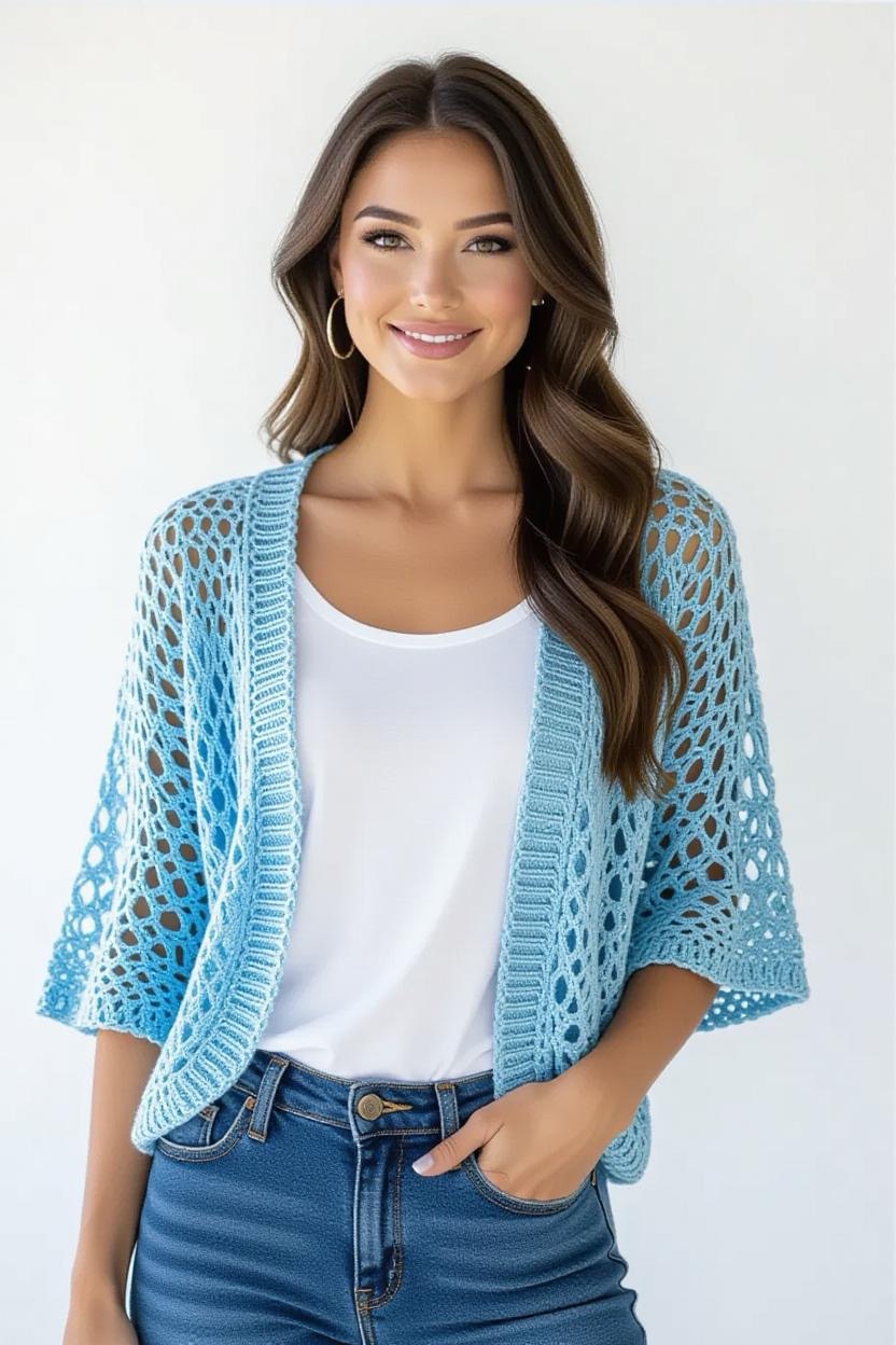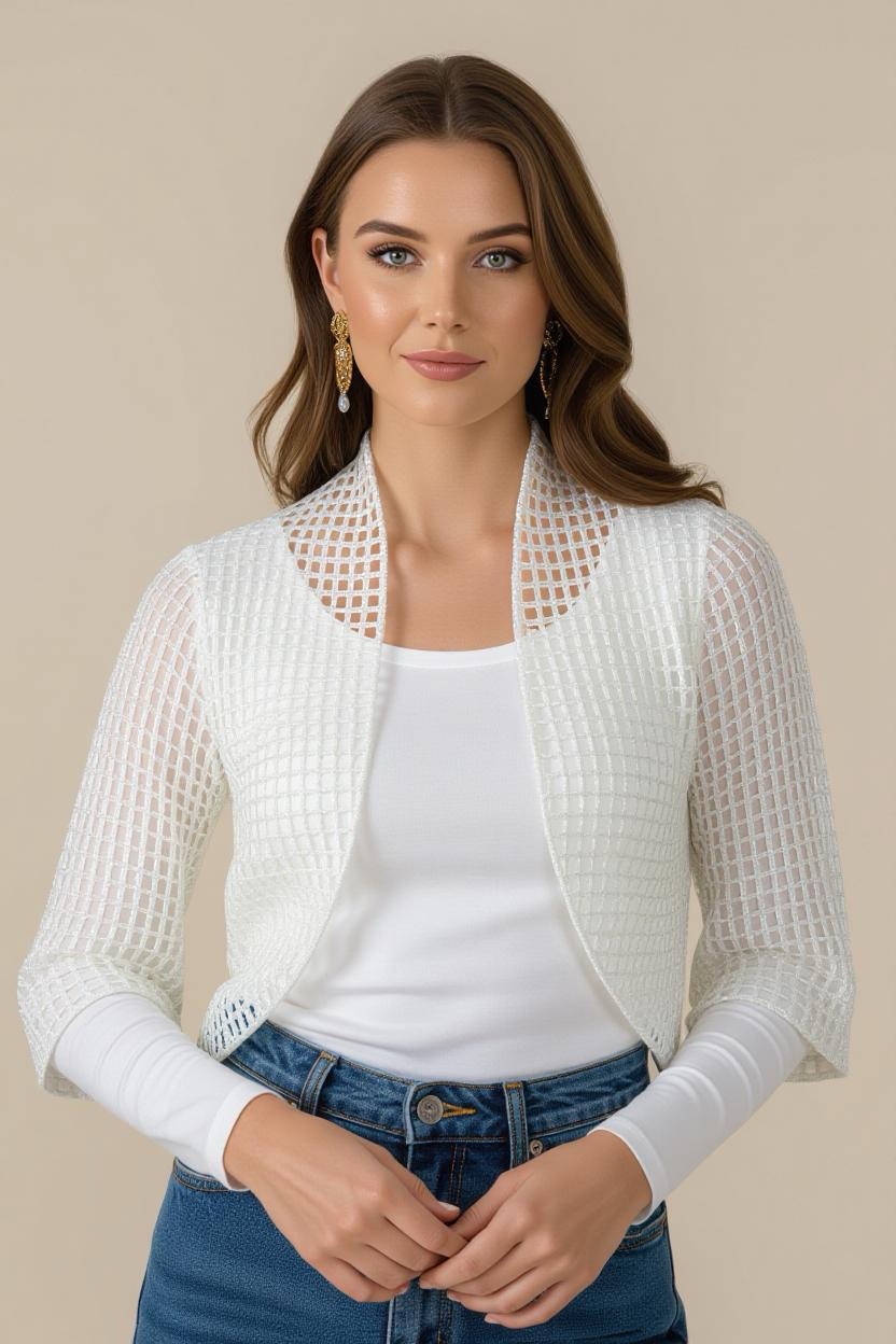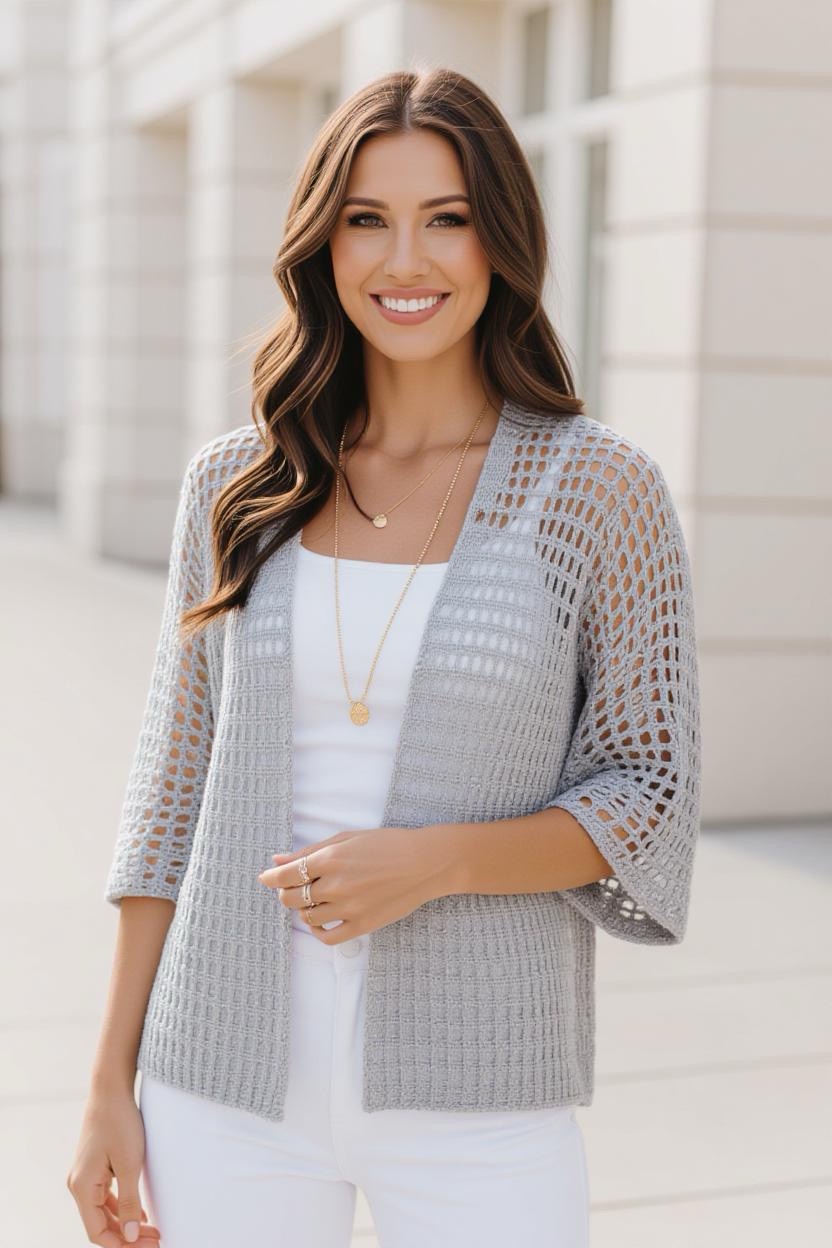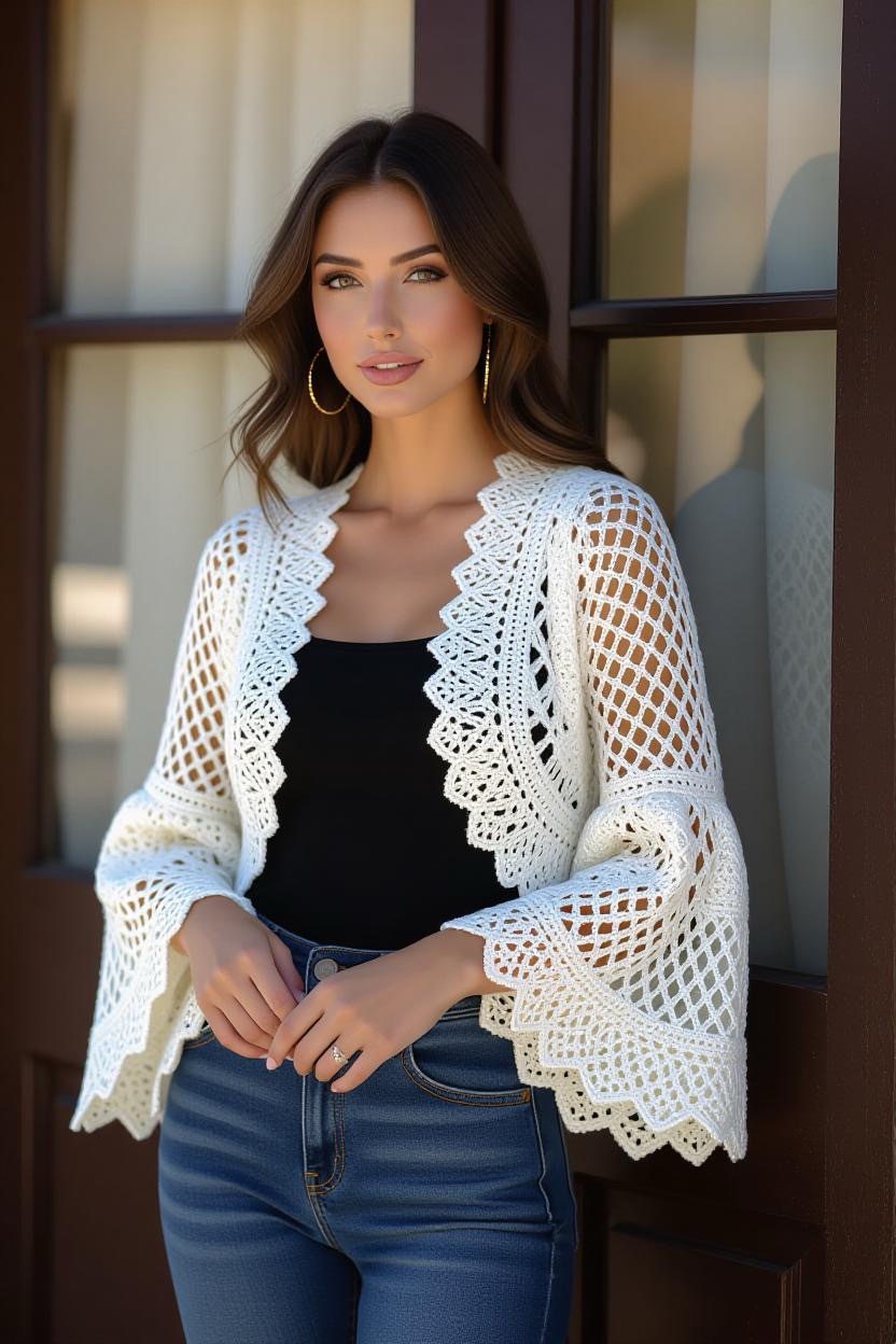 This bolero has a subtle cape-like drape that adds drama to your outfit. It’s especially great for evening wear, giving your look a polished finish without feeling too heavy. Metallic yarns can enhance its elegant appeal.