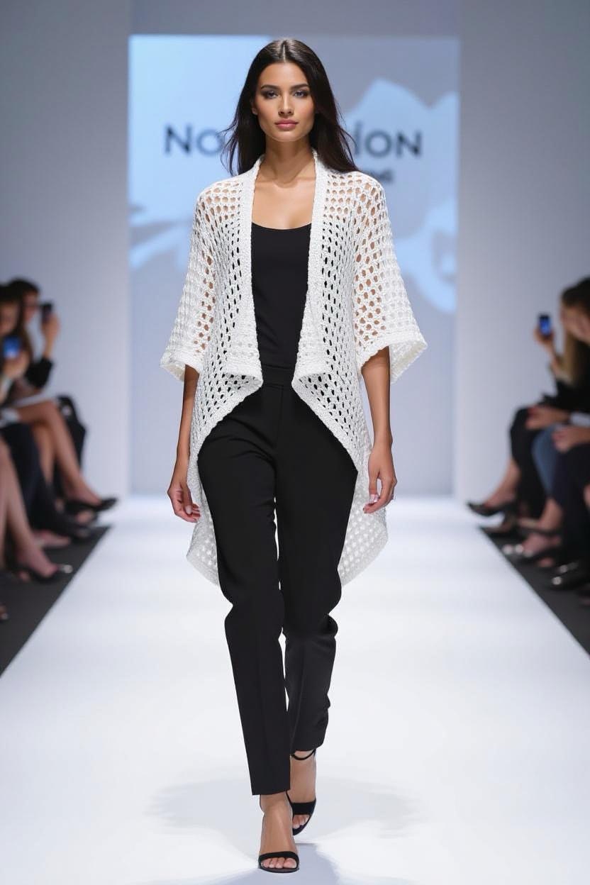 This modern shrug drapes asymmetrically for a unique, high-fashion silhouette. Pair it with slim-fit pants or a pencil skirt for an effortlessly stylish ensemble.