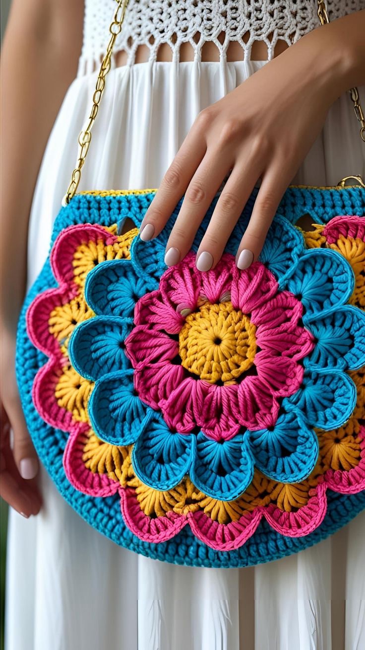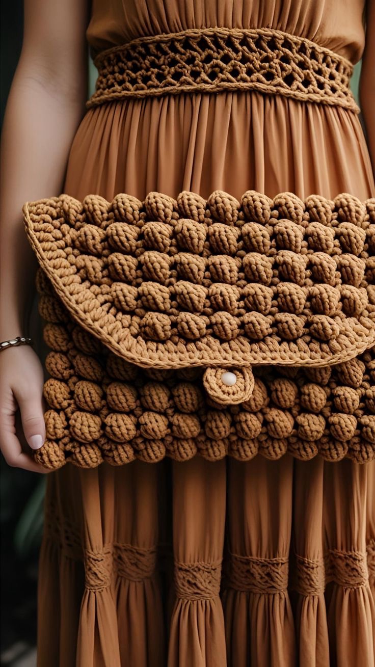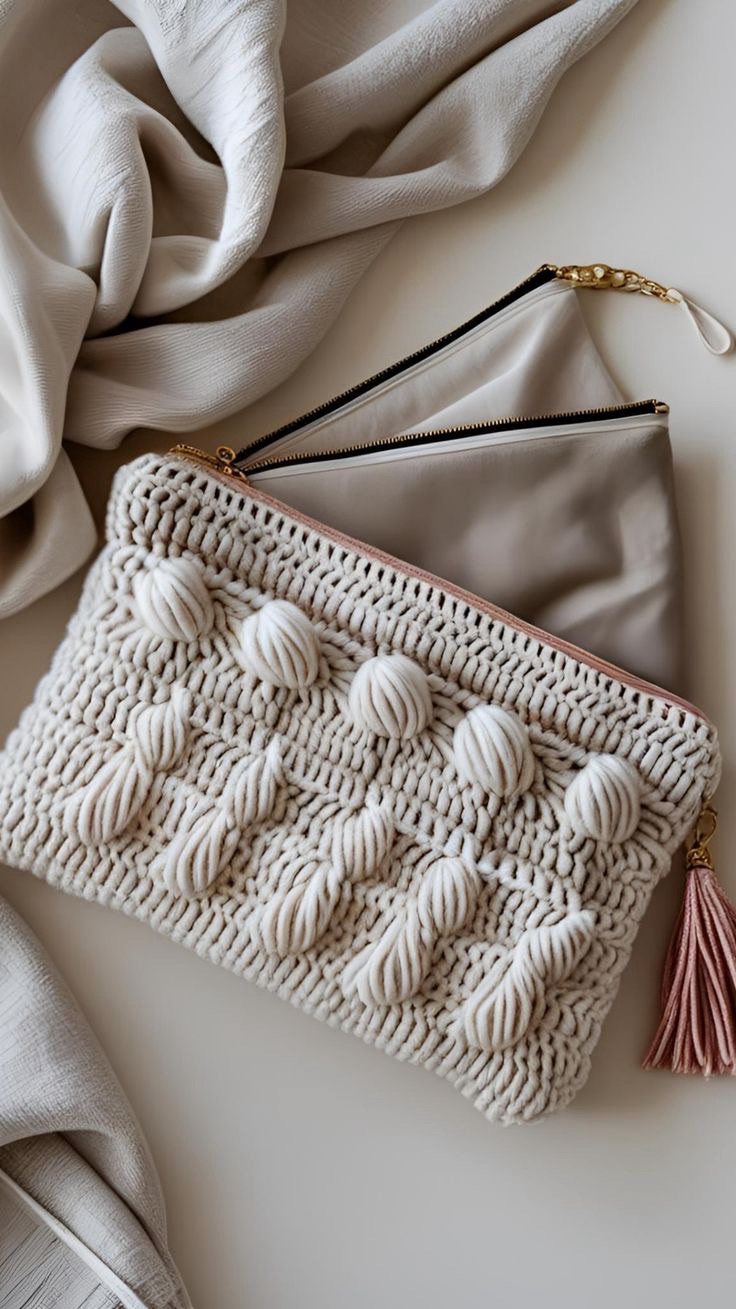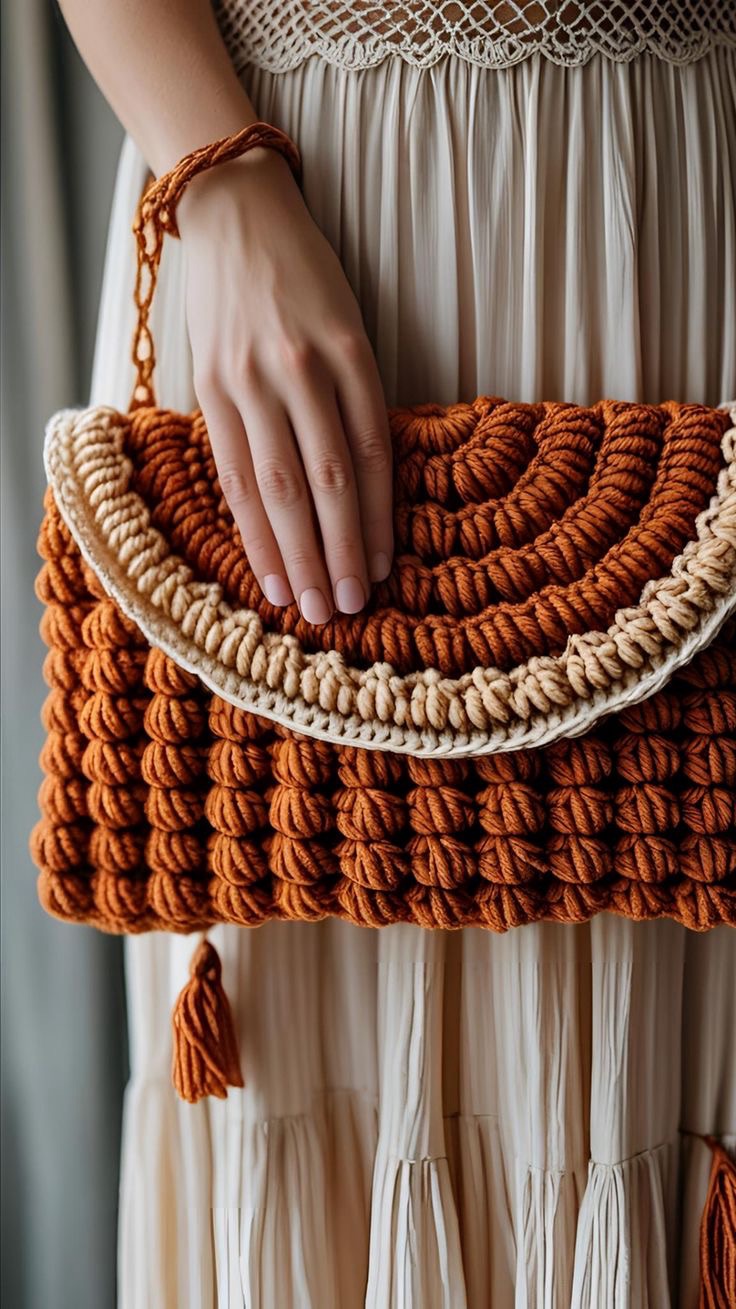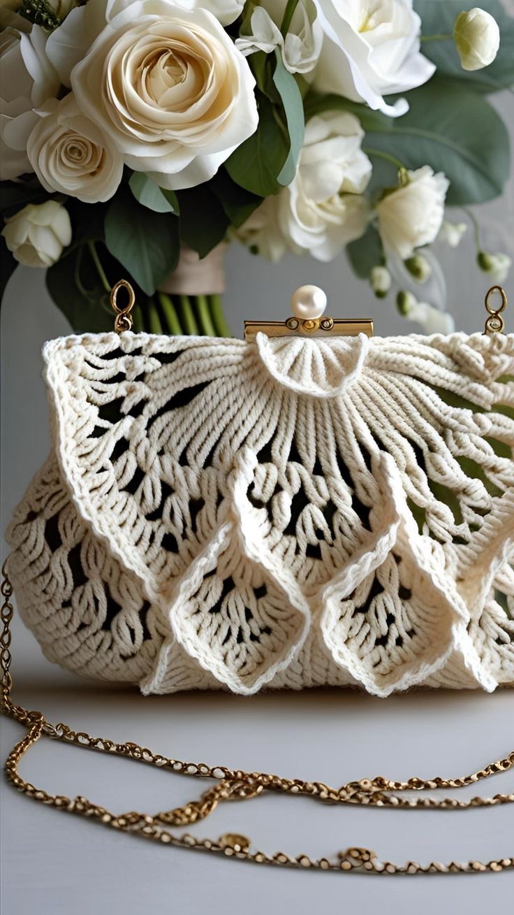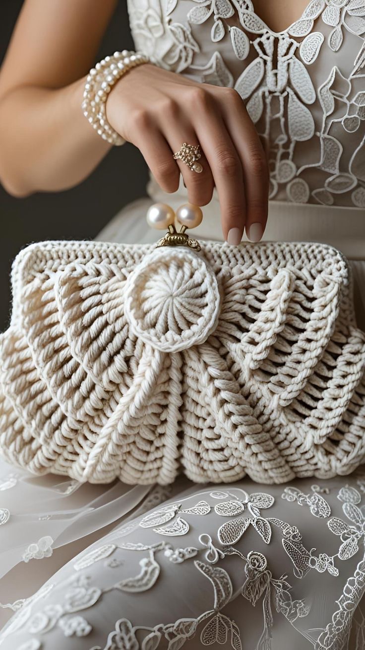 Add function to style with a crochet clutch that includes a detachable chain strap. Combine luxury yarns like velvet or bamboo-cotton for extra elegance. The strap makes it ideal for dancing at receptions or keeping hands free at social events.