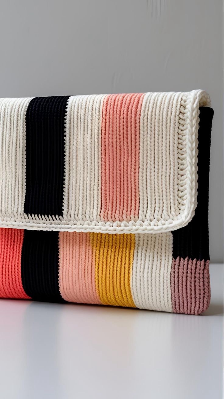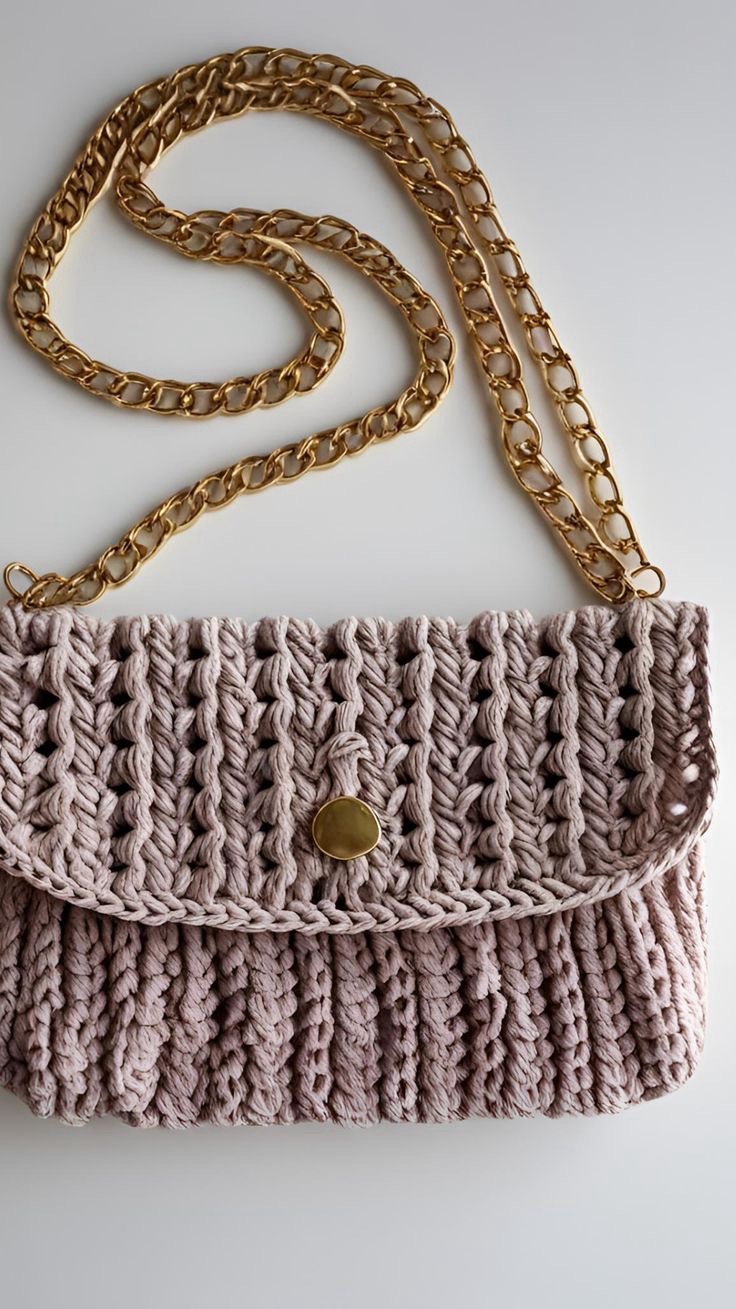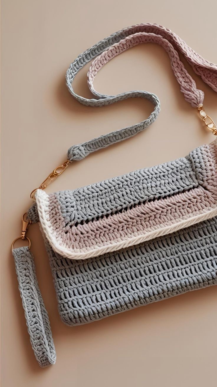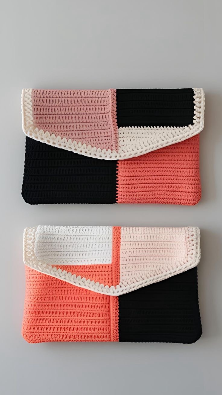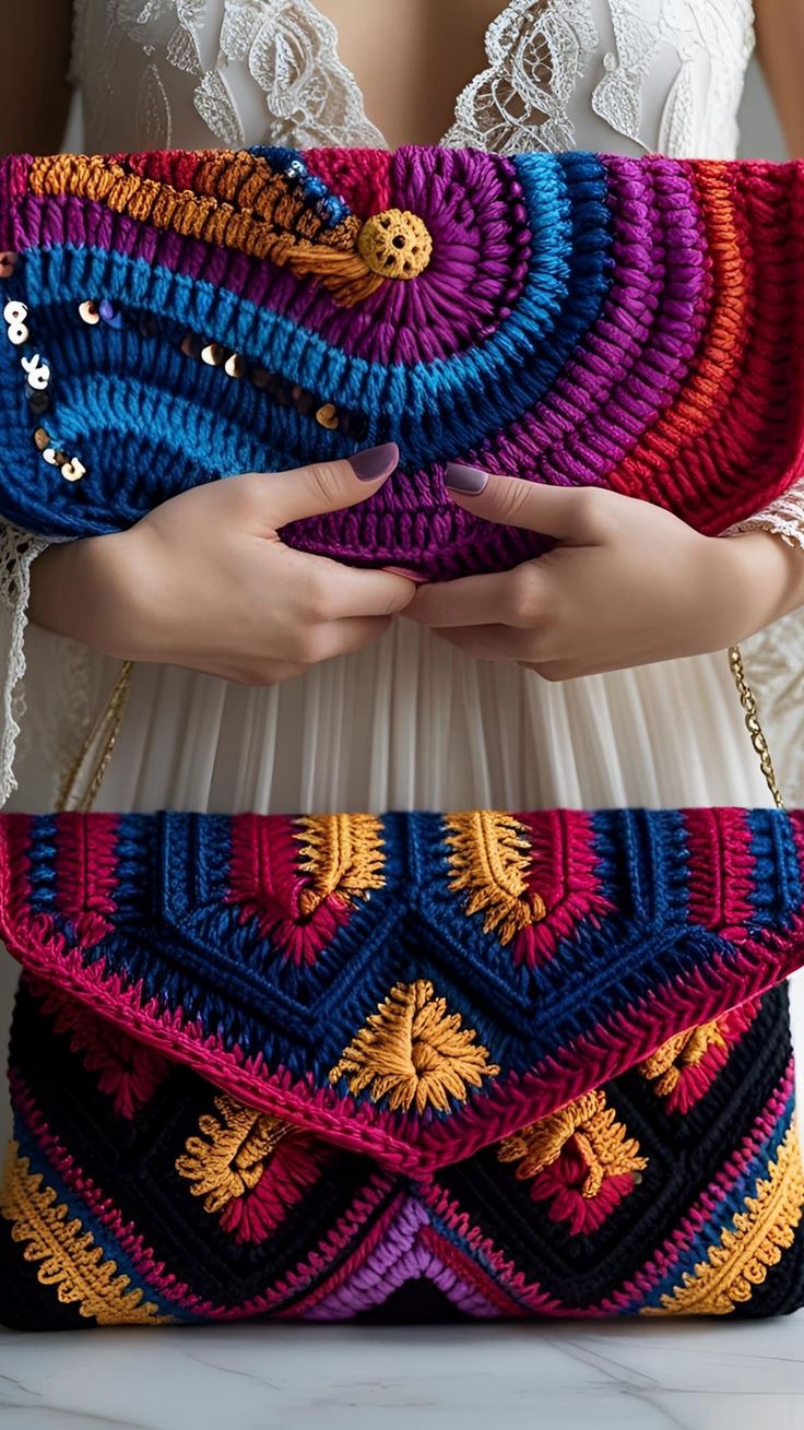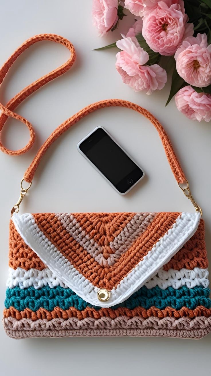 For evening glam, a sleek envelope-style clutch made with metallic thread is a go-to. Choose silver, gold, or rose gold yarns for that luxe shimmer. The envelope flap gives a modern edge, while the sparkle adds an upscale vibe ideal for galas or cocktail parties.