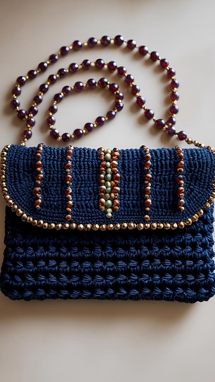 Add sparkle with a beaded crochet clutch that combines functionality with glam. Seed beads can be woven into rows or scattered for a subtle shine. This purse style is stunning in deep hues like navy, burgundy, or emerald, ideal for formal nighttime events.