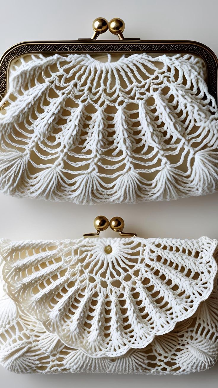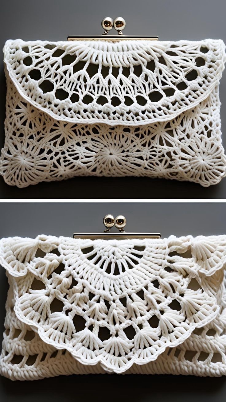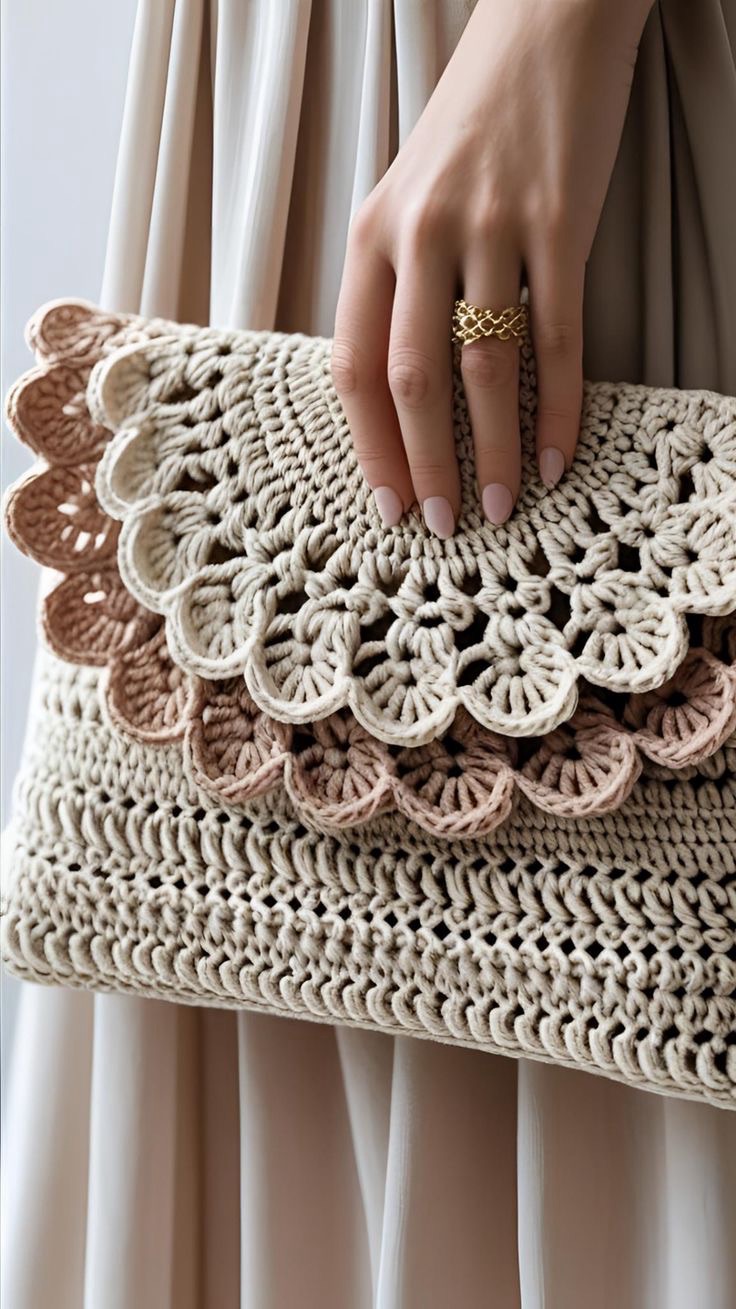 A crochet lace clutch is a dream for brides or bridesmaids. Delicate patterns like pineapple lace or fan motifs shine in soft white or cream yarn. This vintage-inspired design is a keepsake-worthy accessory for special days.