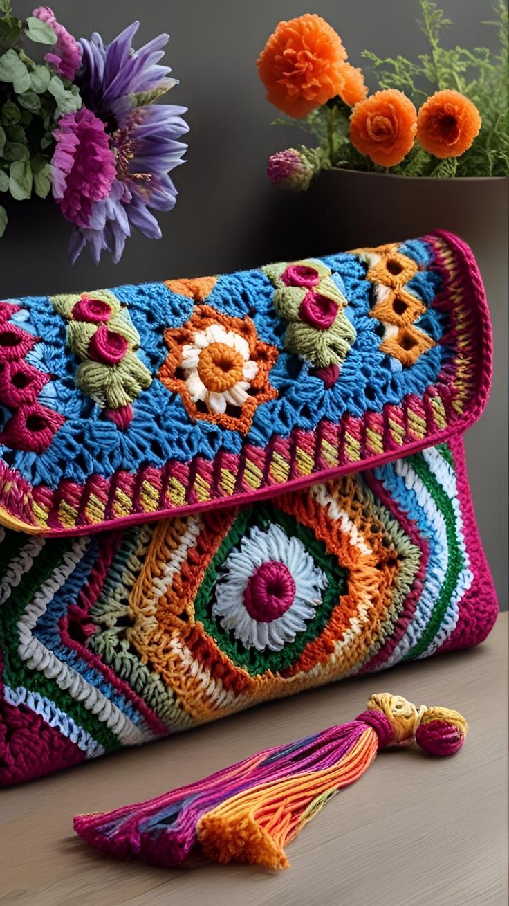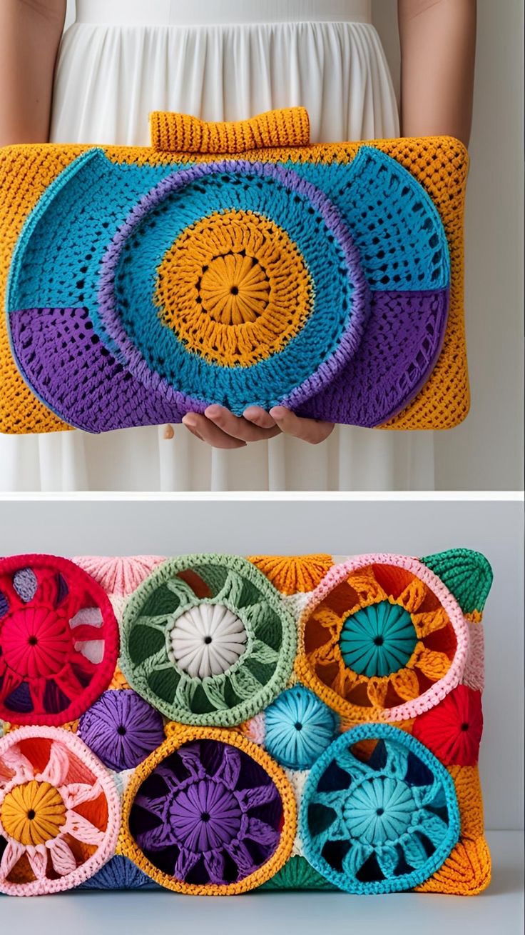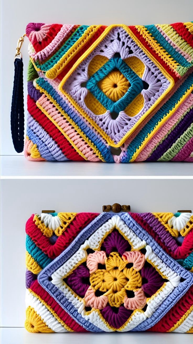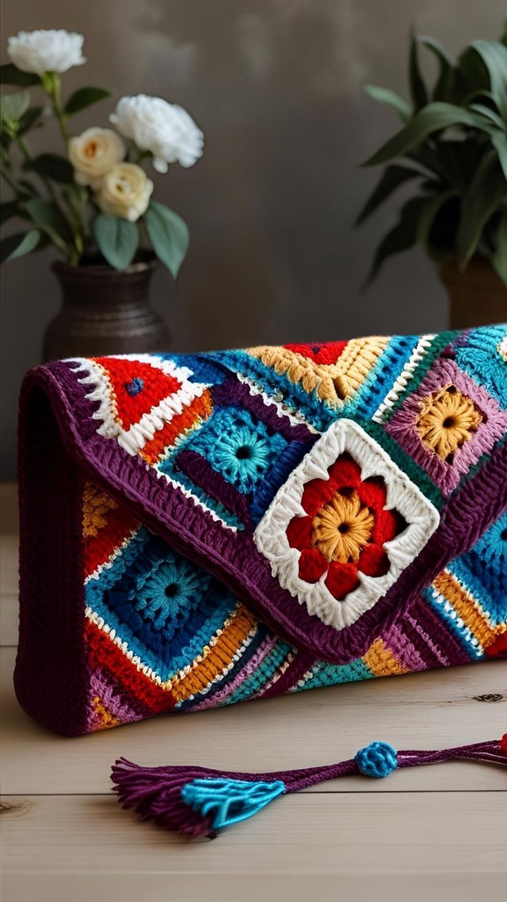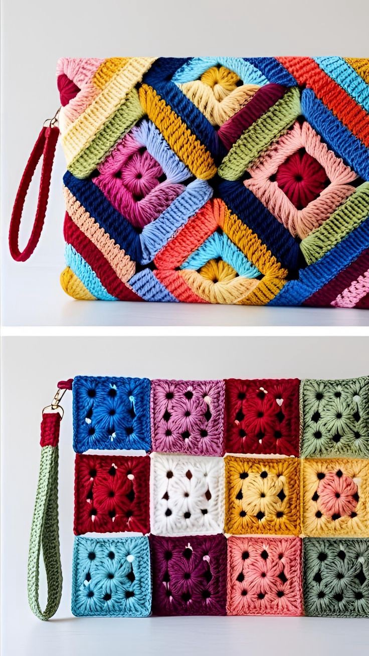 Classic granny squares never go out of style. Combine vibrant or soft tones, and stitch them together for a vintage-chic clutch. Add a wrist strap or a fold-over flap for extra usability.