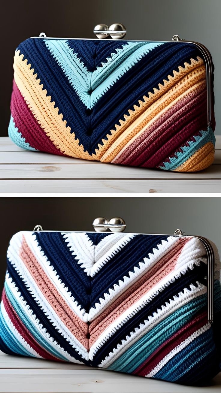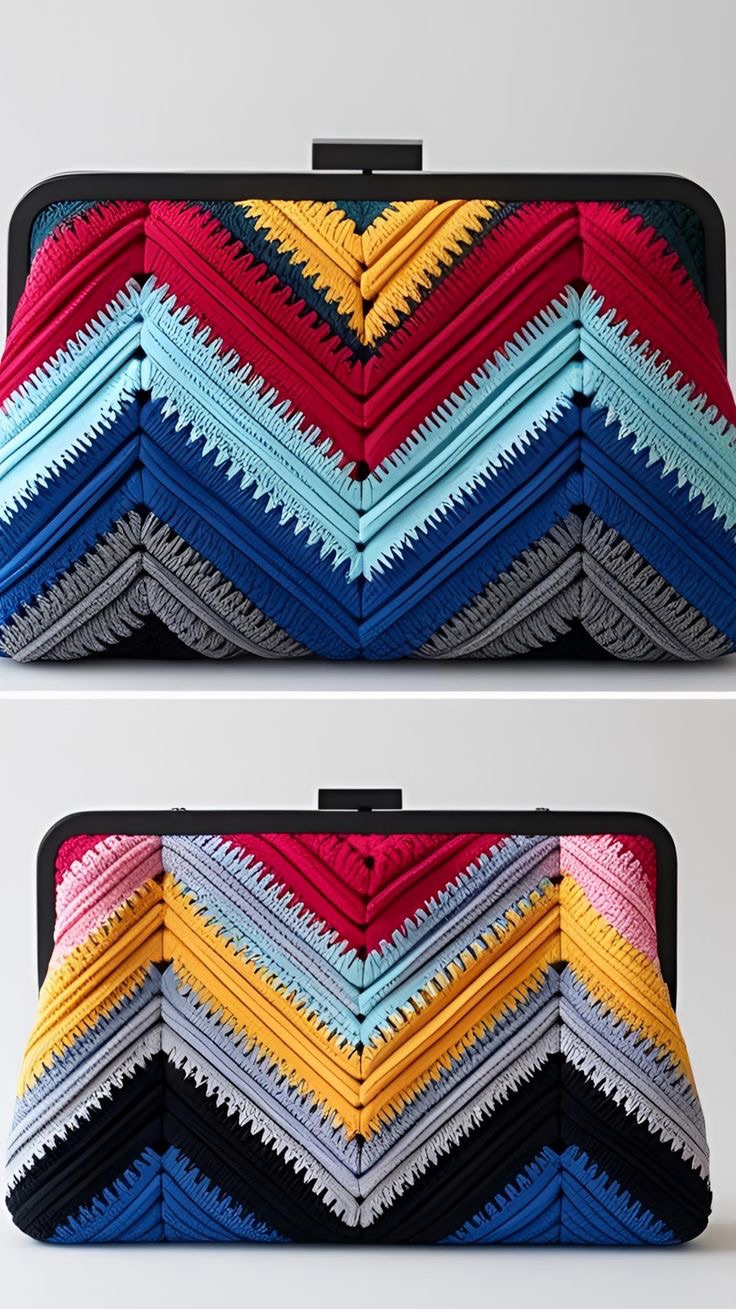 Chevron stitches give a zigzag visual pop to your clutch. Choose elegant two-tone yarns or a gradient palette for a dynamic look. Sleek, sharp, and modern perfect for dinner dates or semi-formal parties.
