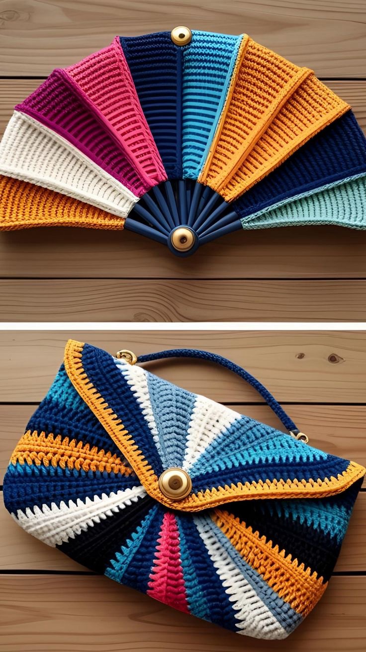 Inspired by the shape of a folded fan, this unique clutch pattern is compact yet eye-catching. Perfect for bold yarn colors and ideal for cultural or artsy venues.