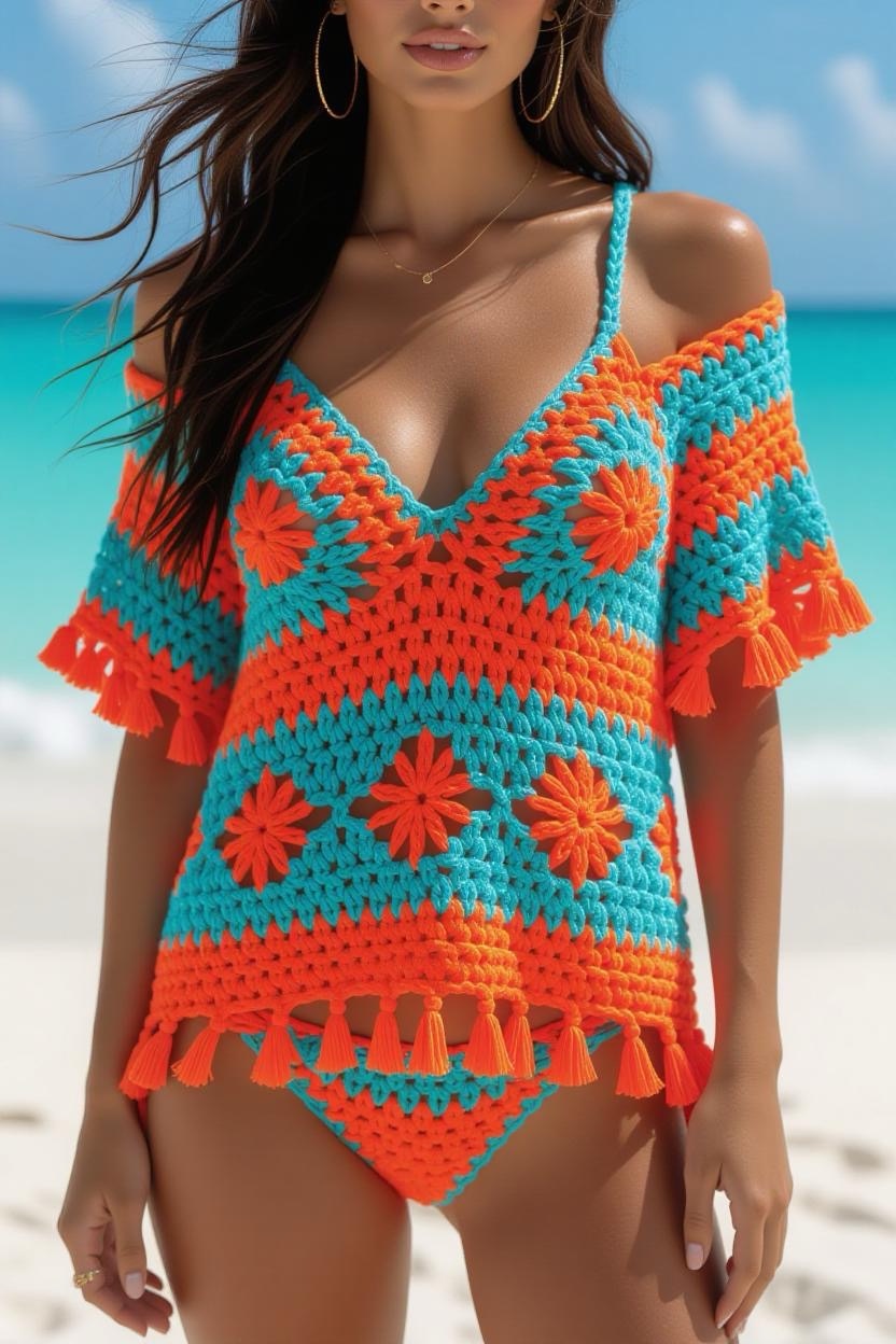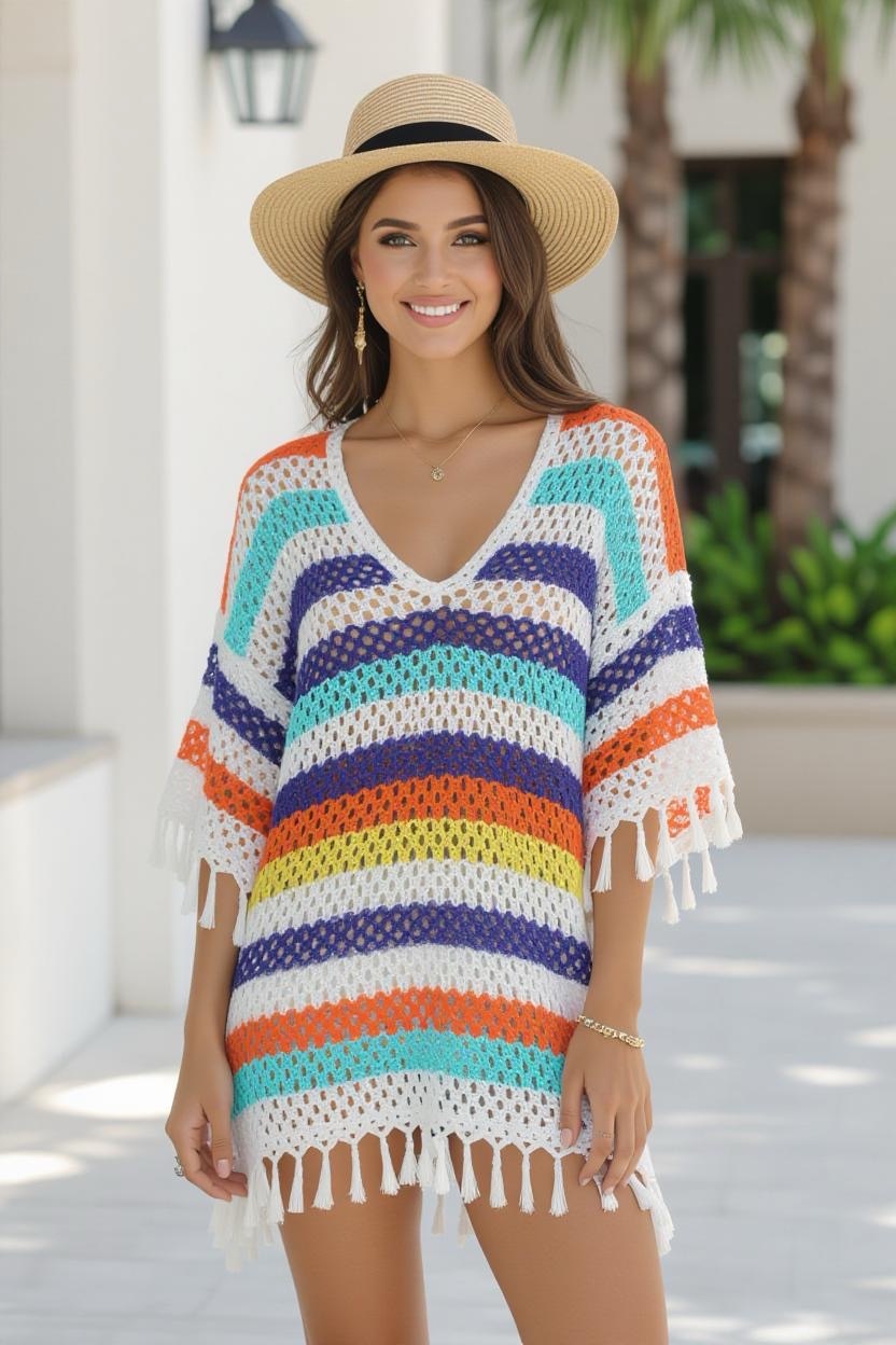 Add a playful twist with tassel details. Whether on the hemline, sleeves, or neckline, tassels give your cover-up extra personality and flair.