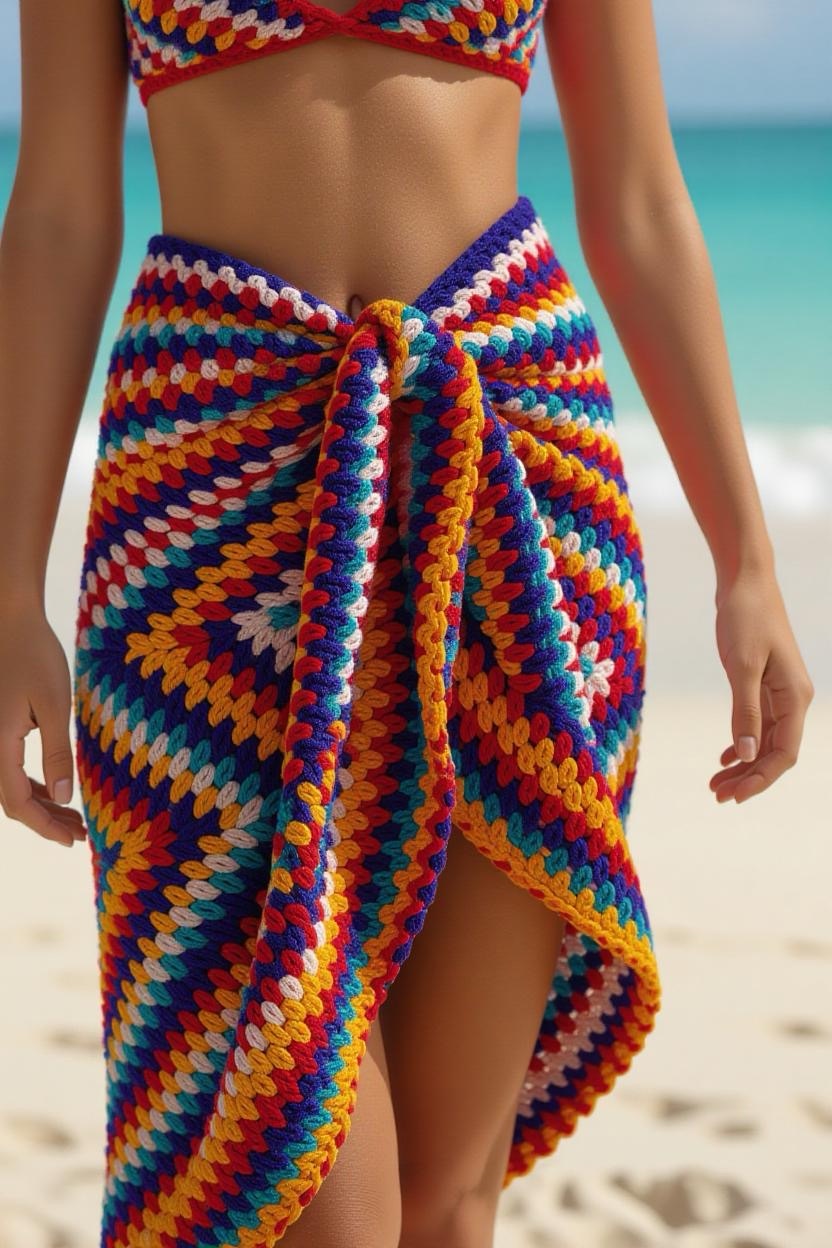 Sometimes simple is best, a crochet sarong wrap can be tied in multiple ways to suit your mood. Whether you prefer it as a skirt, halter dress, or shawl, it’s the ultimate versatile cover-up.