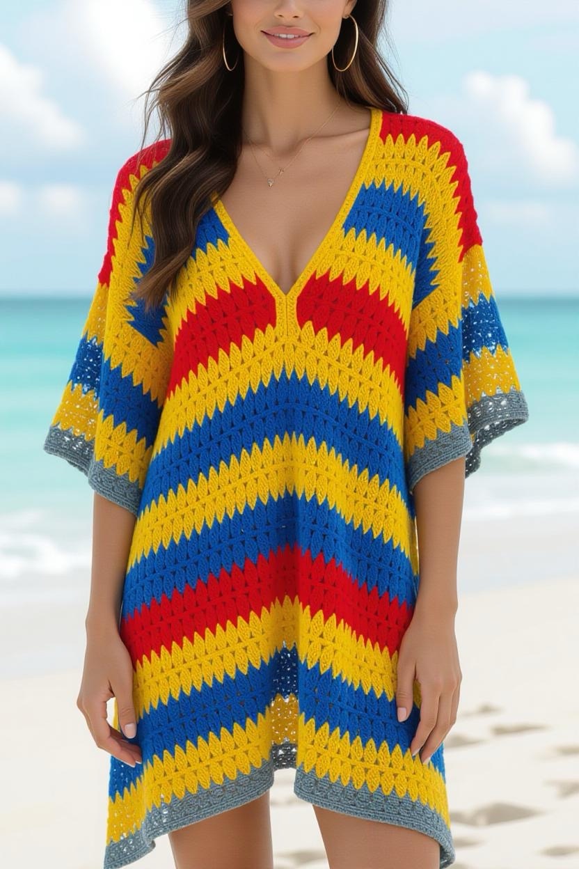 Mix and match two colors for a modern spin. A two-tone crochet cover-up creates contrast and visual interest while keeping your outfit trendy and unique.