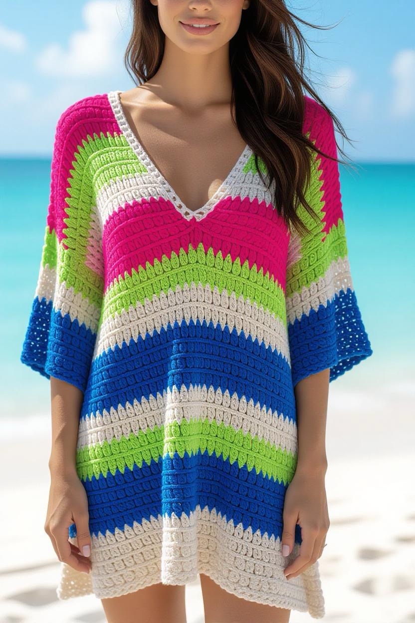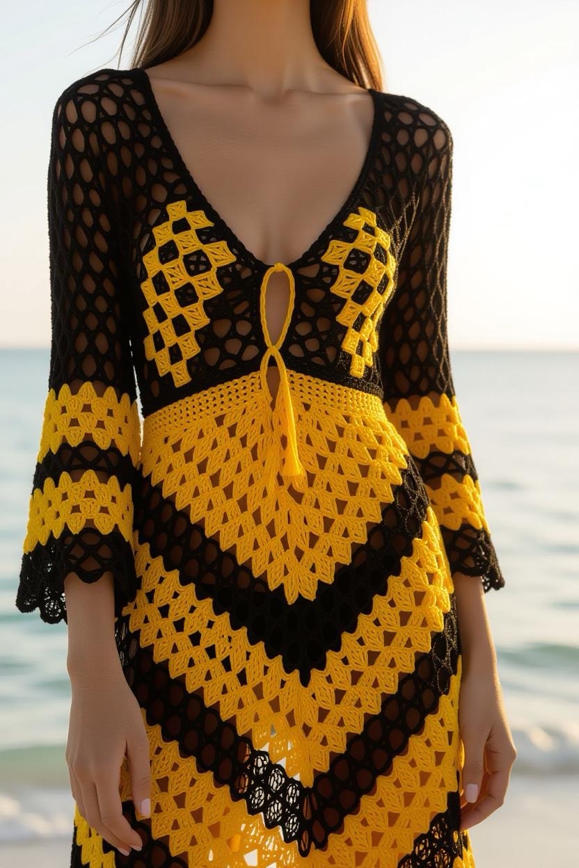 If you love the idea of showing off your swimsuit underneath, a mesh-style crochet dress is perfect. The open stitches give a breezy look while keeping you cool under the summer sun.