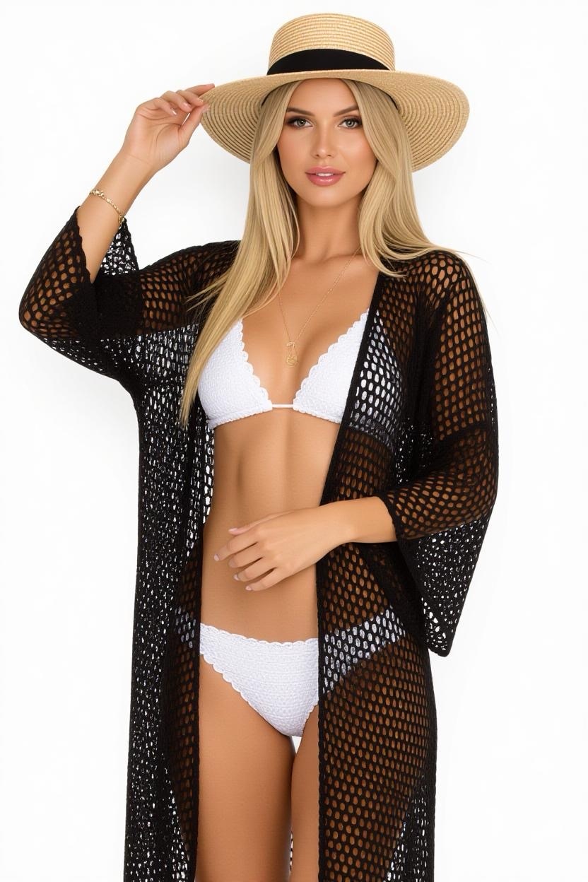 A kimono-style cover-up brings sophistication and flow. The loose sleeves and open front make it easy to layer while giving you an effortlessly stylish vibe.