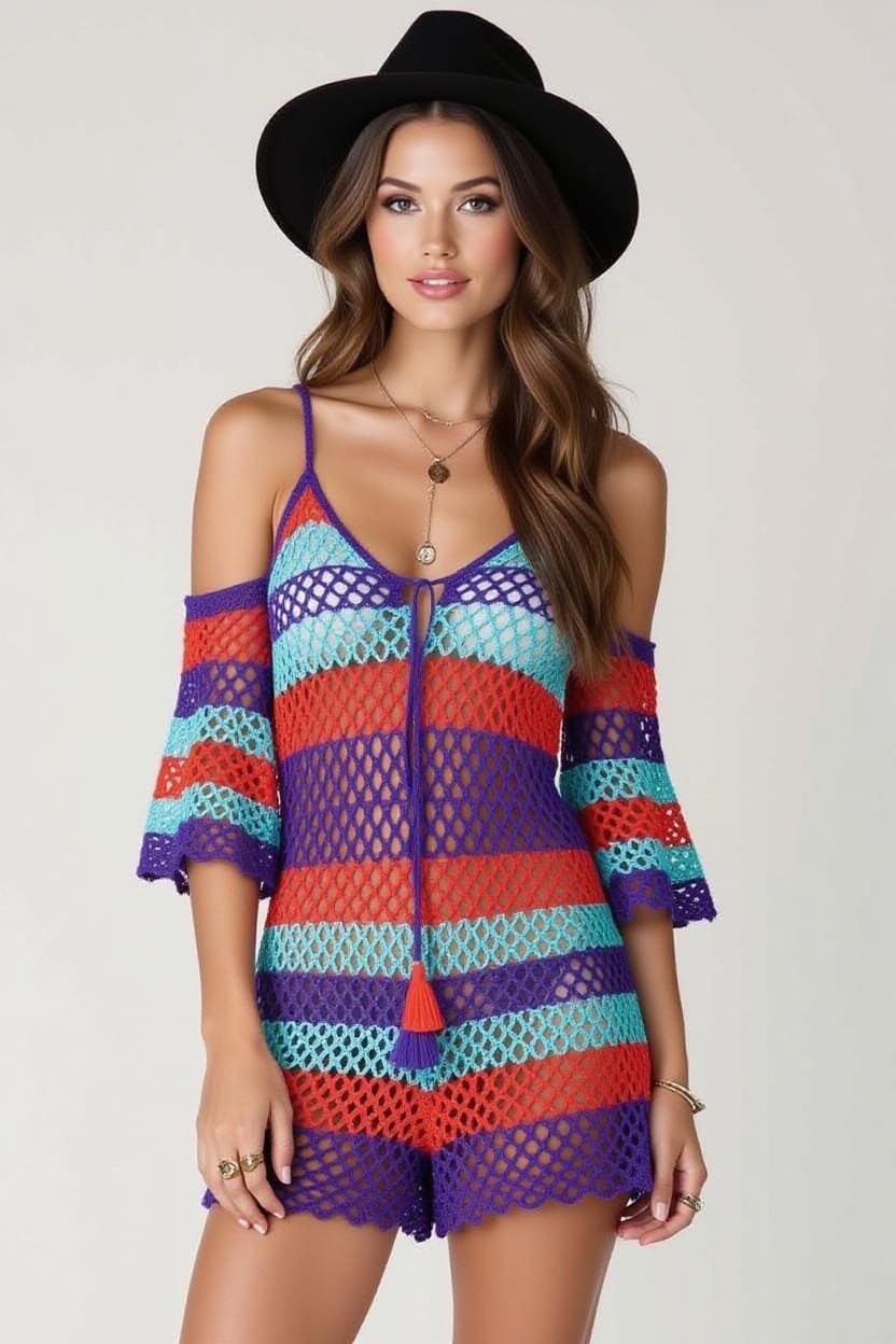 For something playful and unexpected, try a romper-style crochet cover-up. It gives you freedom to move while keeping your look stylish and unique.