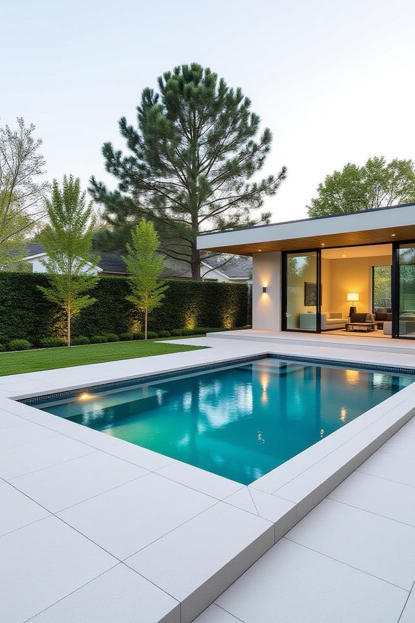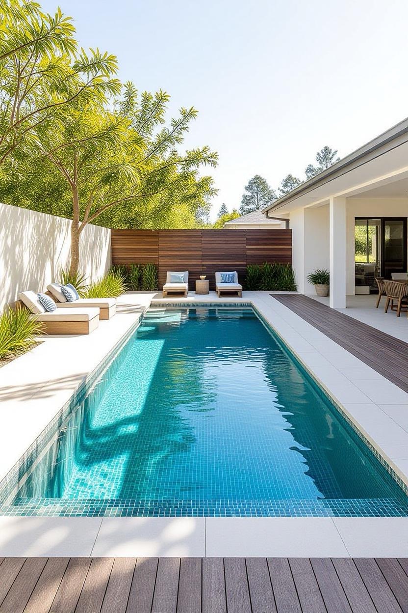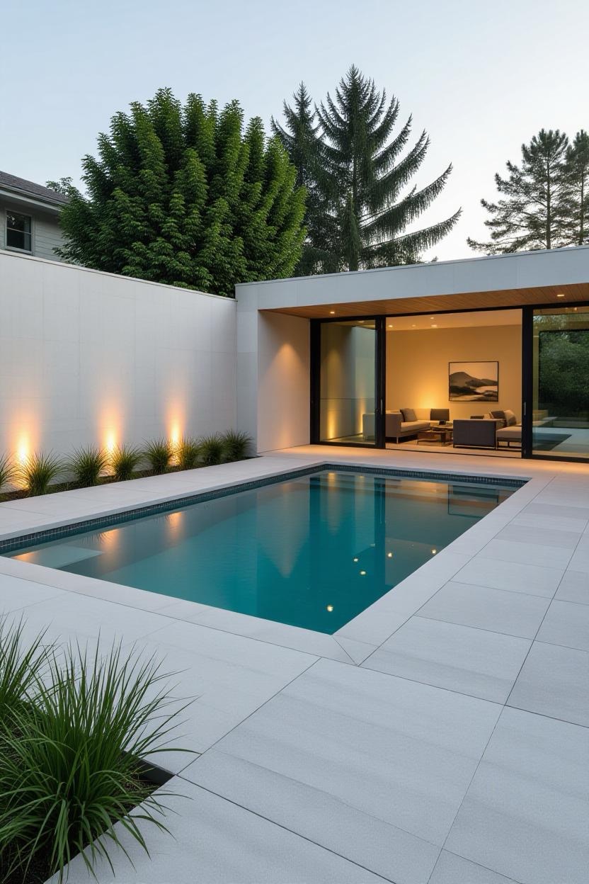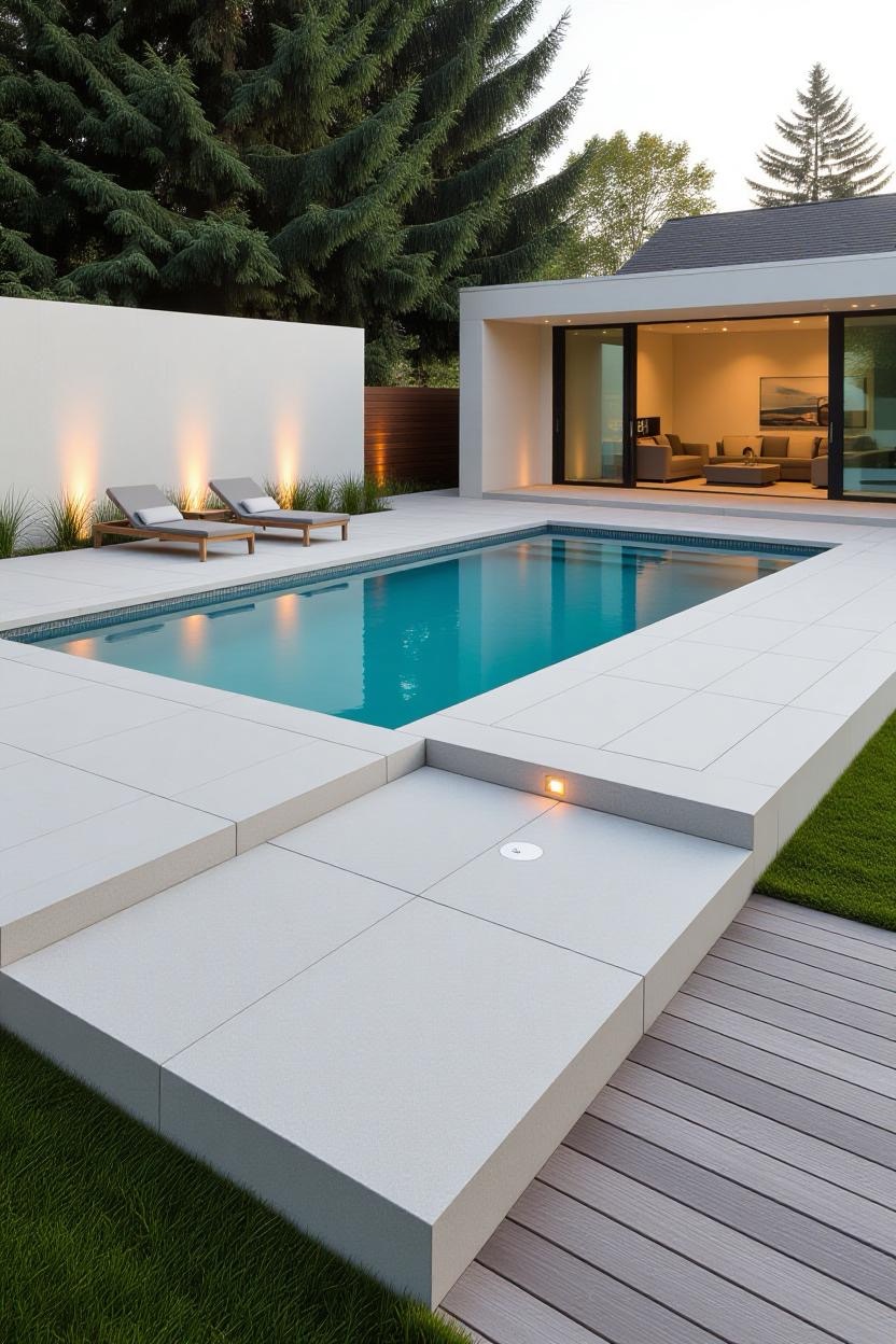 If clean lines and simplicity are your style, a minimalist inground pool is the perfect choice. These designs focus on sharp edges, neutral tones, and a sleek layout. Pair with concrete decking and subtle lighting for a timeless, contemporary look that blends seamlessly into your outdoor space.