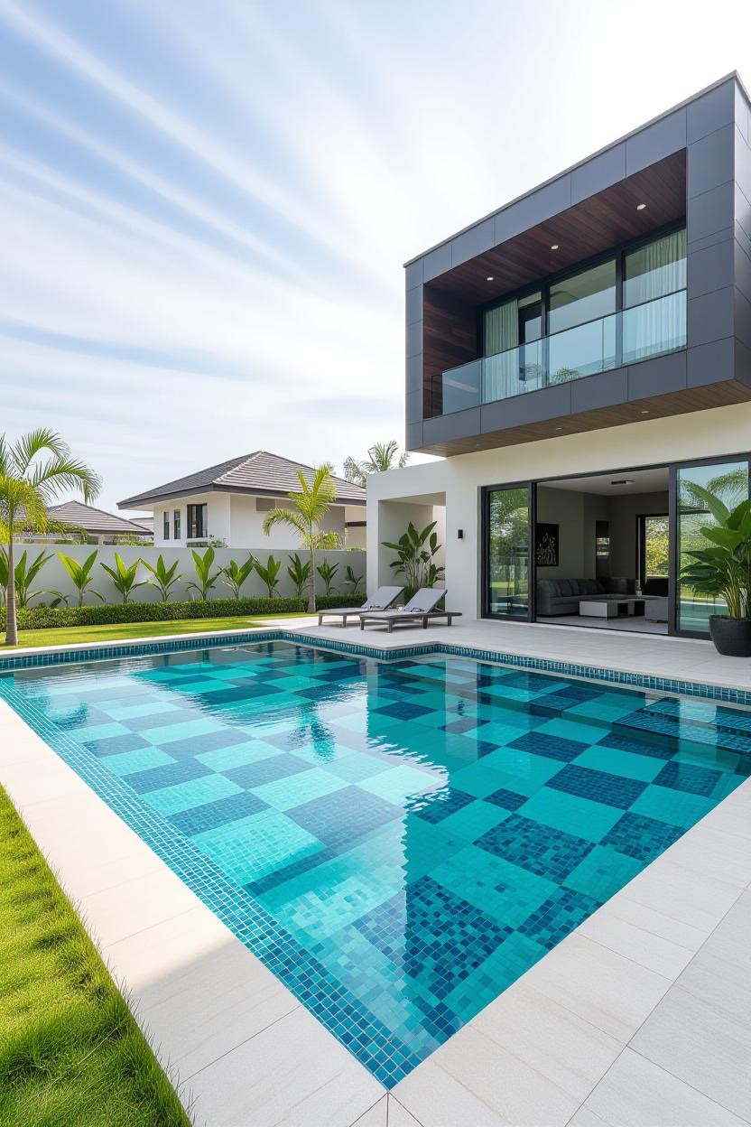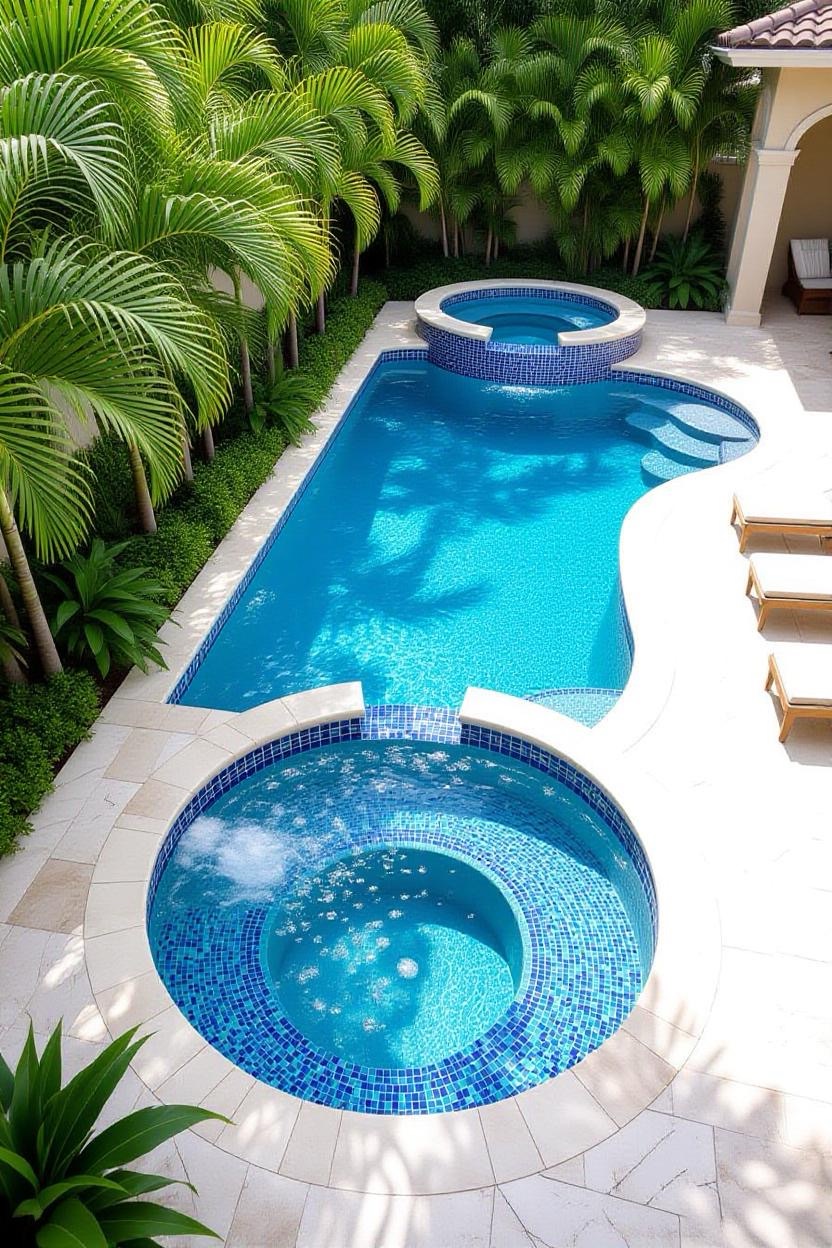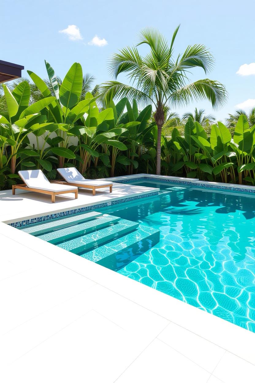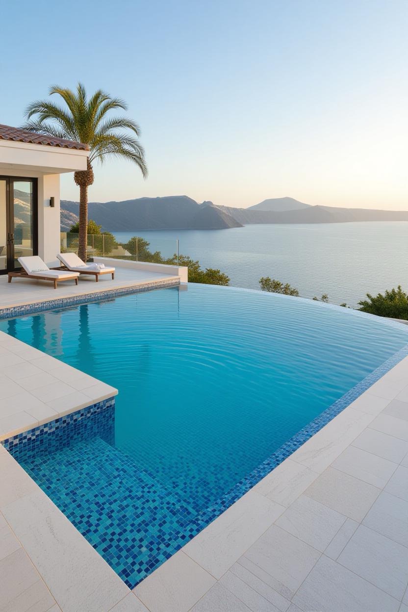 Shimmering glass tiles reflect sunlight beautifully, transforming your pool into a dazzling jewel. Whether you opt for deep blues, vibrant greens, or subtle neutrals, glass tiles add a luxurious finish.