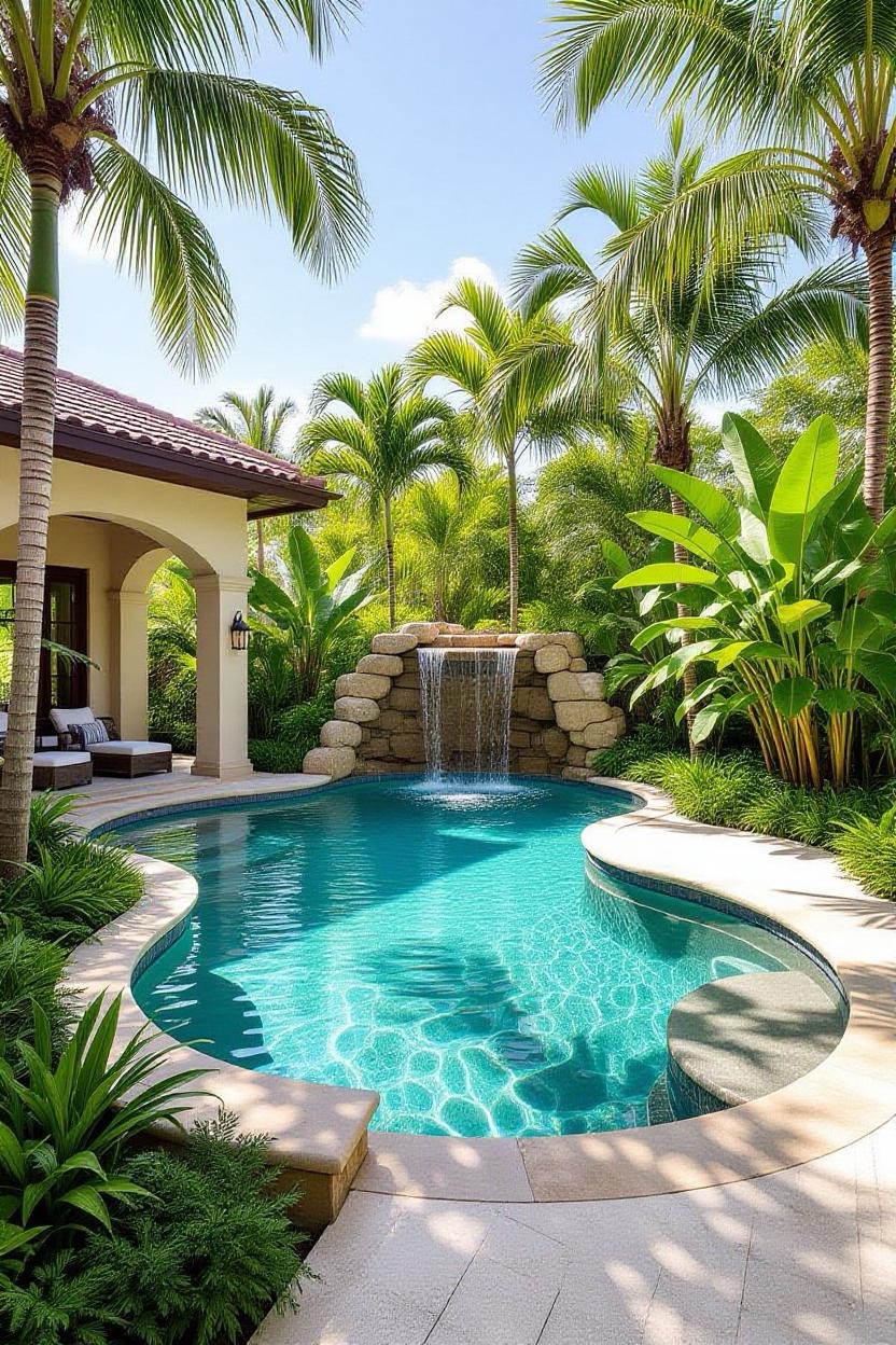Bring the feel of a tropical paradise home with a lagoon-inspired pool. Rounded edges, natural stone, and lush greenery around the water give you a vacation-like escape every day. Add a waterfall feature to elevate the ambiance.