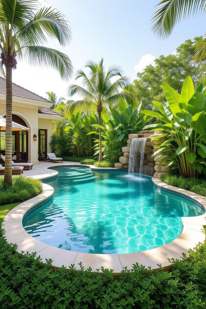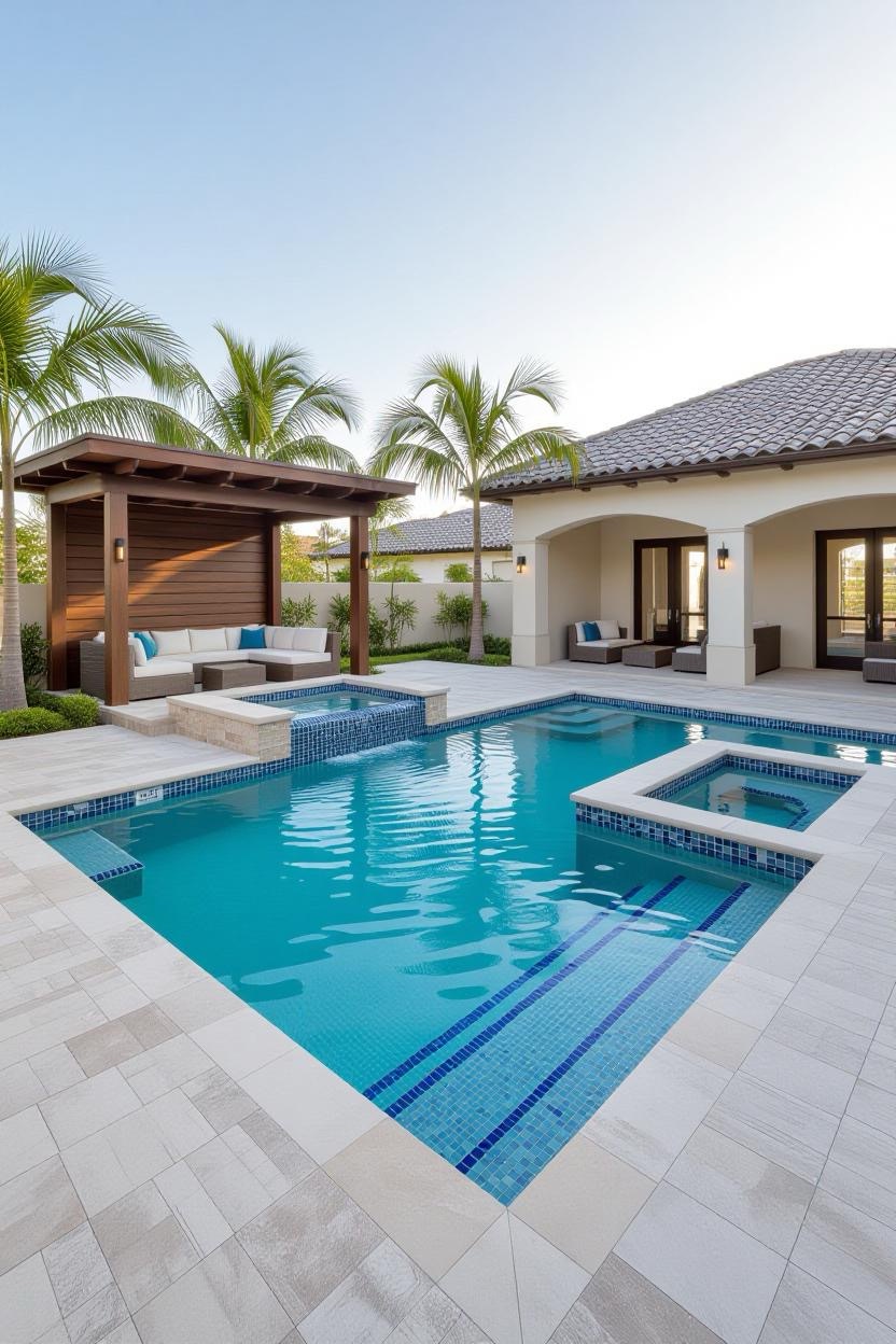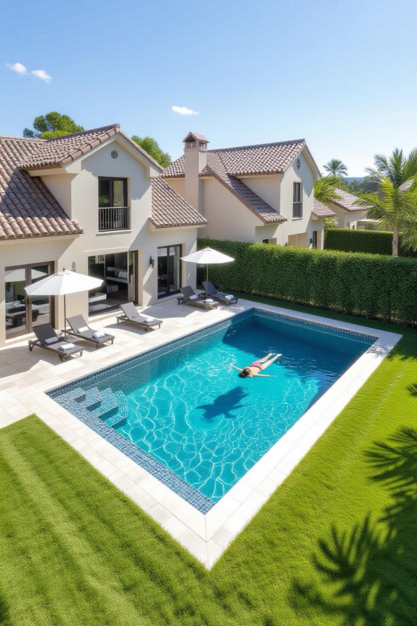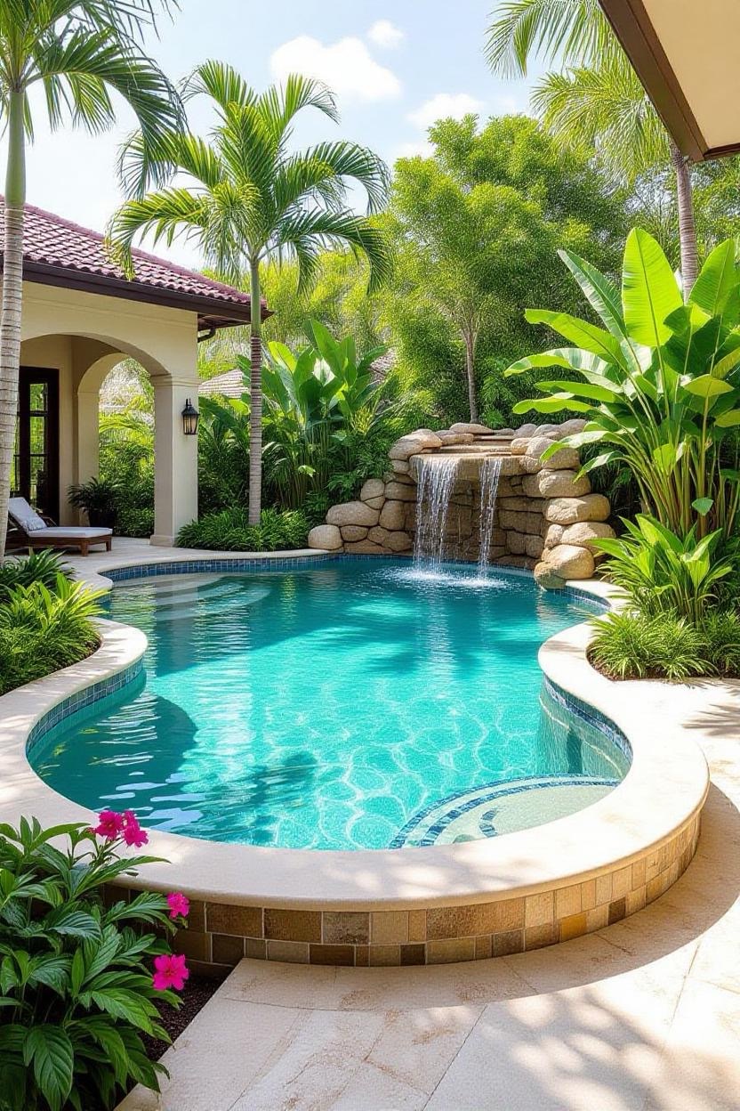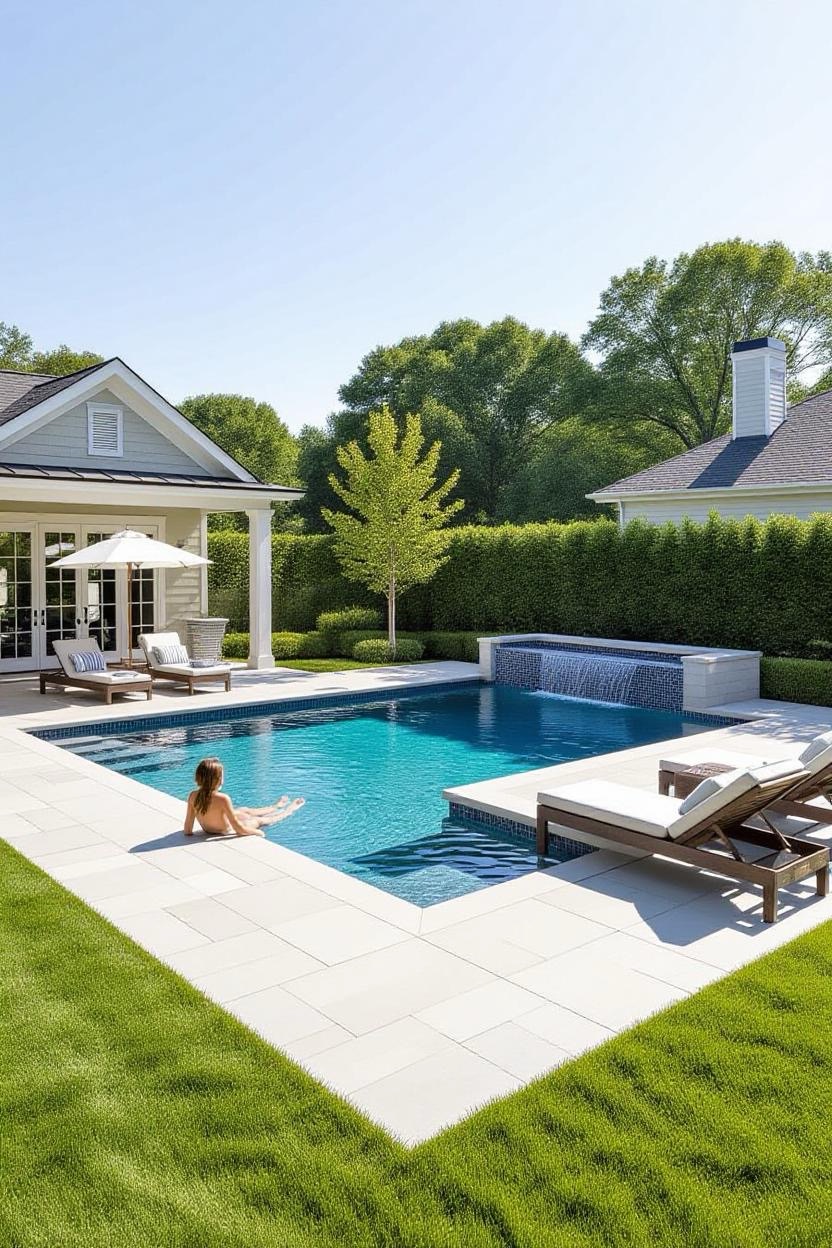 Embrace the warmth and style of a Mediterranean villa with a pool surrounded by terracotta tiles, arched water features, and classic stonework. Add olive trees or potted plants for a charming old-world vibe.