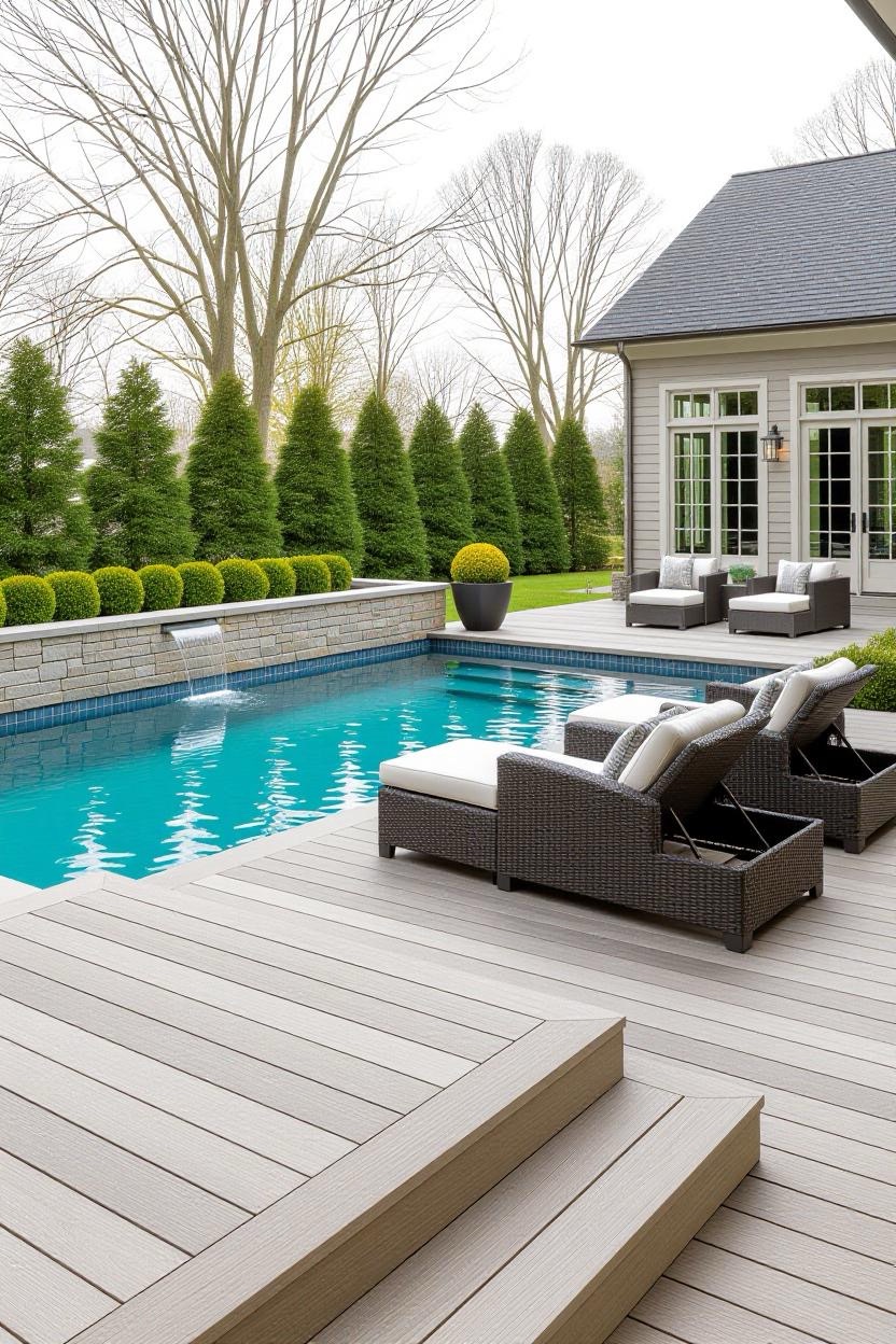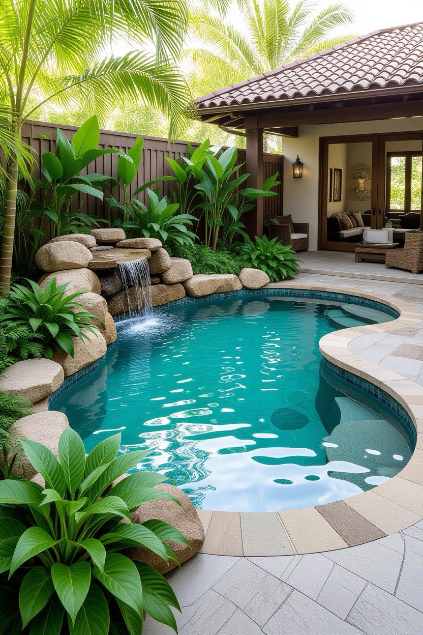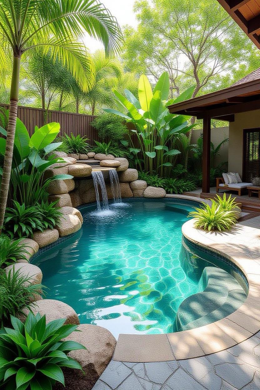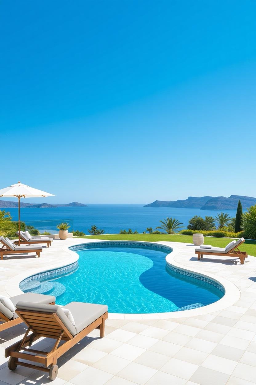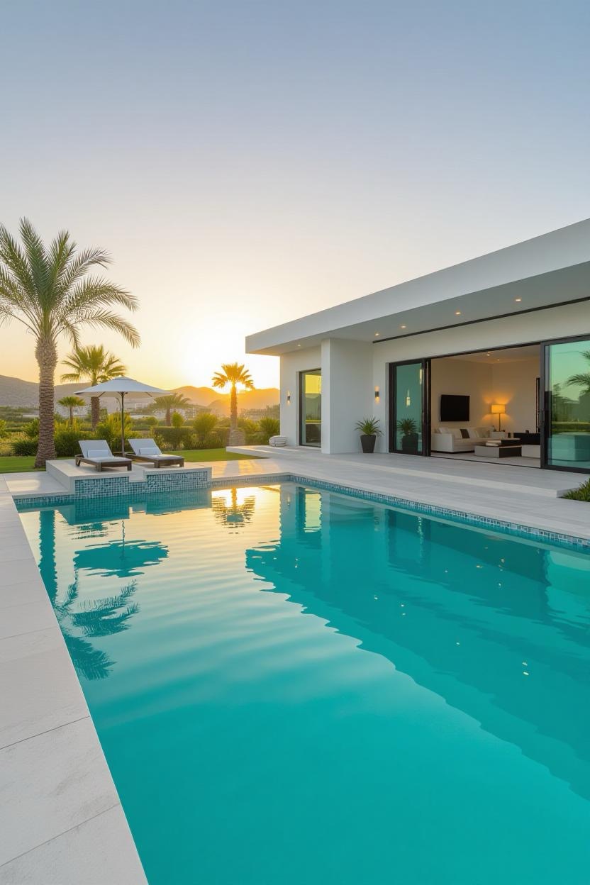 Embrace the warmth and style of a Mediterranean villa with a pool surrounded by terracotta tiles, arched water features, and classic stonework. Add olive trees or potted plants for a charming old-world vibe.