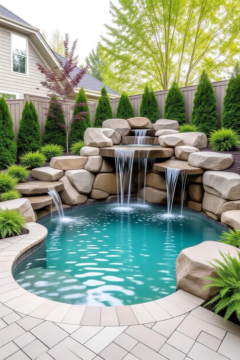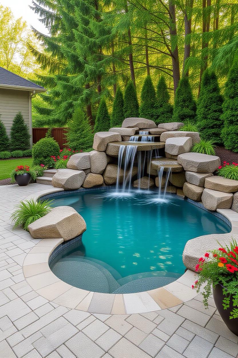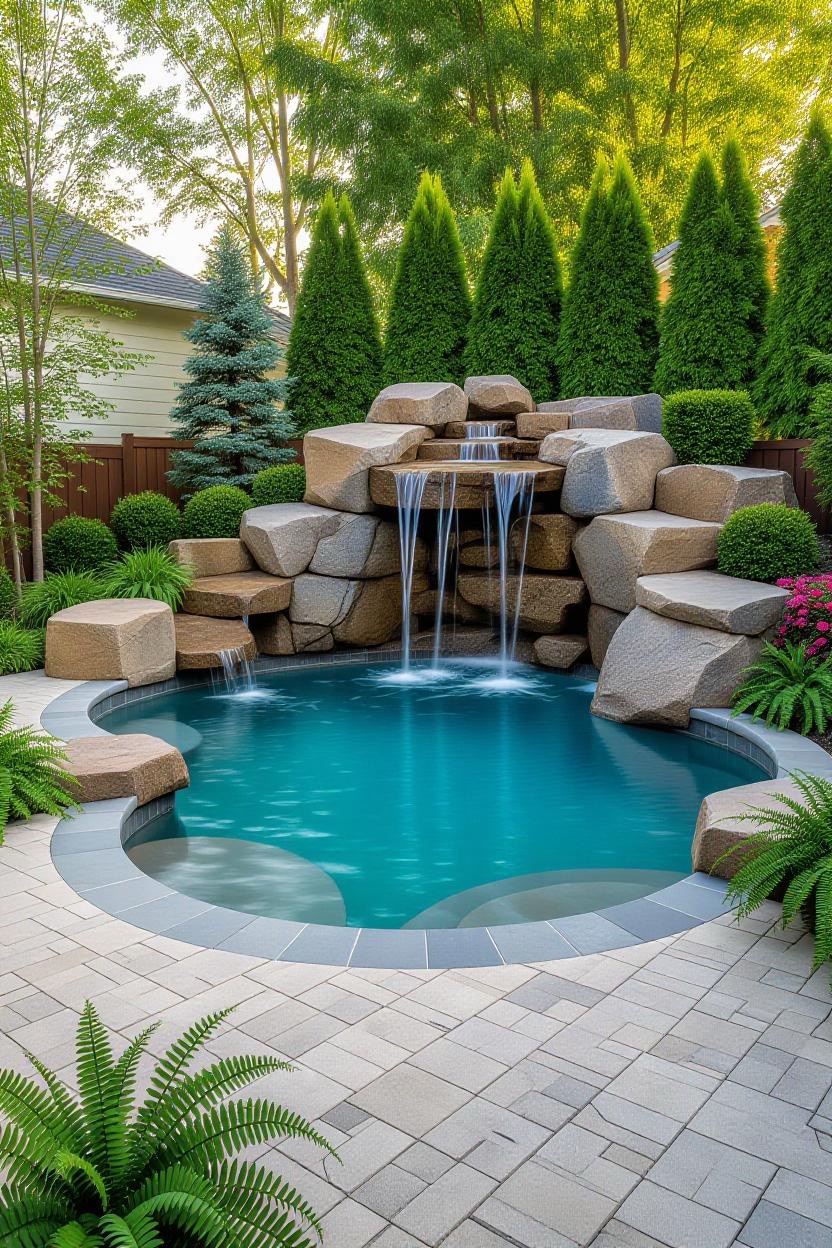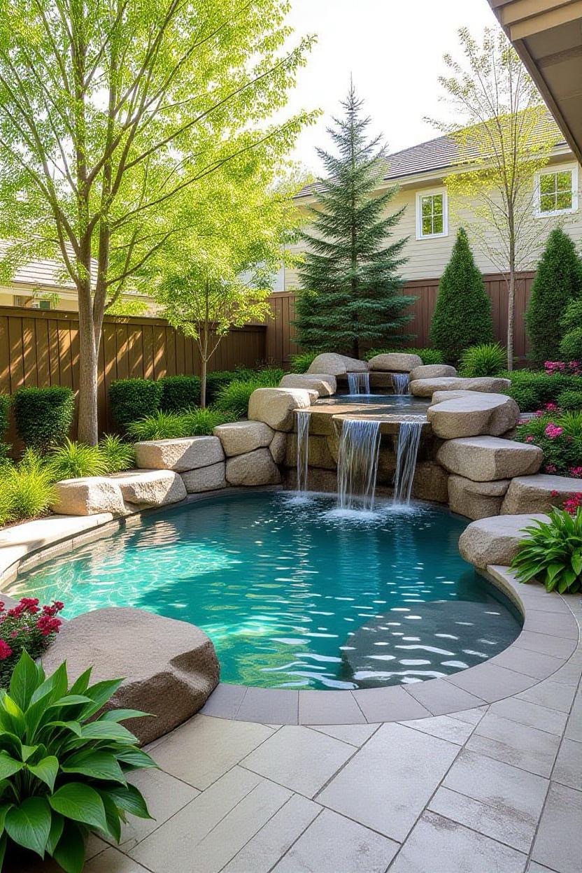Mimic the beauty of nature with a rock-feature pool. Surround the edges with boulders, cascading waterfalls, and greenery to give your backyard a serene, organic atmosphere.