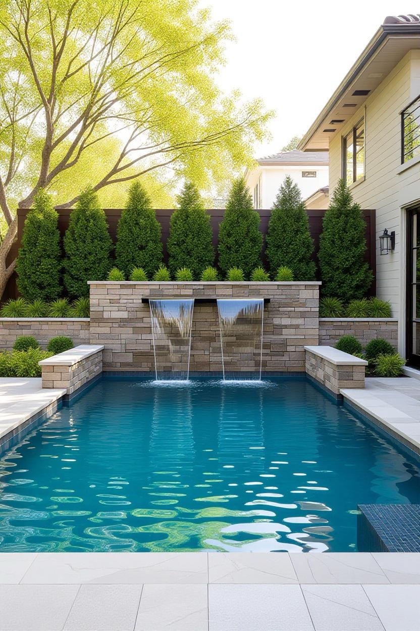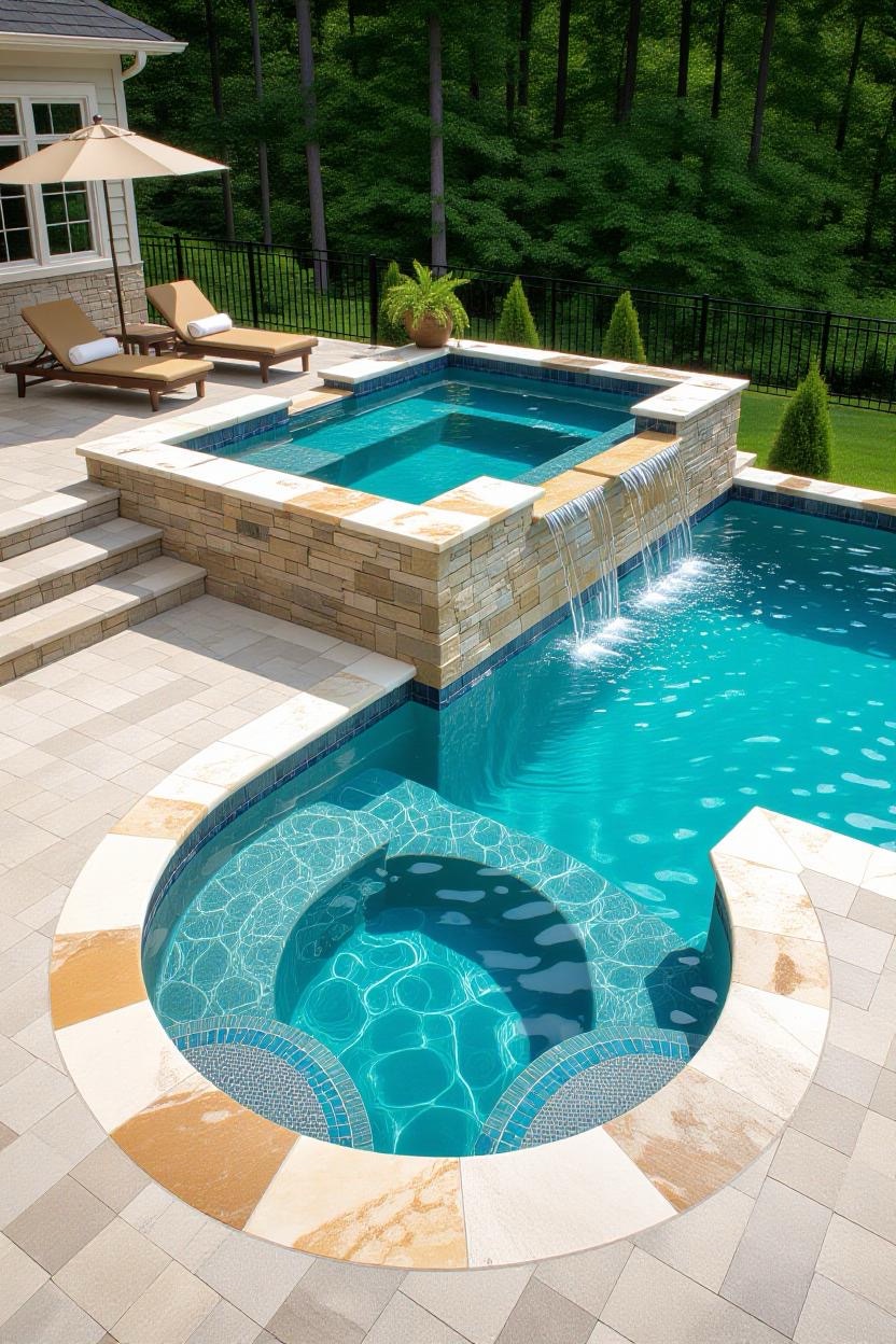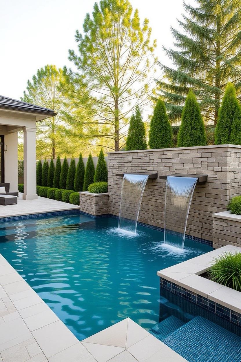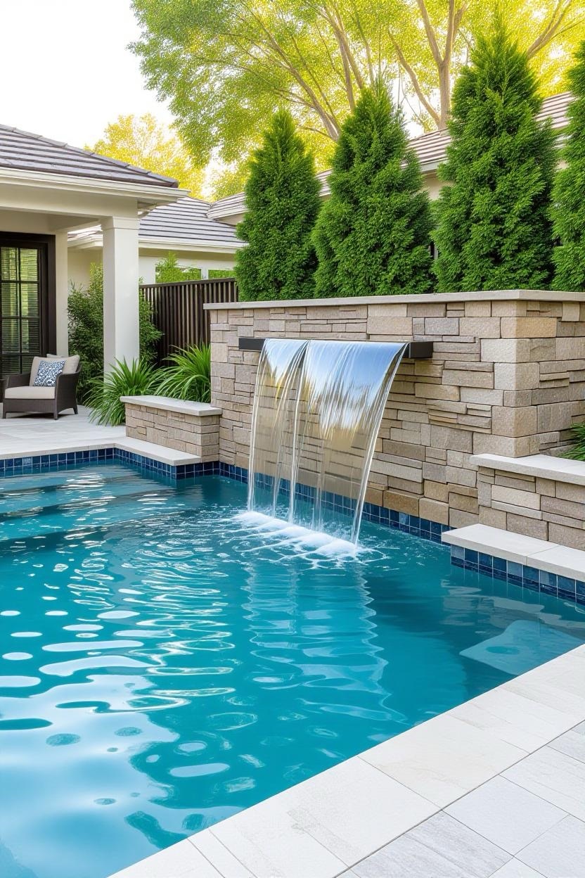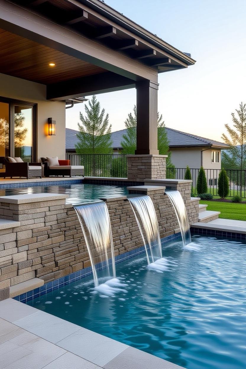 Waterfalls add both sound and movement to your pool design, creating a tranquil and luxurious environment. Combine with stonework for a natural look or sleek metal spouts for a modern vibe.