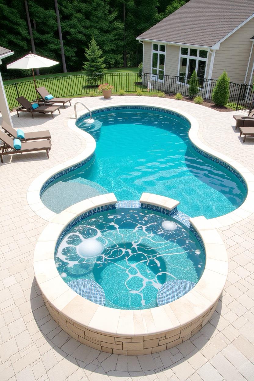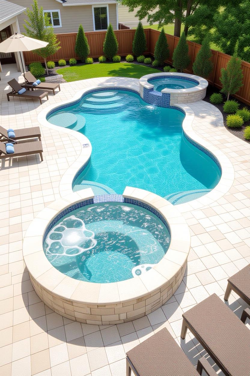 Why choose between relaxation and recreation? A combined pool and hot tub layout offers the best of both worlds. Enjoy a swim, then unwind in the adjoining spa with warm, bubbling water.