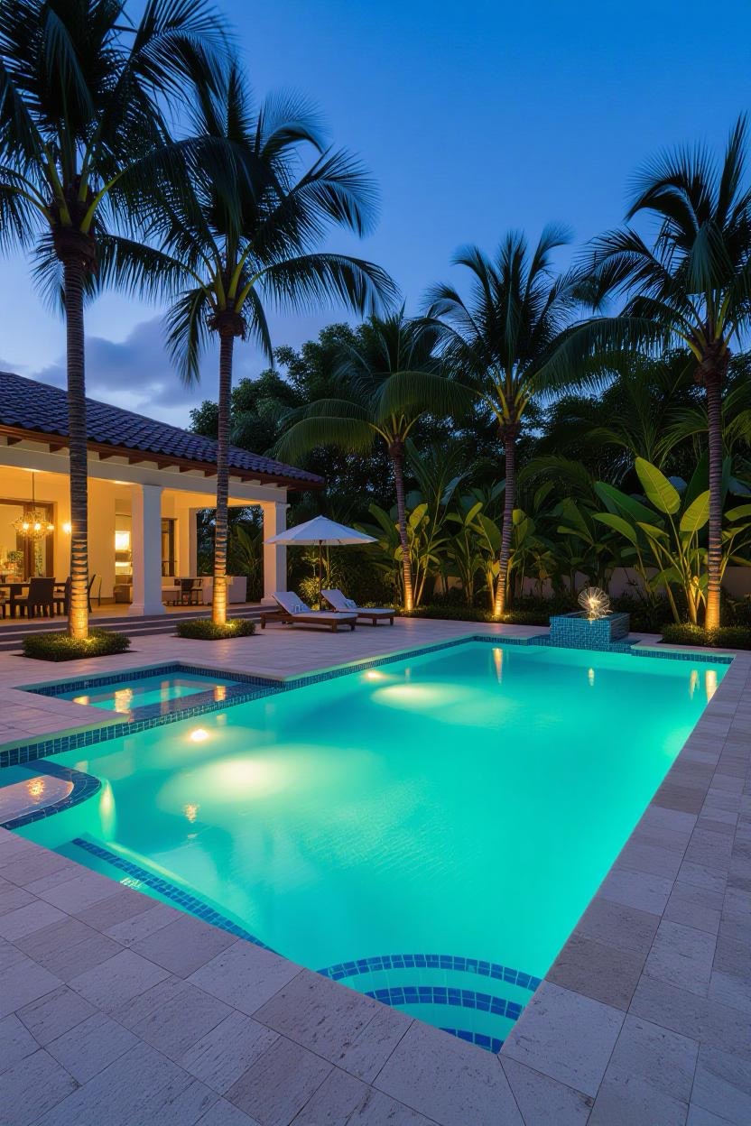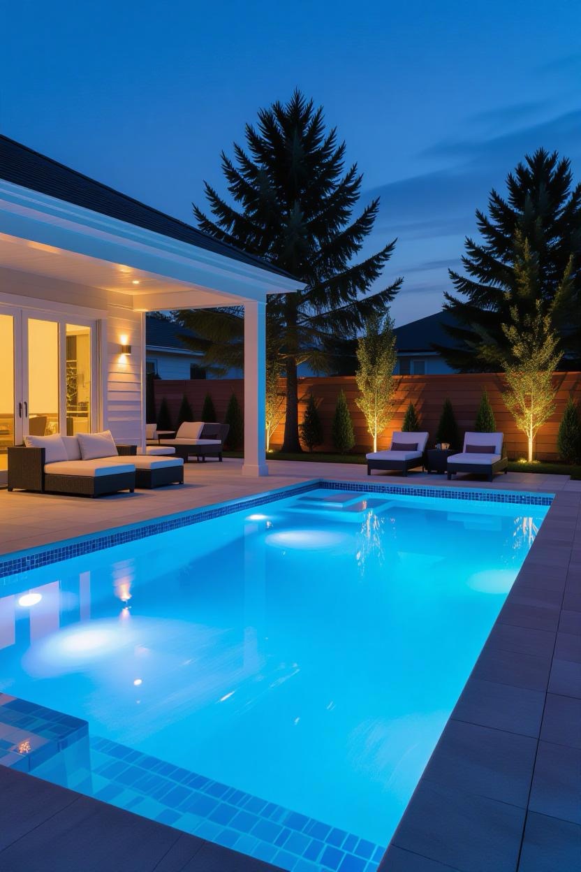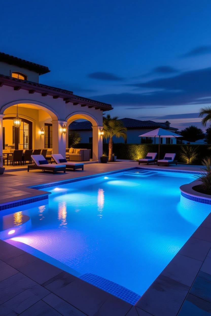 Transform your backyard into a nighttime oasis with underwater LED lighting. Play with colors and intensity to create different moods, from romantic evenings to lively pool parties.