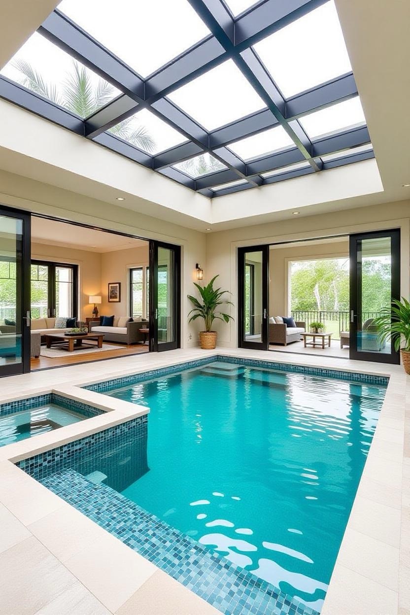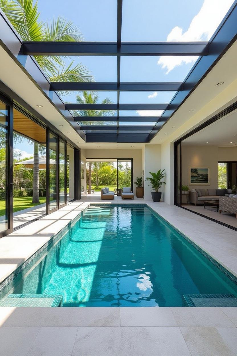 If you’re lucky enough to have the space, an indoor-outdoor pool combines sheltered luxury with open-air freedom. A glass wall or retractable roof enhances the effect beautifully.