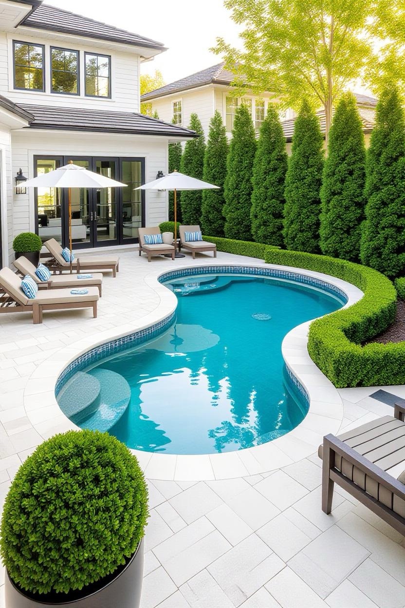 Curved shapes add softness and flow to your backyard design. An oval or round pool is elegant, space-efficient, and pairs well with both modern and traditional outdoor themes.