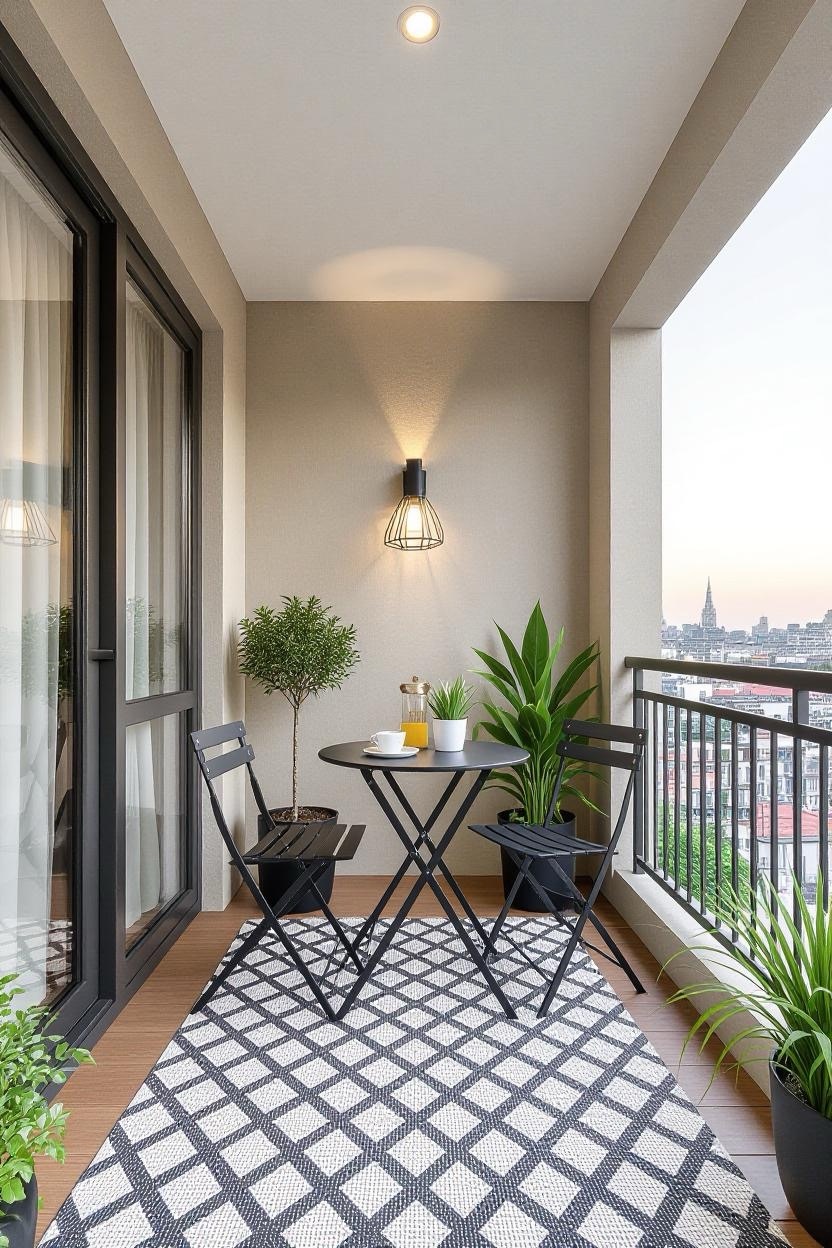 If your balcony is on the smaller side, opt for a foldable bistro set. It provides functionality without taking up much space, perfect for morning coffee or evening chats under the stars.