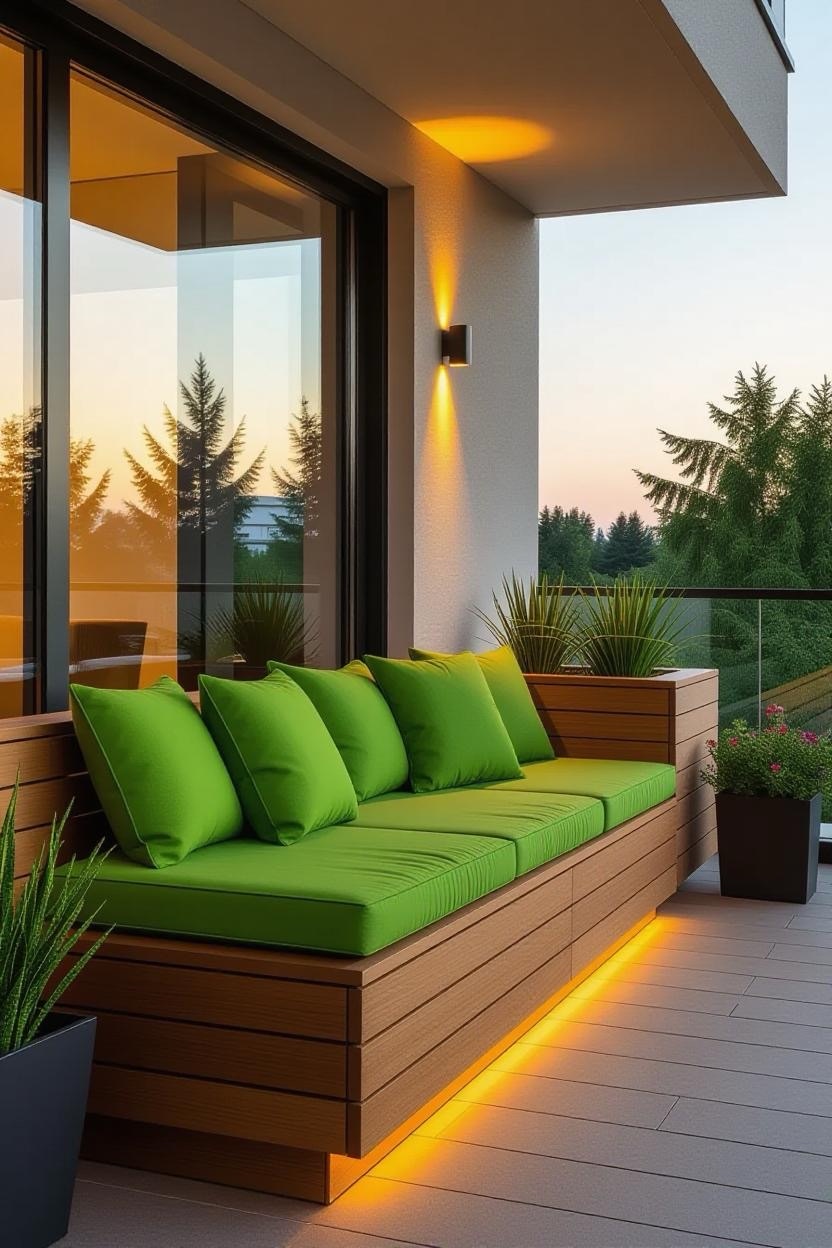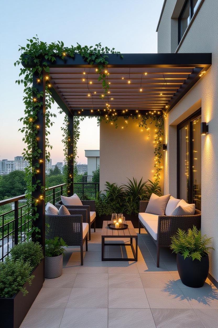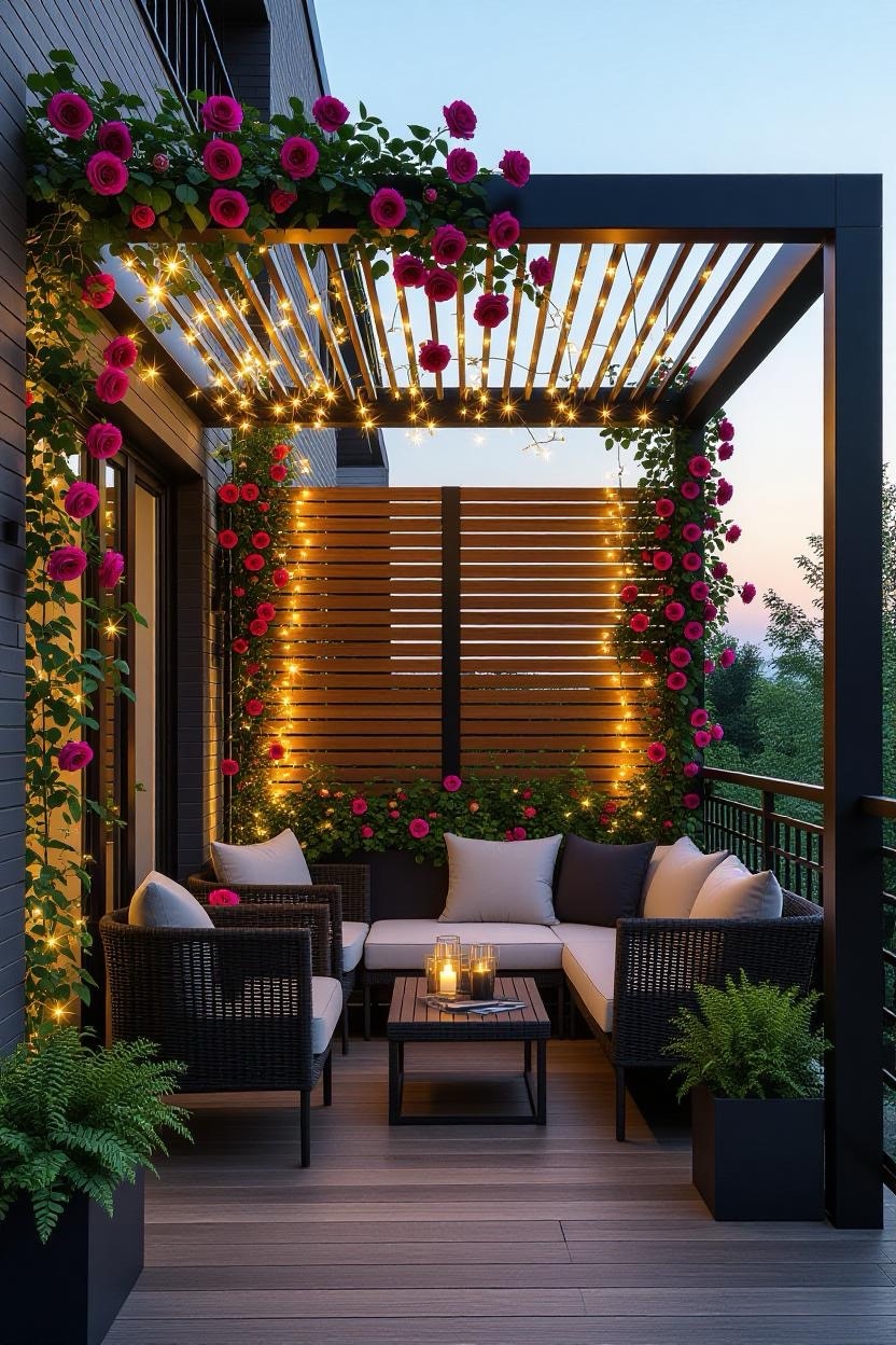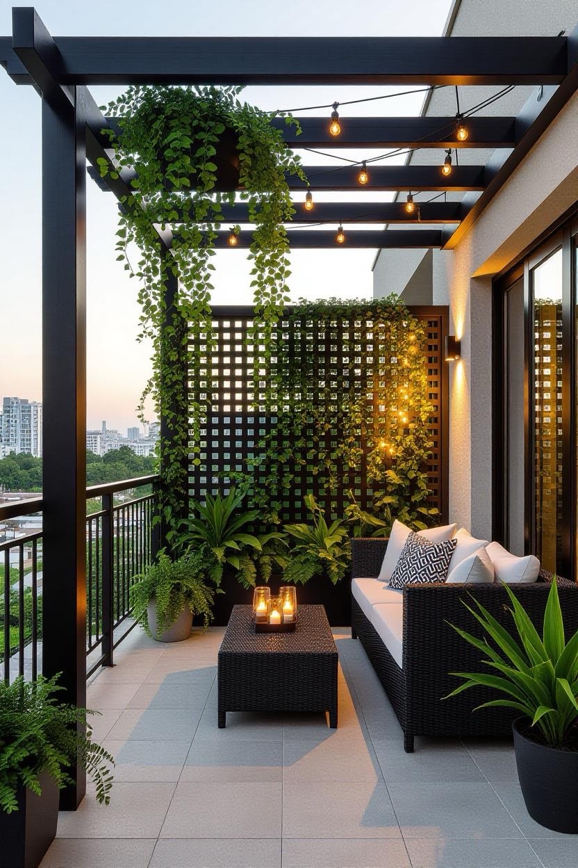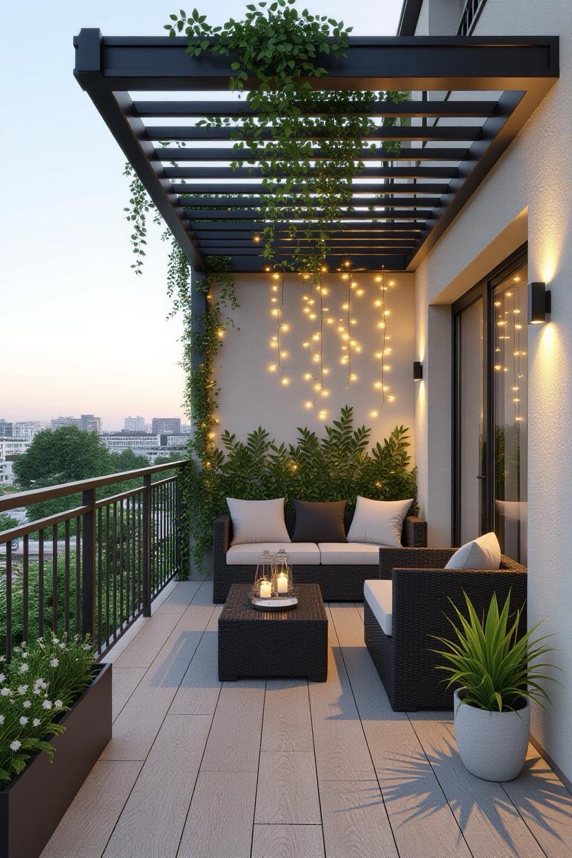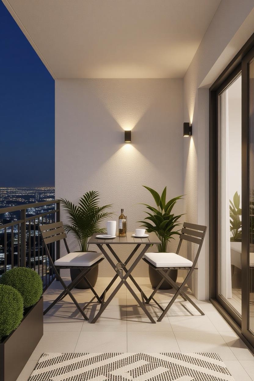 Place lanterns or LED candles around your balcony to create a soft, romantic glow. Lighting transforms even the simplest balcony into a magical, intimate space.