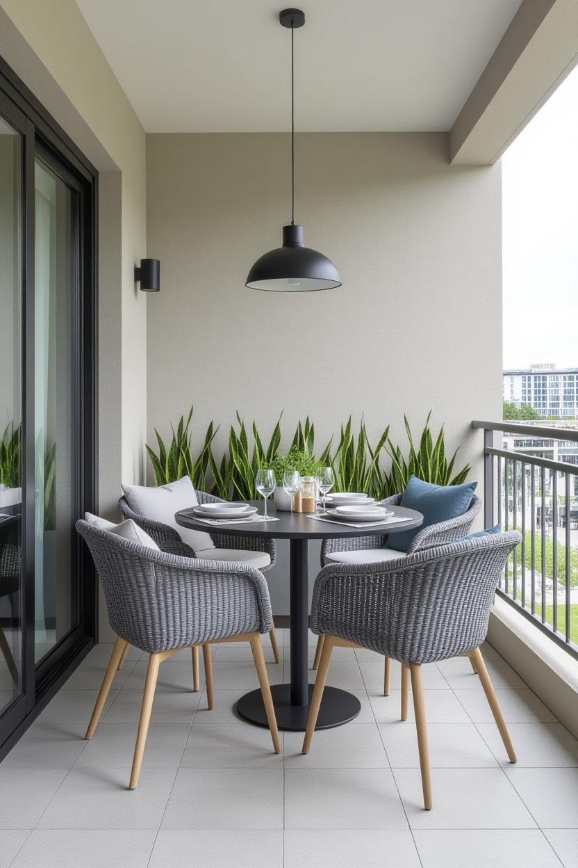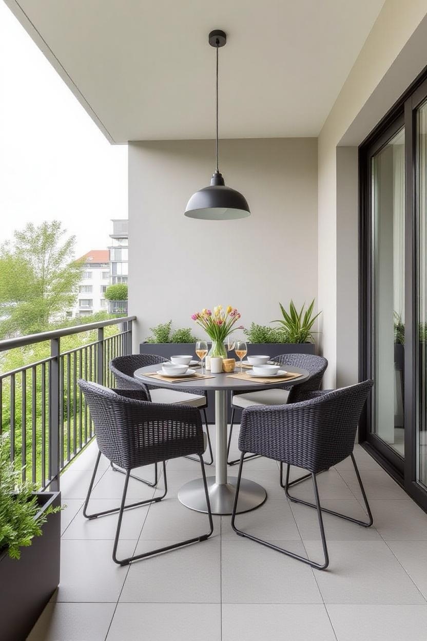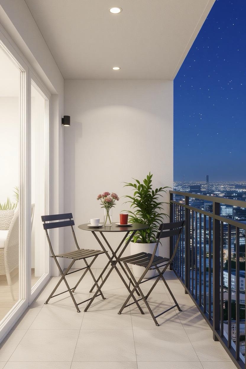 Transform your balcony into a mini dining area with a modern table and stylish chairs. Ideal for cozy dinners, it doubles as an extra dining spot in your home.