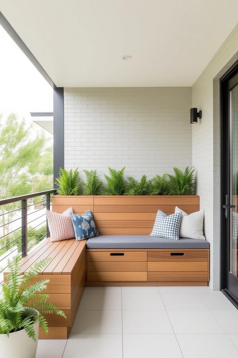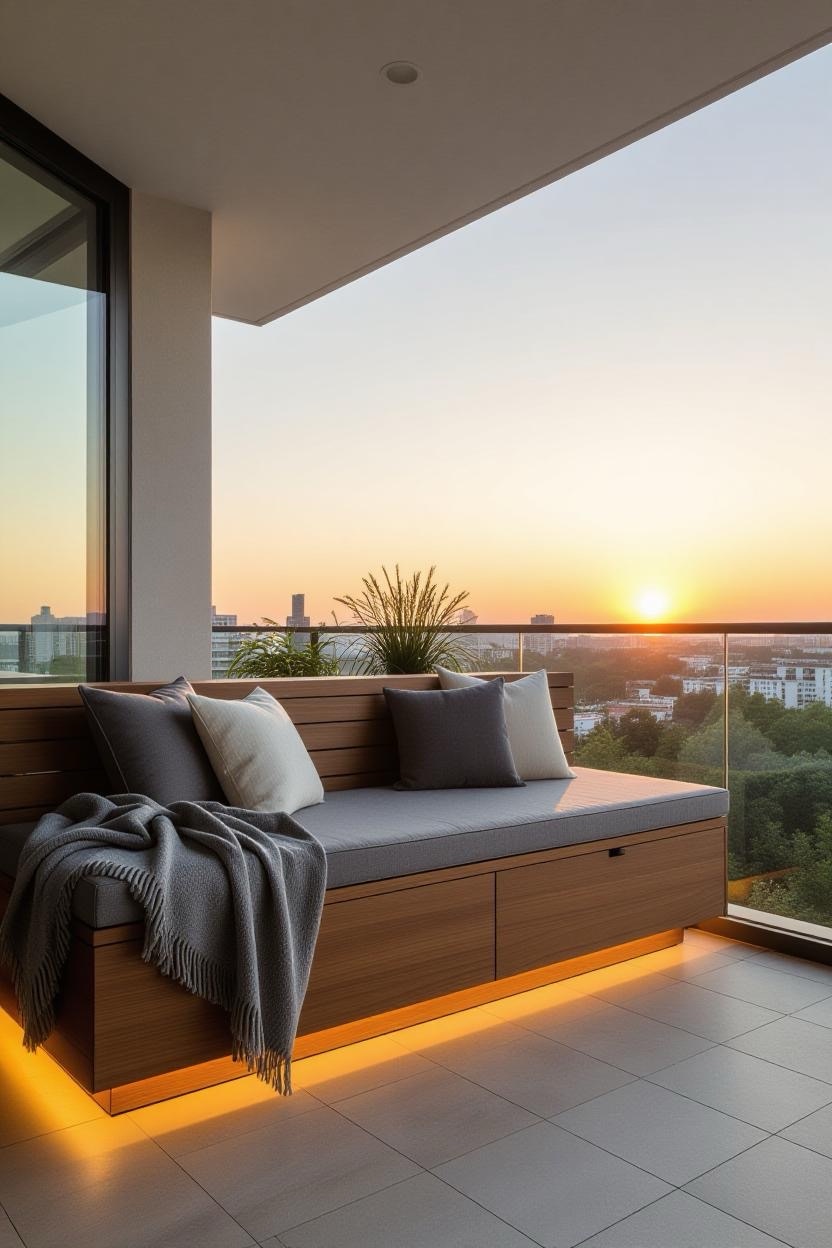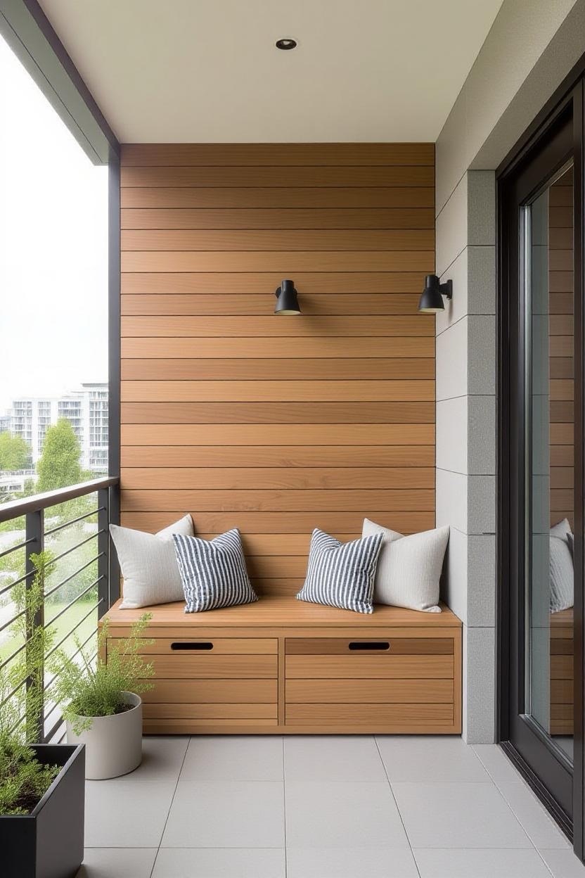 Maximize space by installing a built-in wooden bench with storage underneath. This sleek addition not only saves space but also offers a stylish spot to relax and entertain guests.
