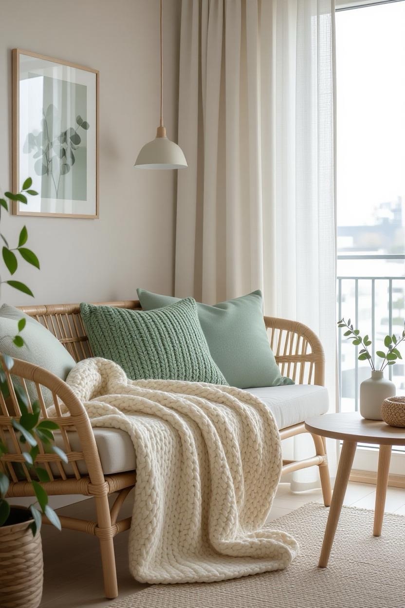 Stick to light woods, muted colors, and minimal décor for a Scandinavian-inspired look. Throw in a cozy blanket and a knitted cushion for a warm, hygge feel.