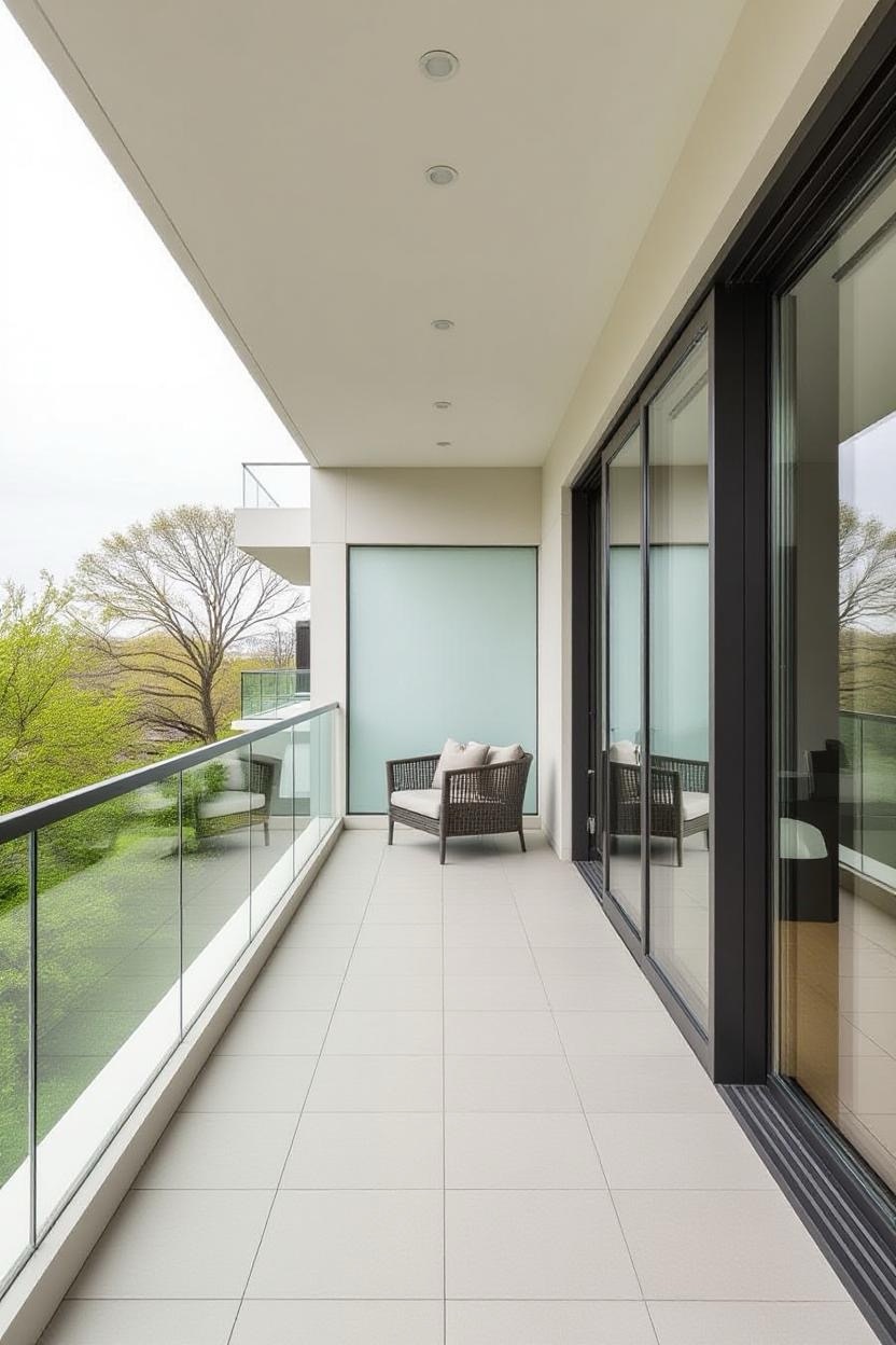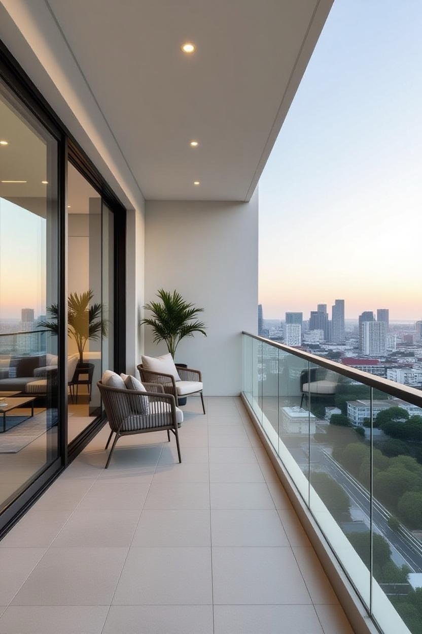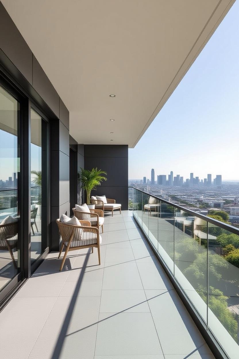 Upgrade your balcony’s railing with glass panels. They offer unobstructed views while giving your space a sleek, contemporary edge.