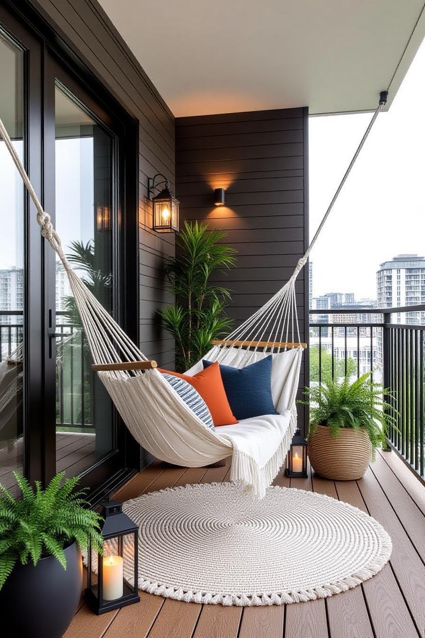 If space allows, hang a hammock for the ultimate chill zone. Pair it with a few pillows and lanterns for a relaxing weekend escape right at home.