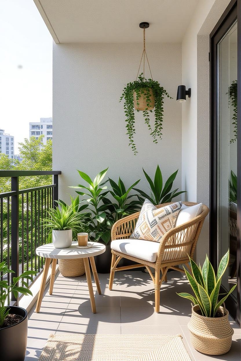 Bring the outdoors closer by filling your balcony with potted plants, hanging greenery, and even a vertical garden wall. Greenery instantly adds freshness while creating a natural, calming retreat for your daily unwinding.