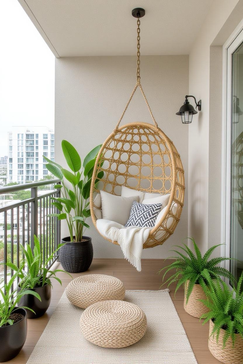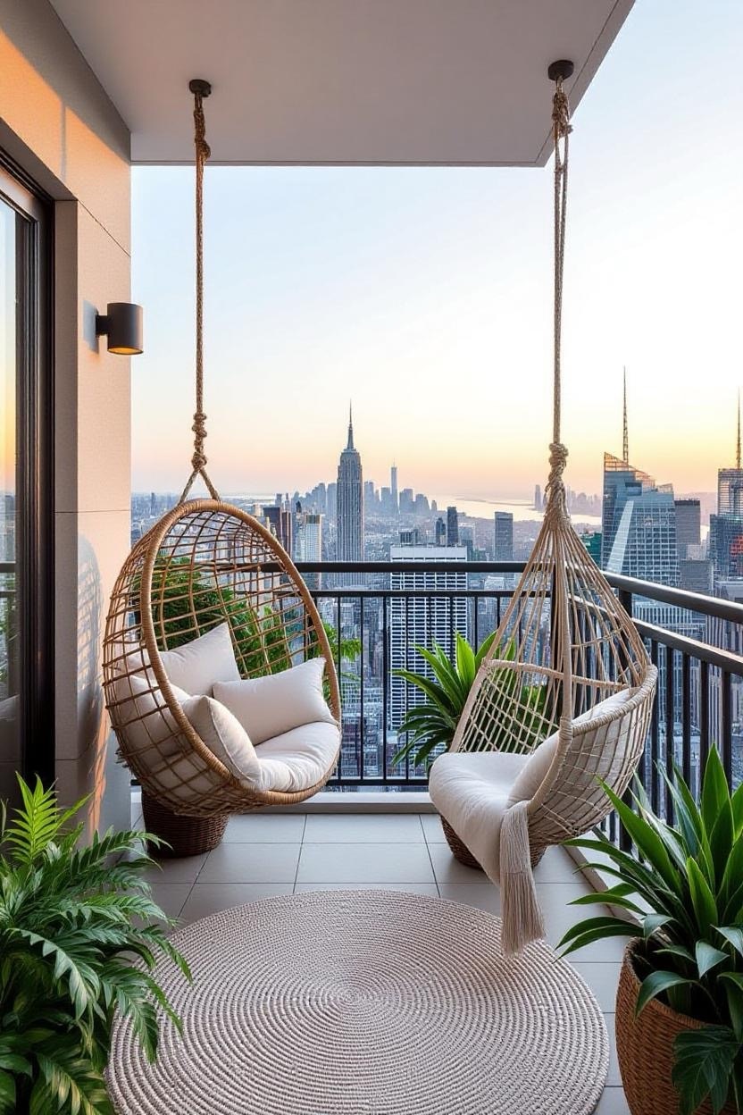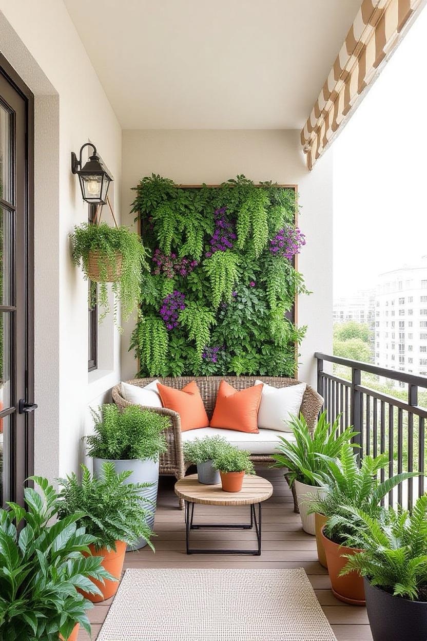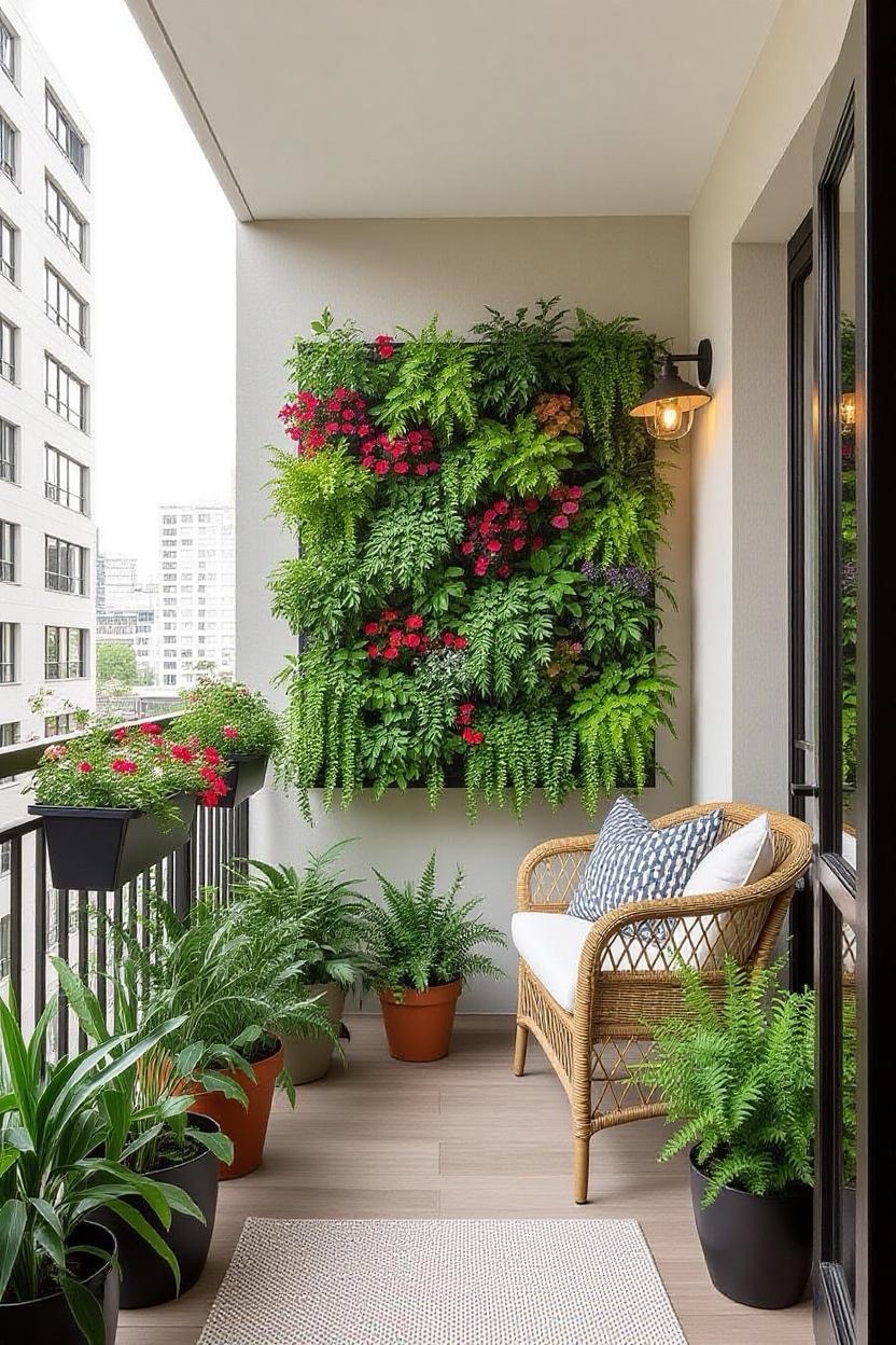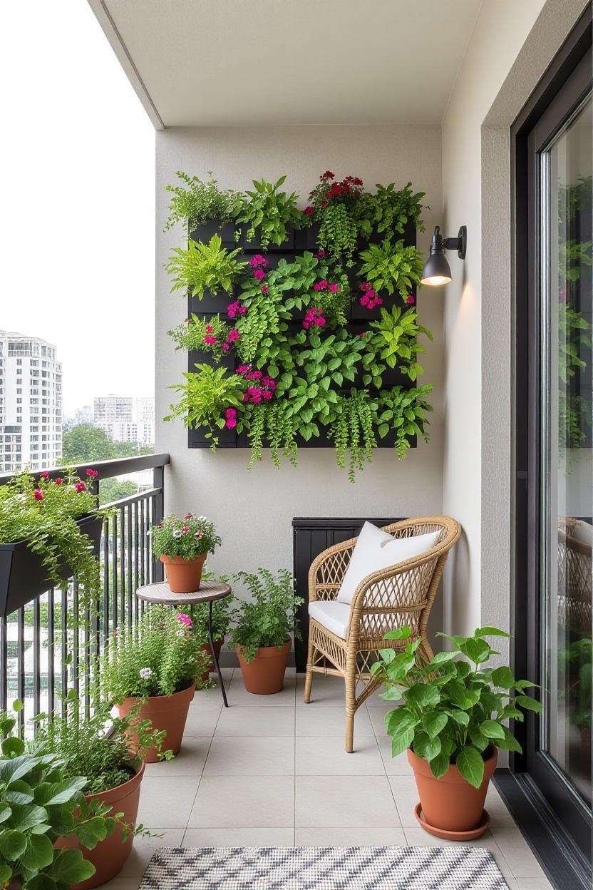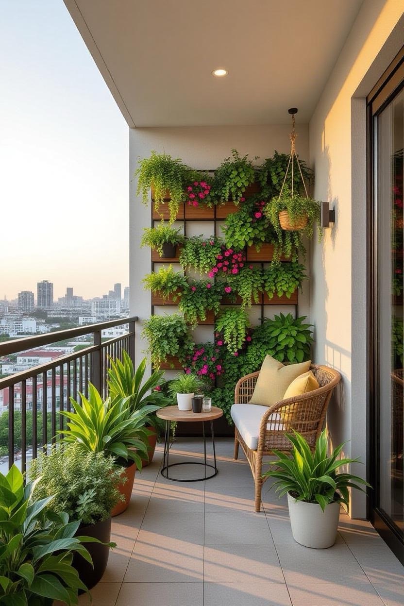 Turn your small balcony into a refreshing urban oasis by adding potted plants, hanging planters, and a vertical garden wall. This splash of greenery brings life to the space while giving you a mini escape from city living.