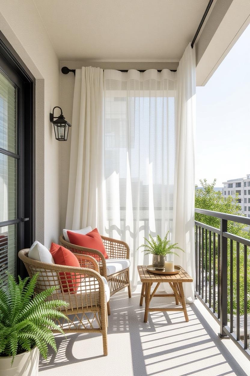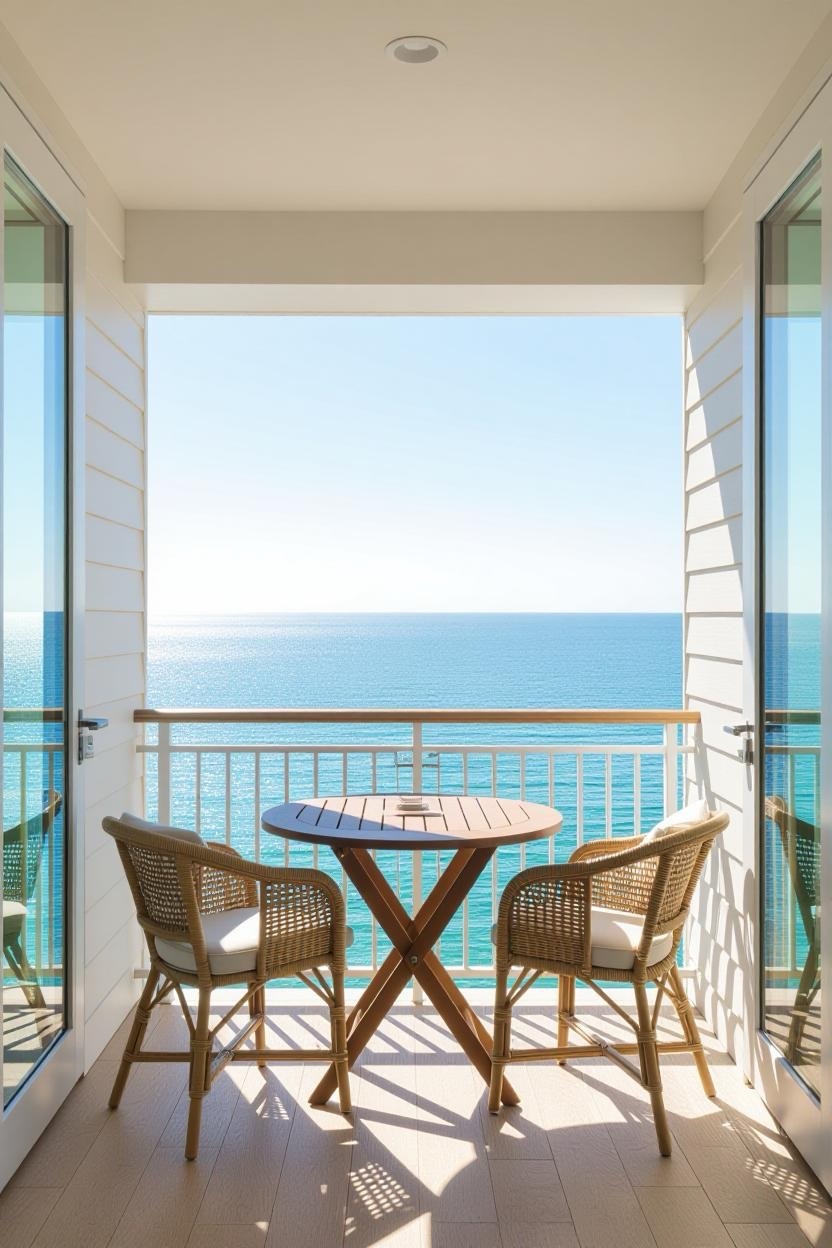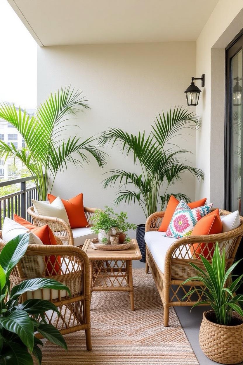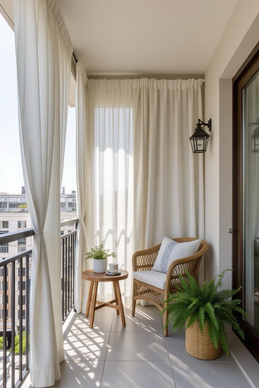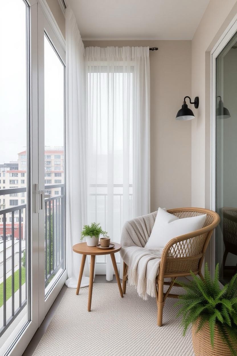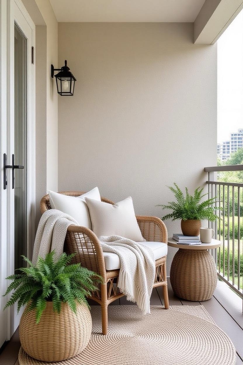 Add natural textures like wicker chairs, wooden stools, and bamboo shades to give your balcony a warm and organic feel.