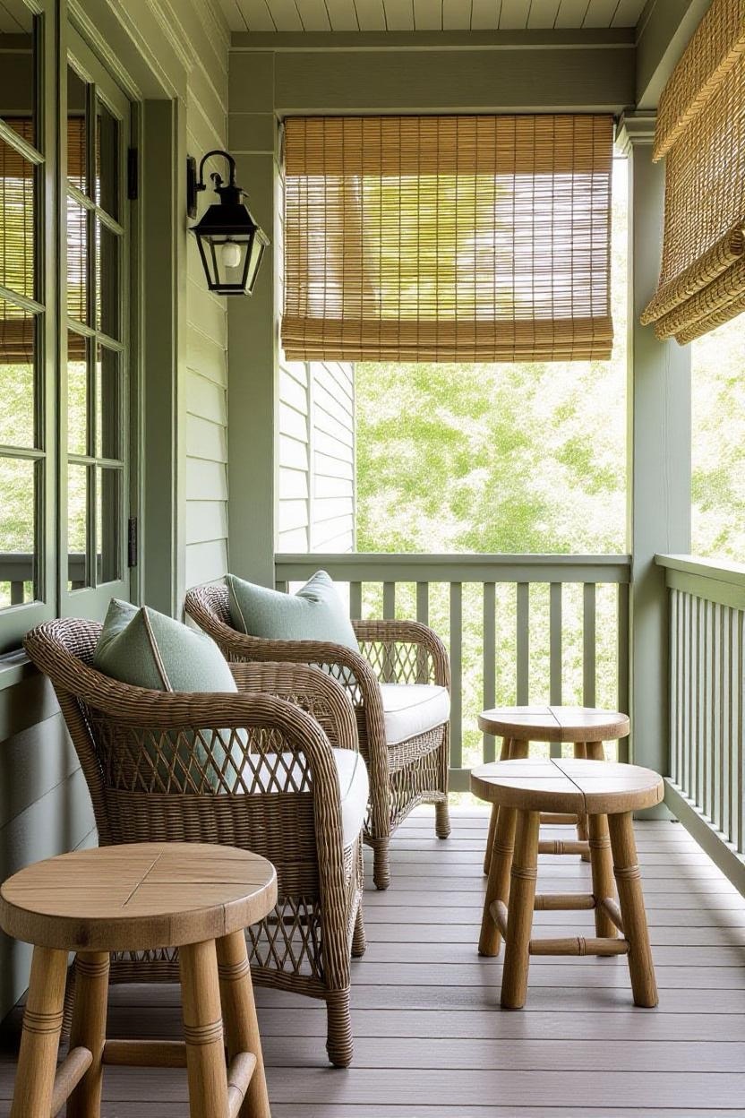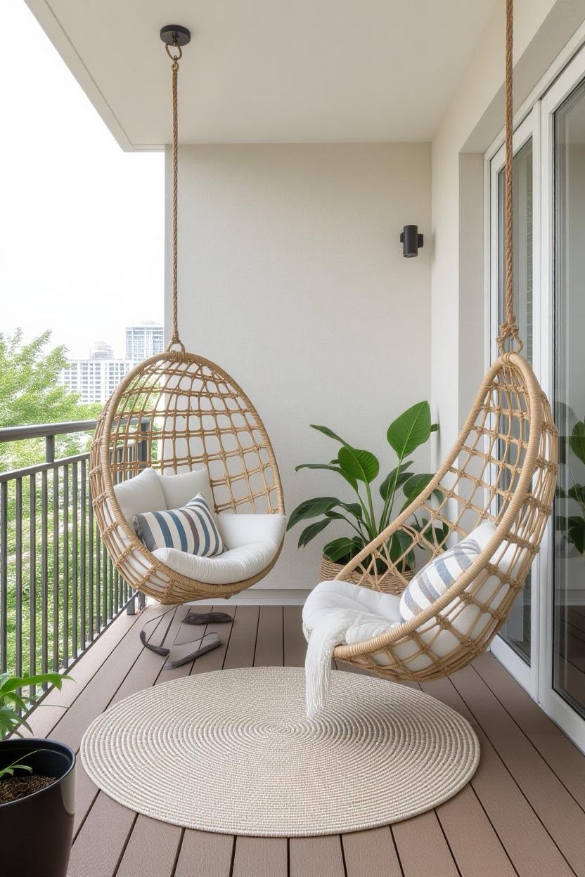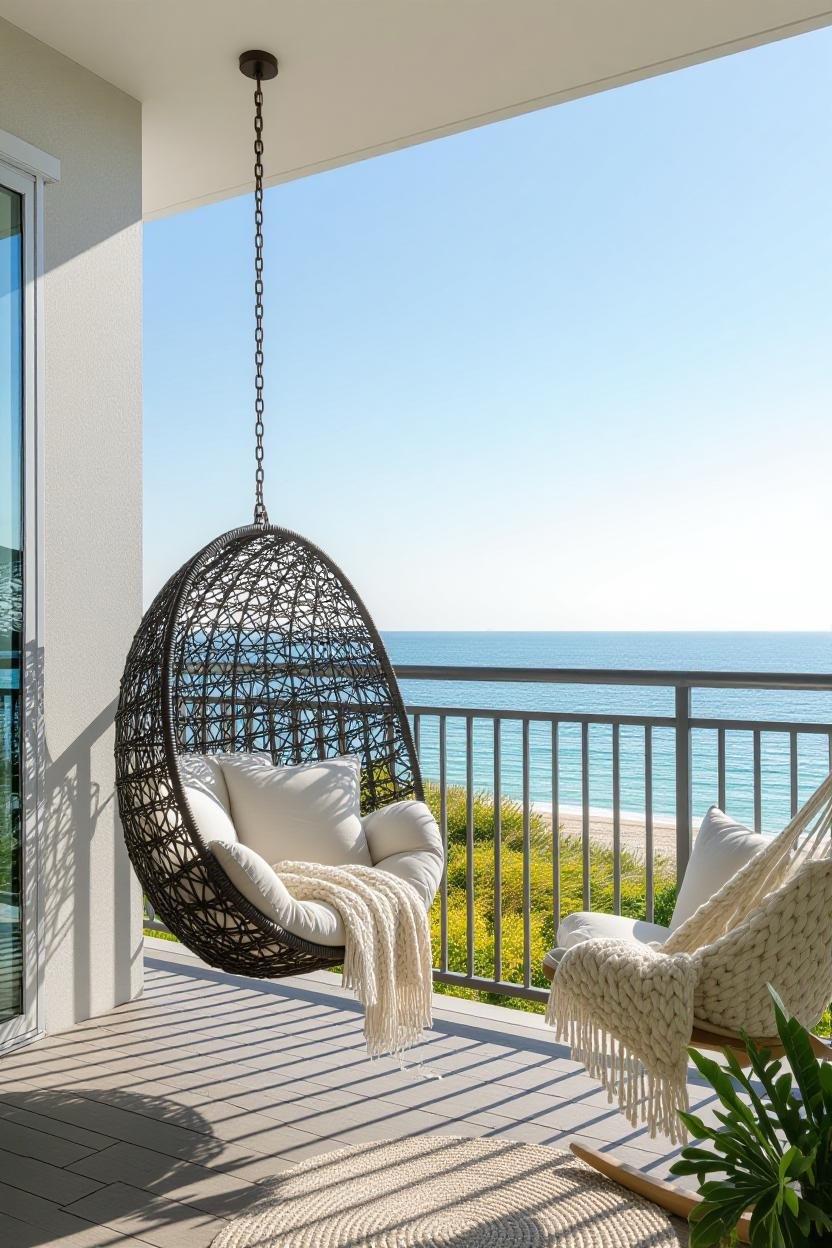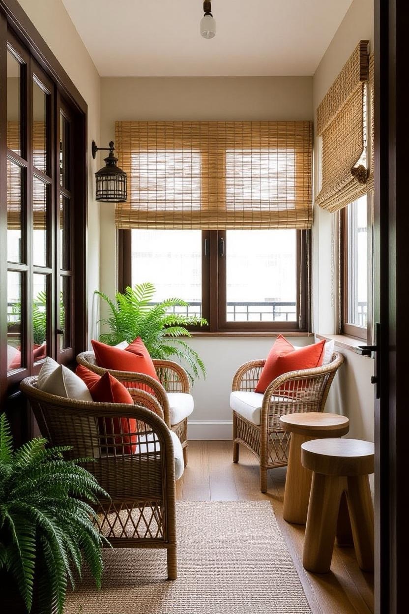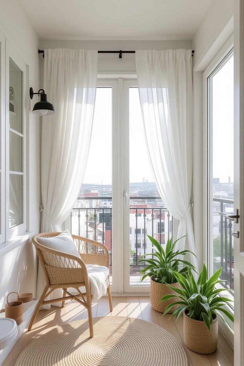 Add natural textures like wicker chairs, wooden stools, and bamboo shades to give your balcony a warm and organic feel.