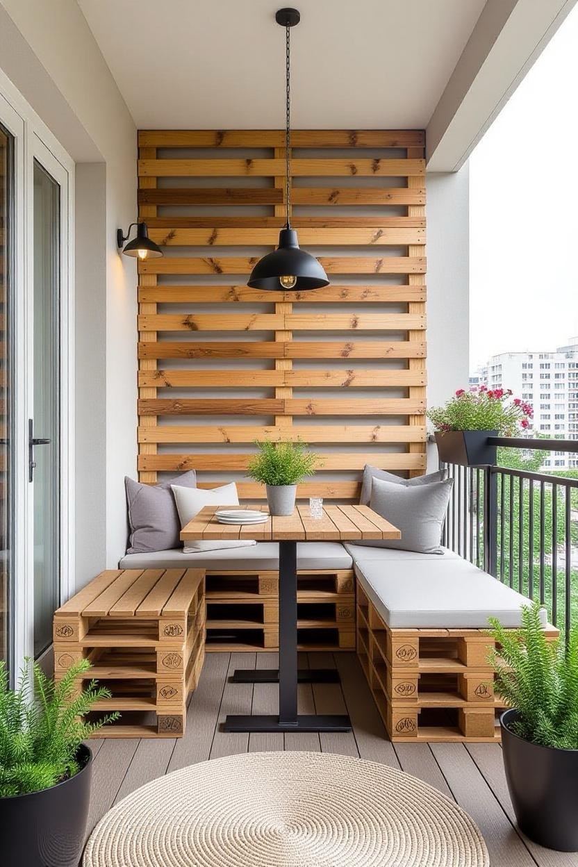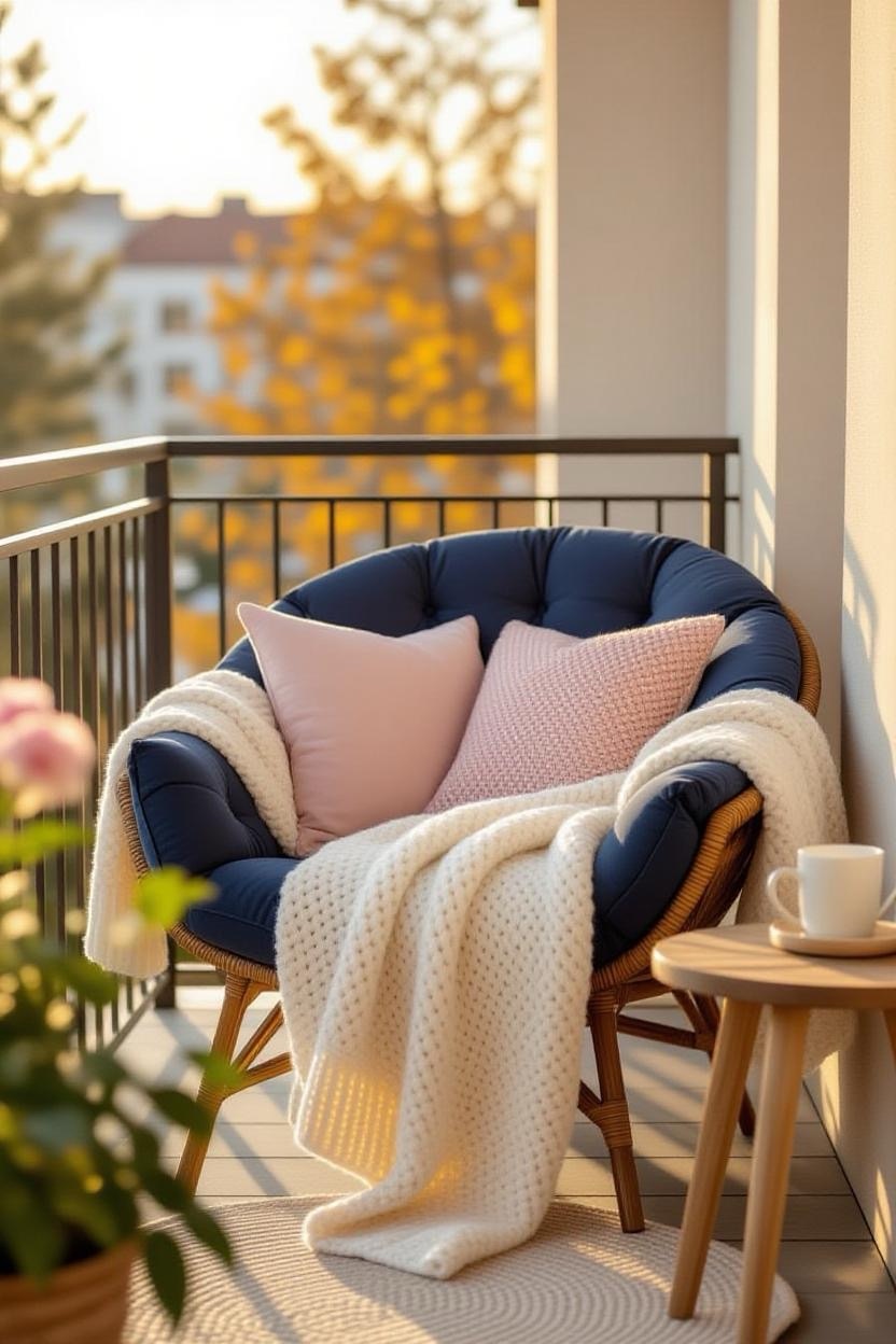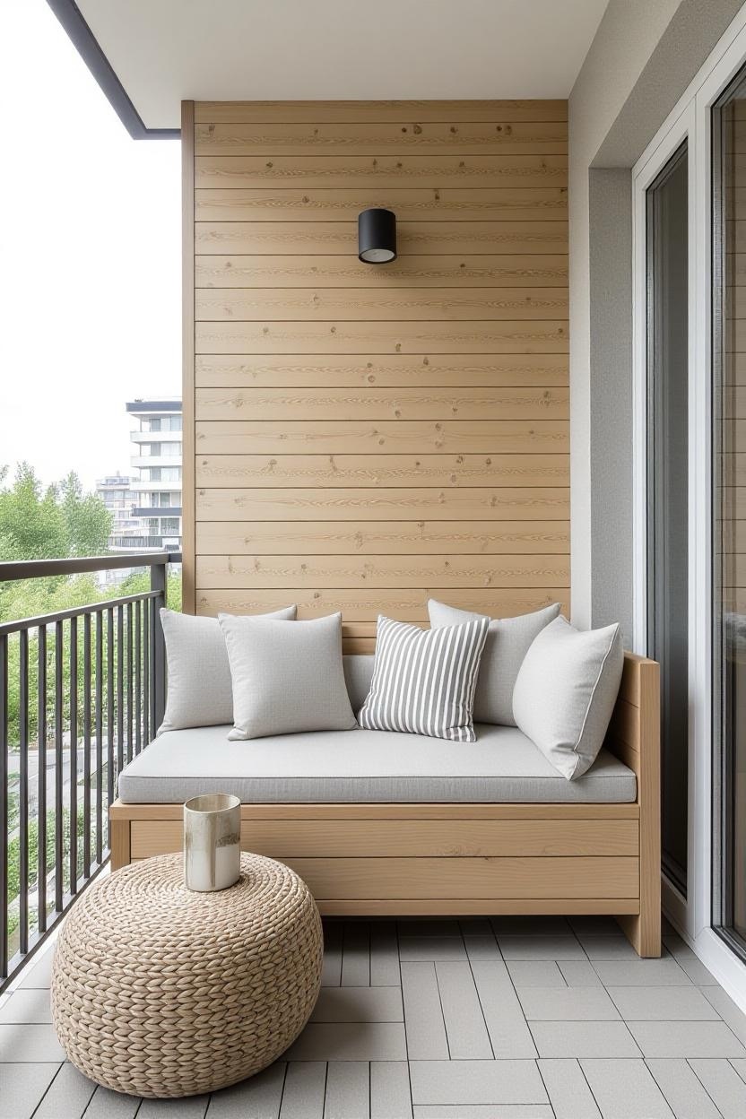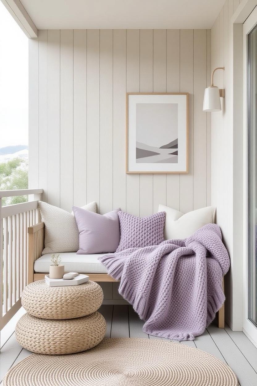 Choose pale woods, cozy throws, and muted tones to achieve a Scandinavian-inspired balcony that feels calm and inviting.