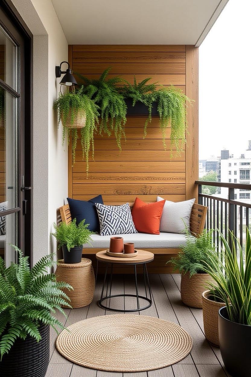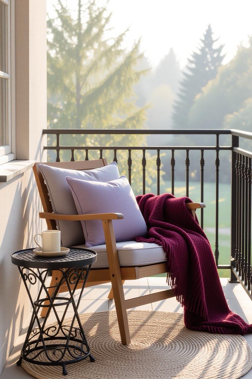 Combine wood, metal, textiles, and plants to add depth and character to your balcony, making it stylish yet comfortable.