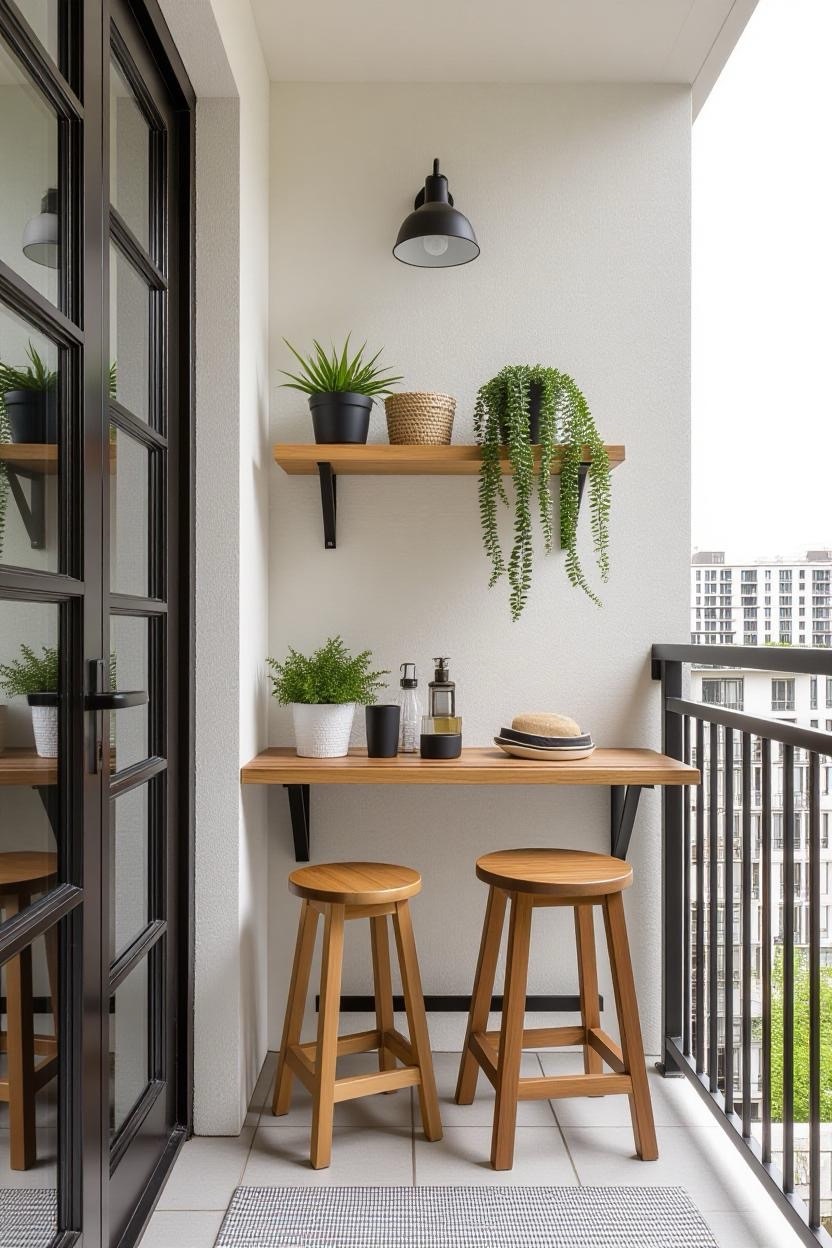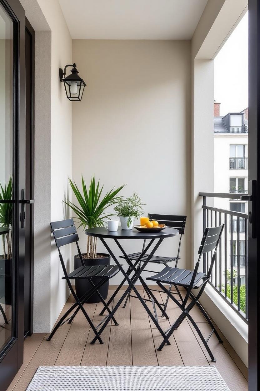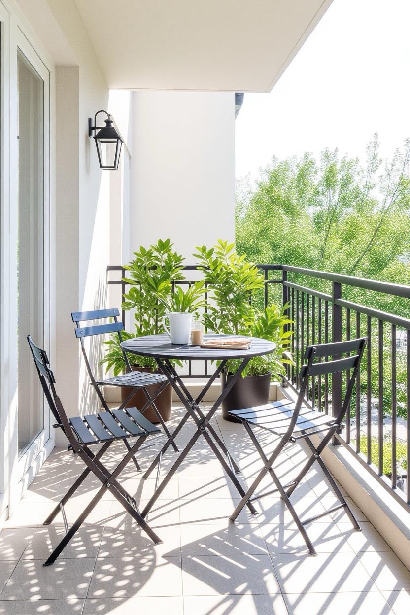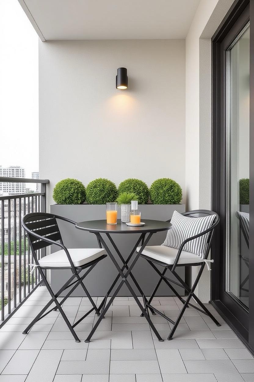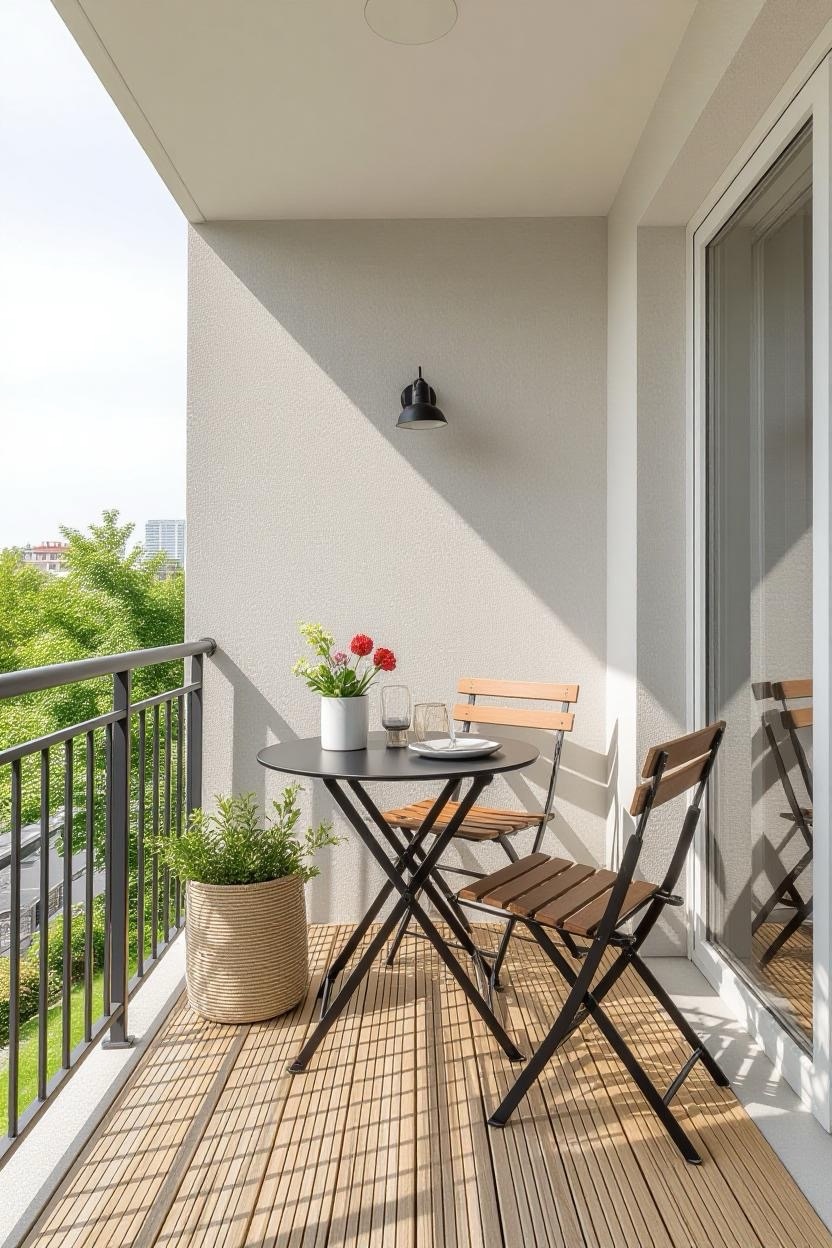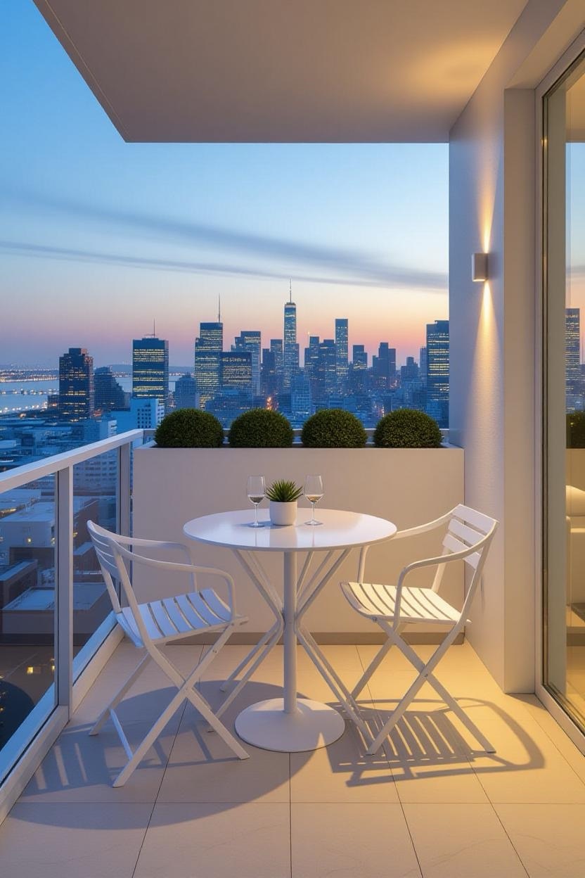 Stick to clean lines, neutral colors, and sleek furniture to keep your balcony clutter-free and airy. A small bistro set in black or white works beautifully in minimalist spaces.