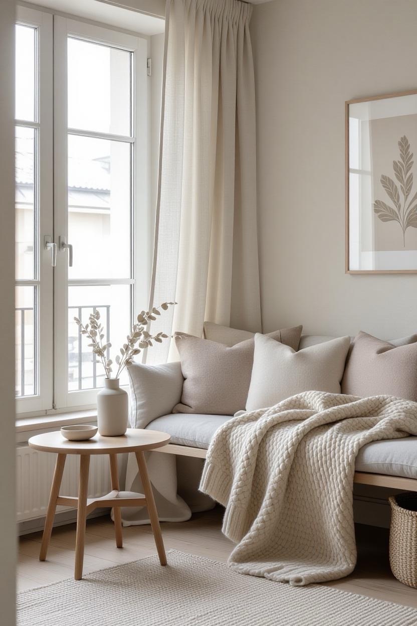 Place a comfy chair or a compact bench with soft cushions and throw blankets. Pair it with a small side table for your coffee or books, and you’ll have the perfect reading retreat.