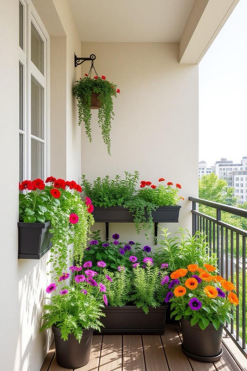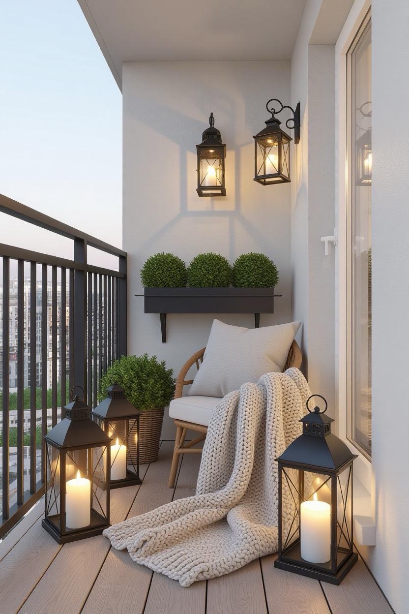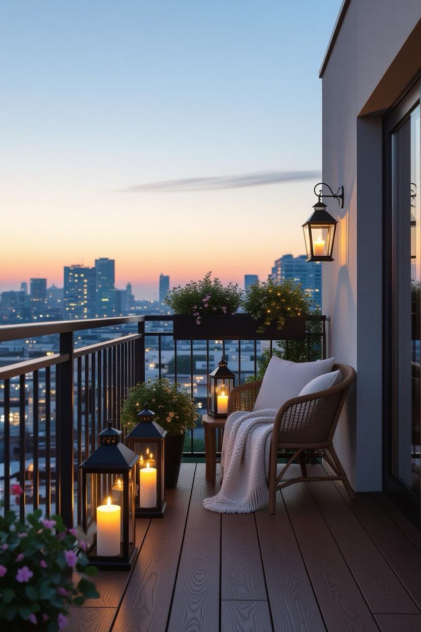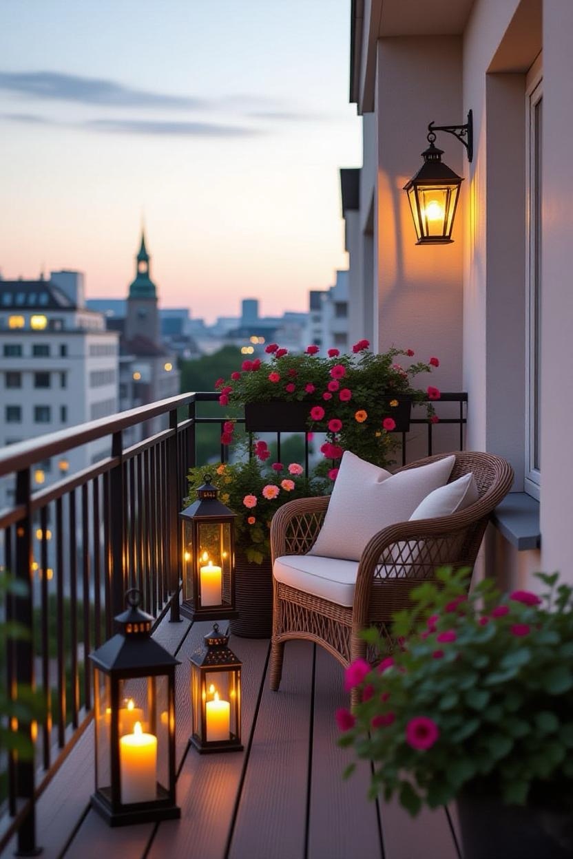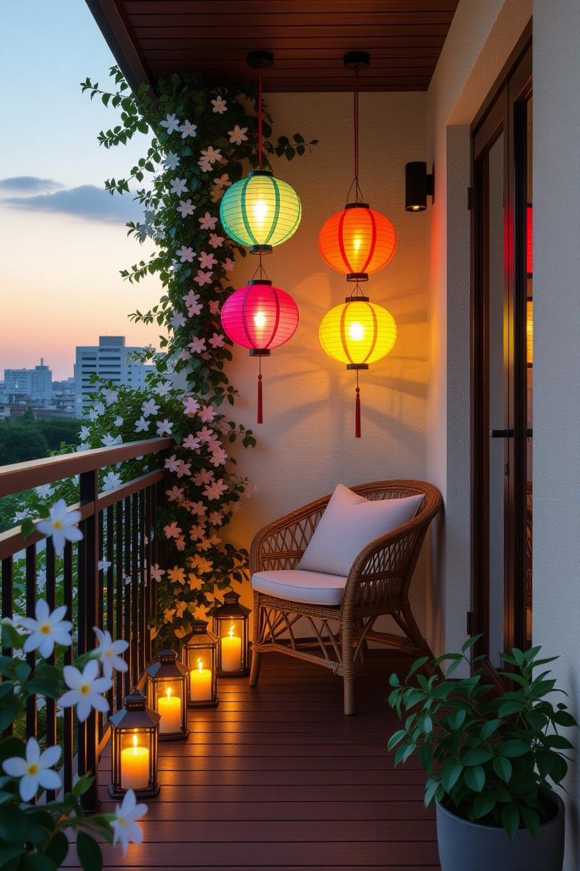 Bright cushions, patterned throws, and eclectic lanterns can transform your balcony into a lively, boho-inspired retreat.