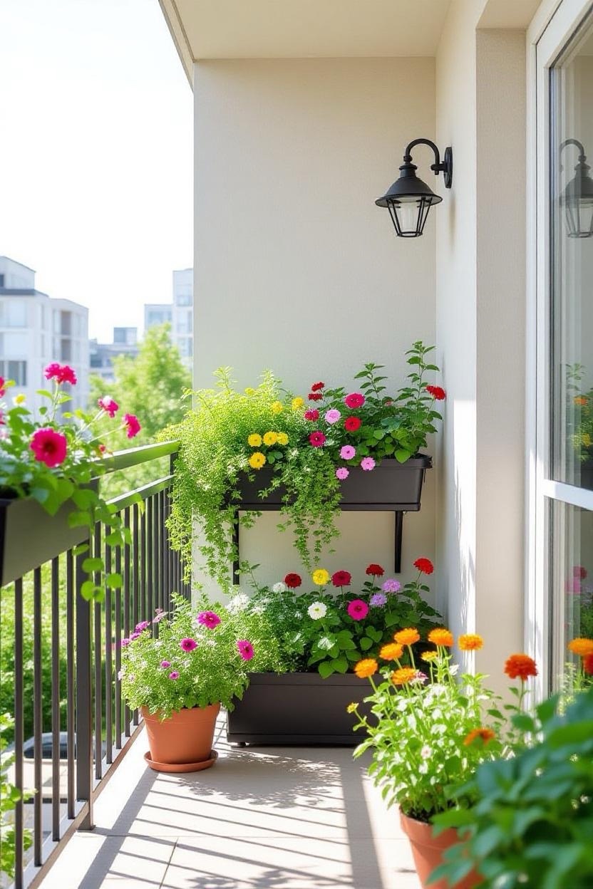 If space is tight, use the walls to hang planters filled with herbs, flowers, or succulents. It adds greenery without taking up floor space.
